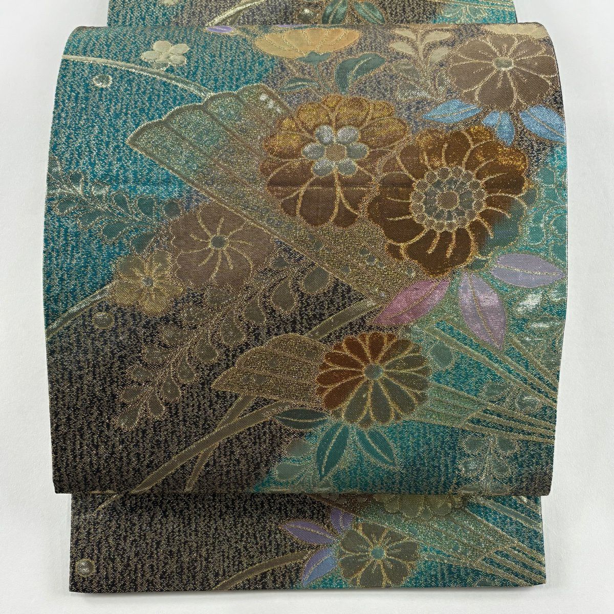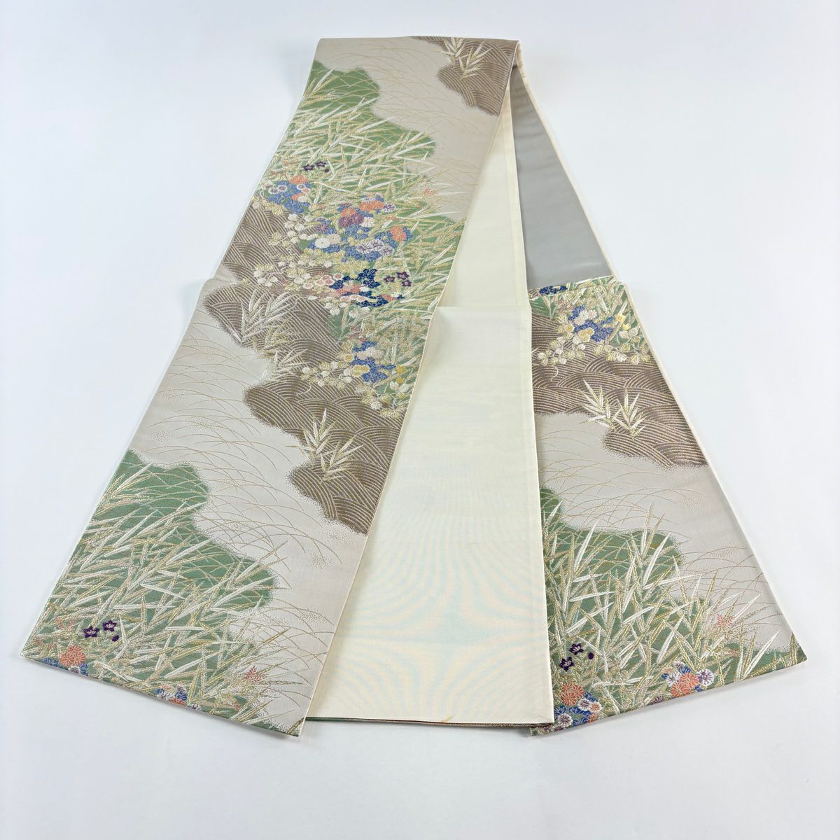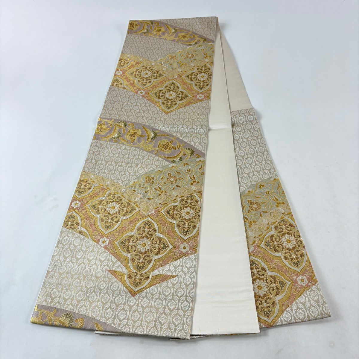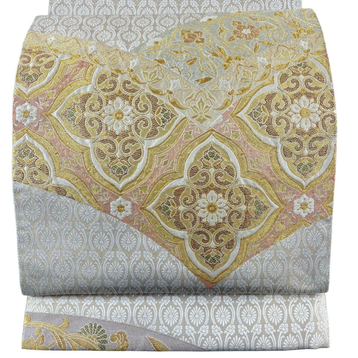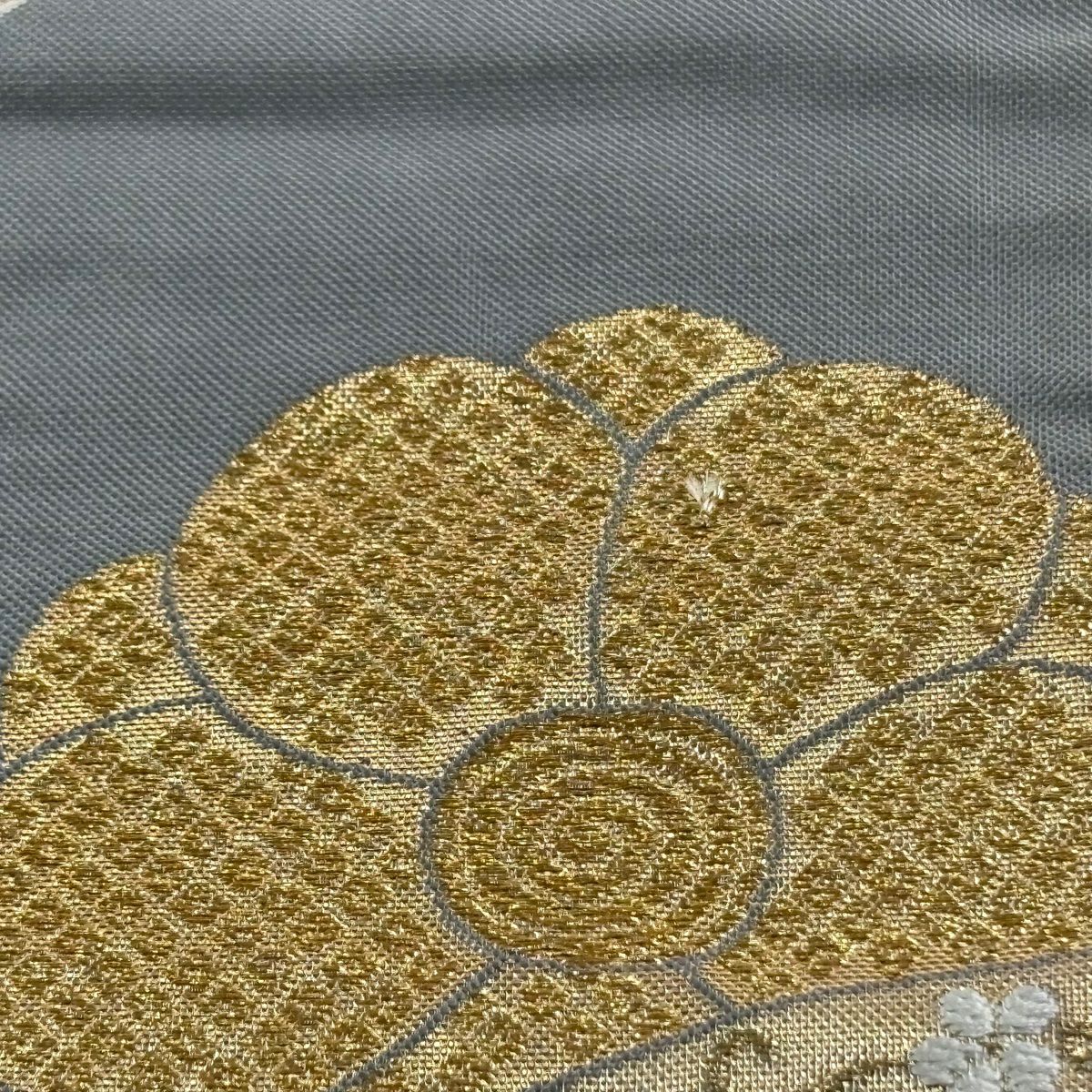 袋帯 秀品 菊 梅 金銀糸 箔 銀色 六通 正絹