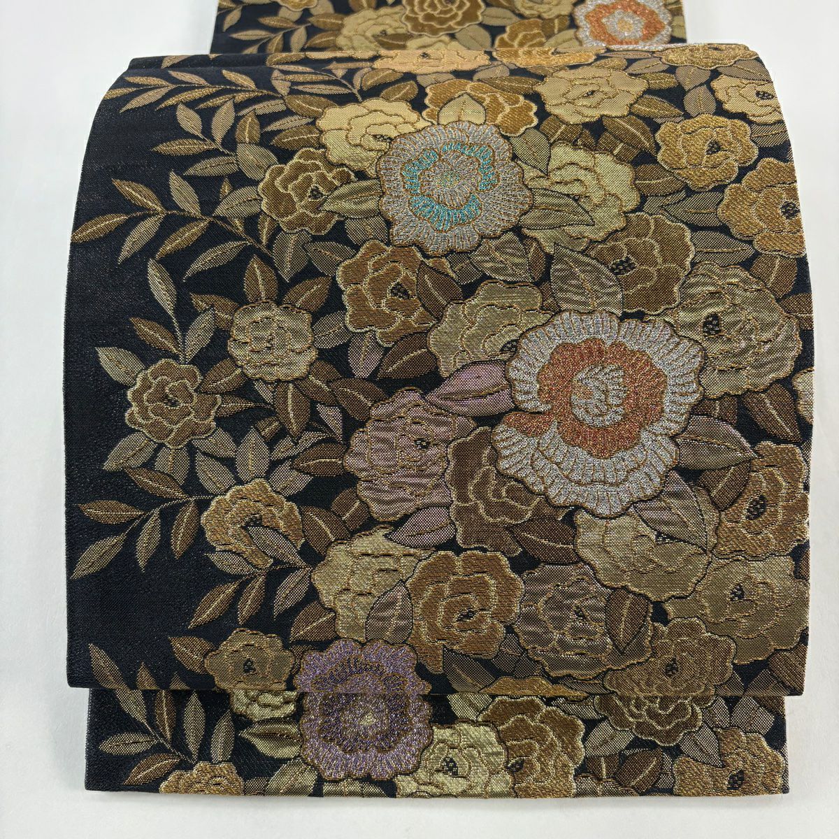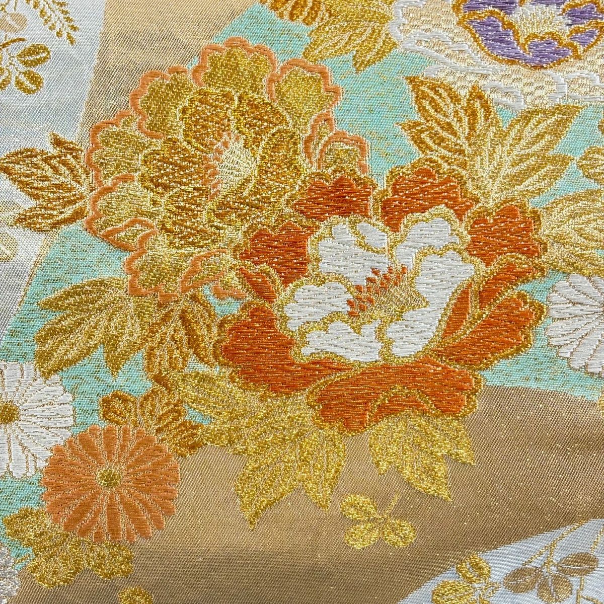 袋帯 秀品 牡丹 萩 金糸 箔 金色 六通 正絹