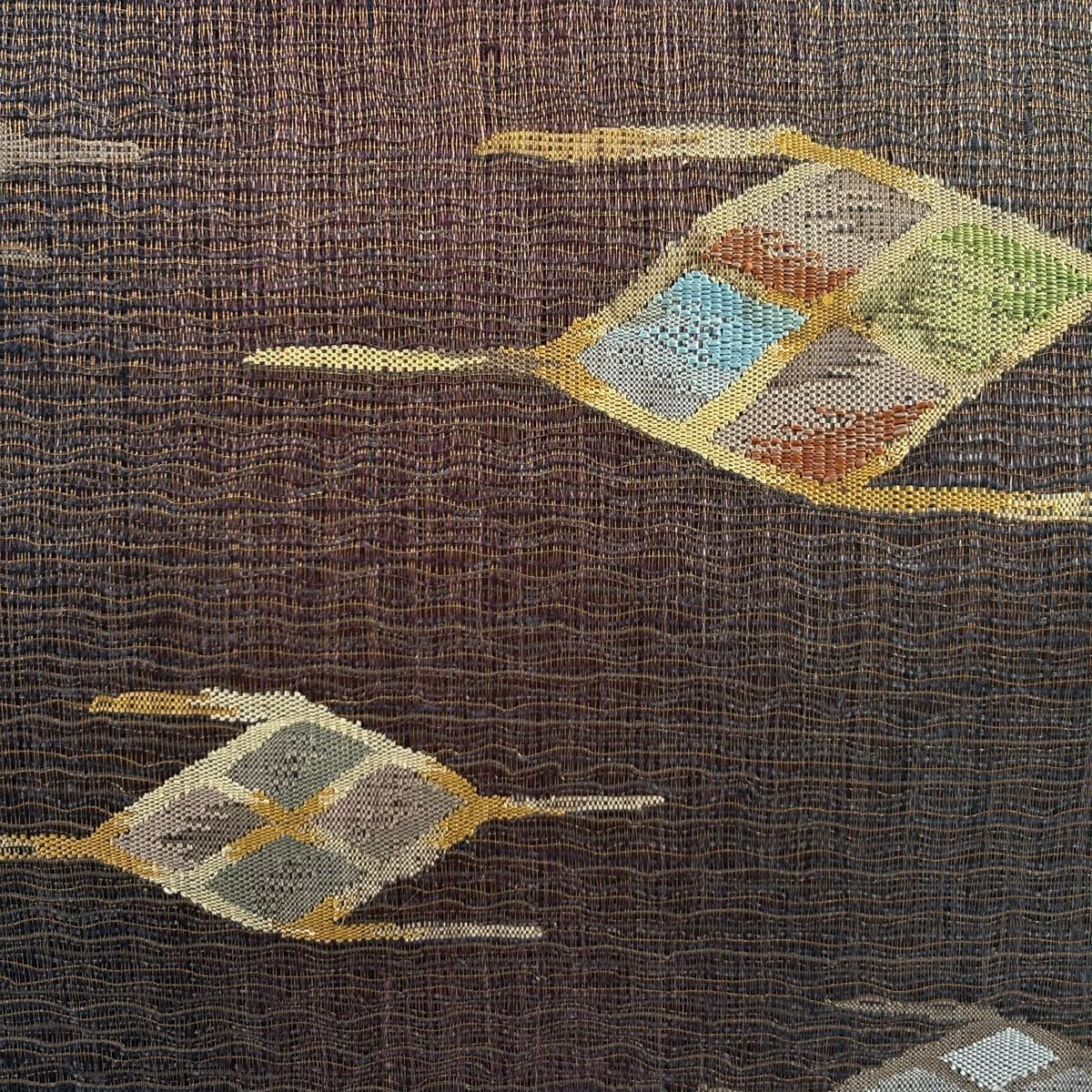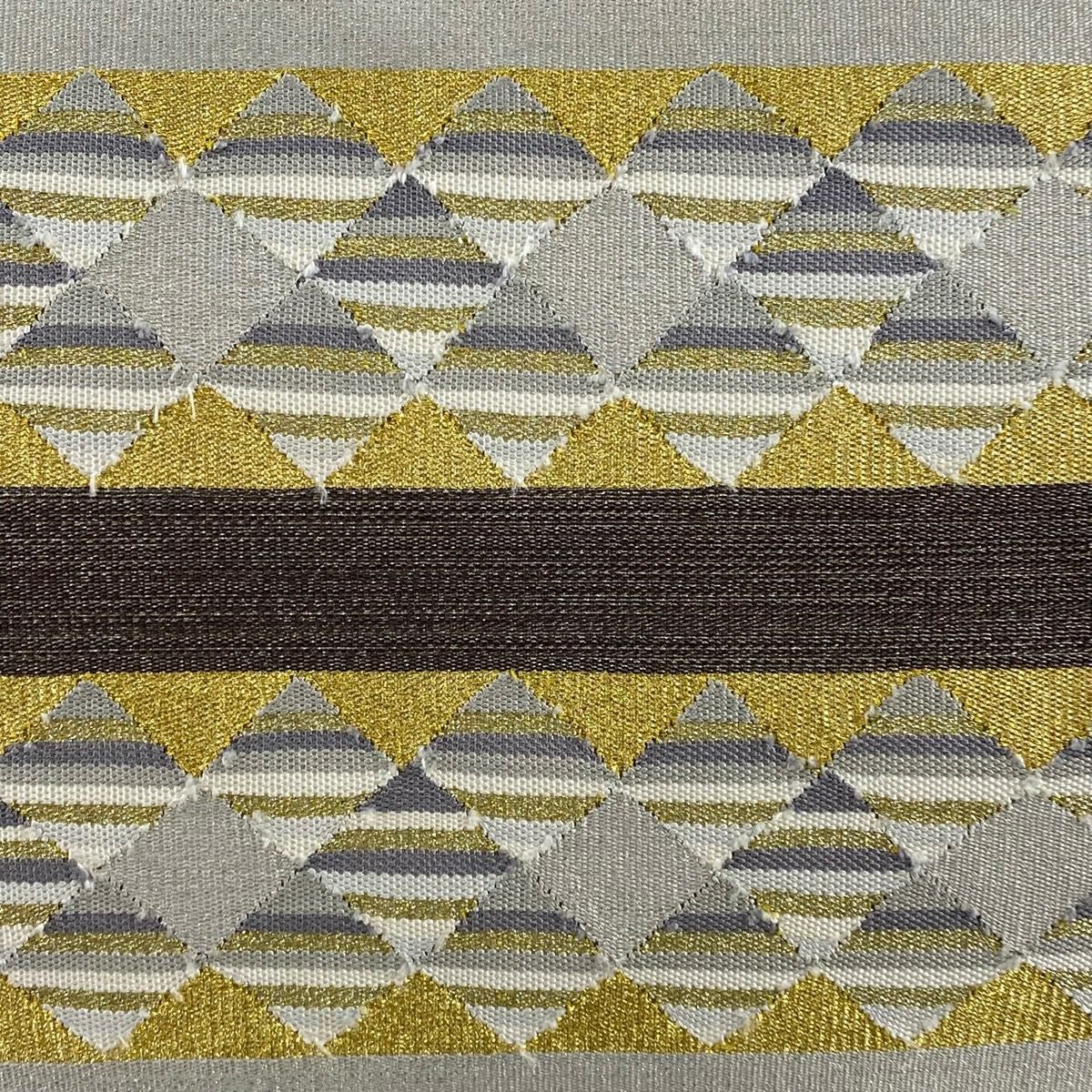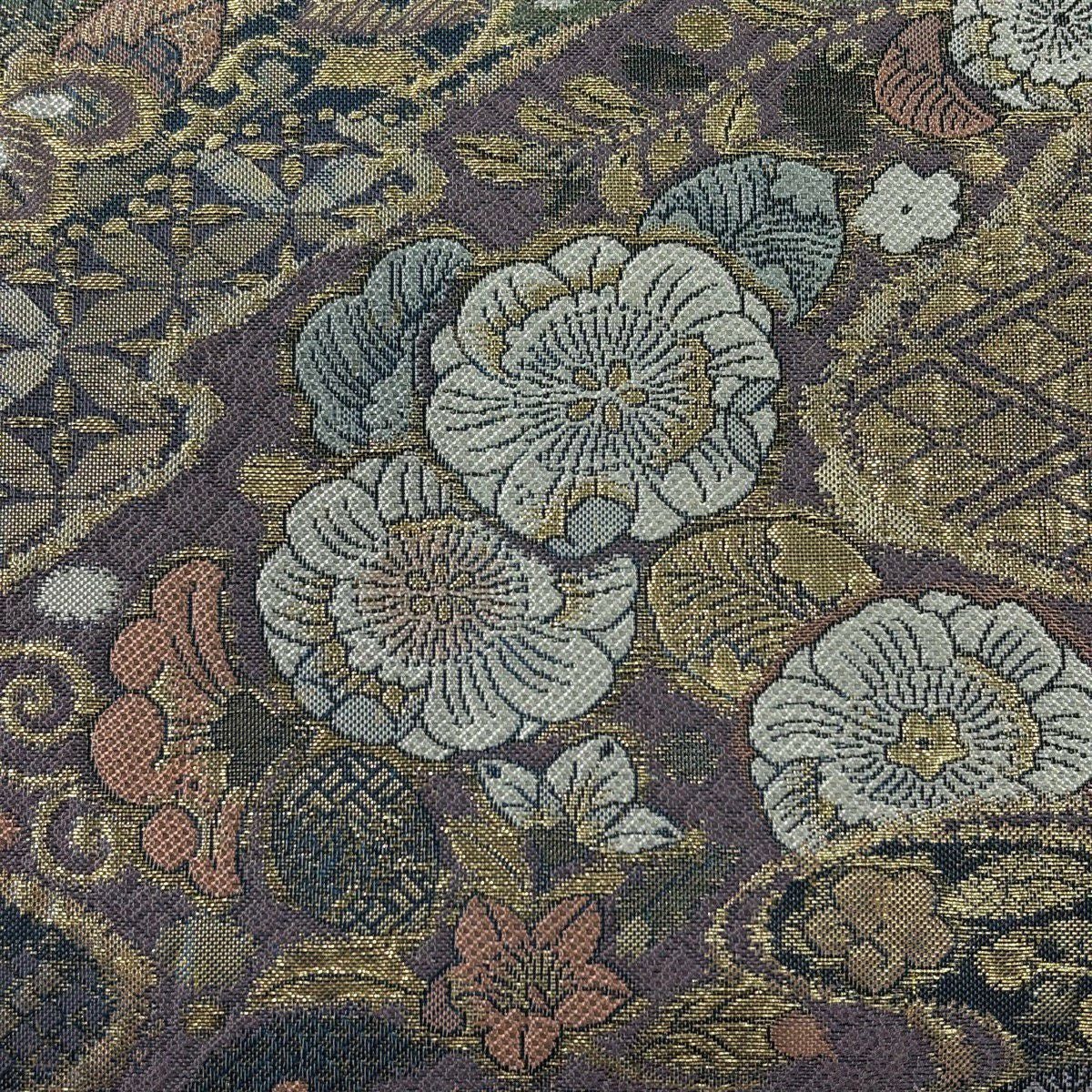 袋帯 秀品 幾何学 金糸 茶紫 お太鼓柄 正絹