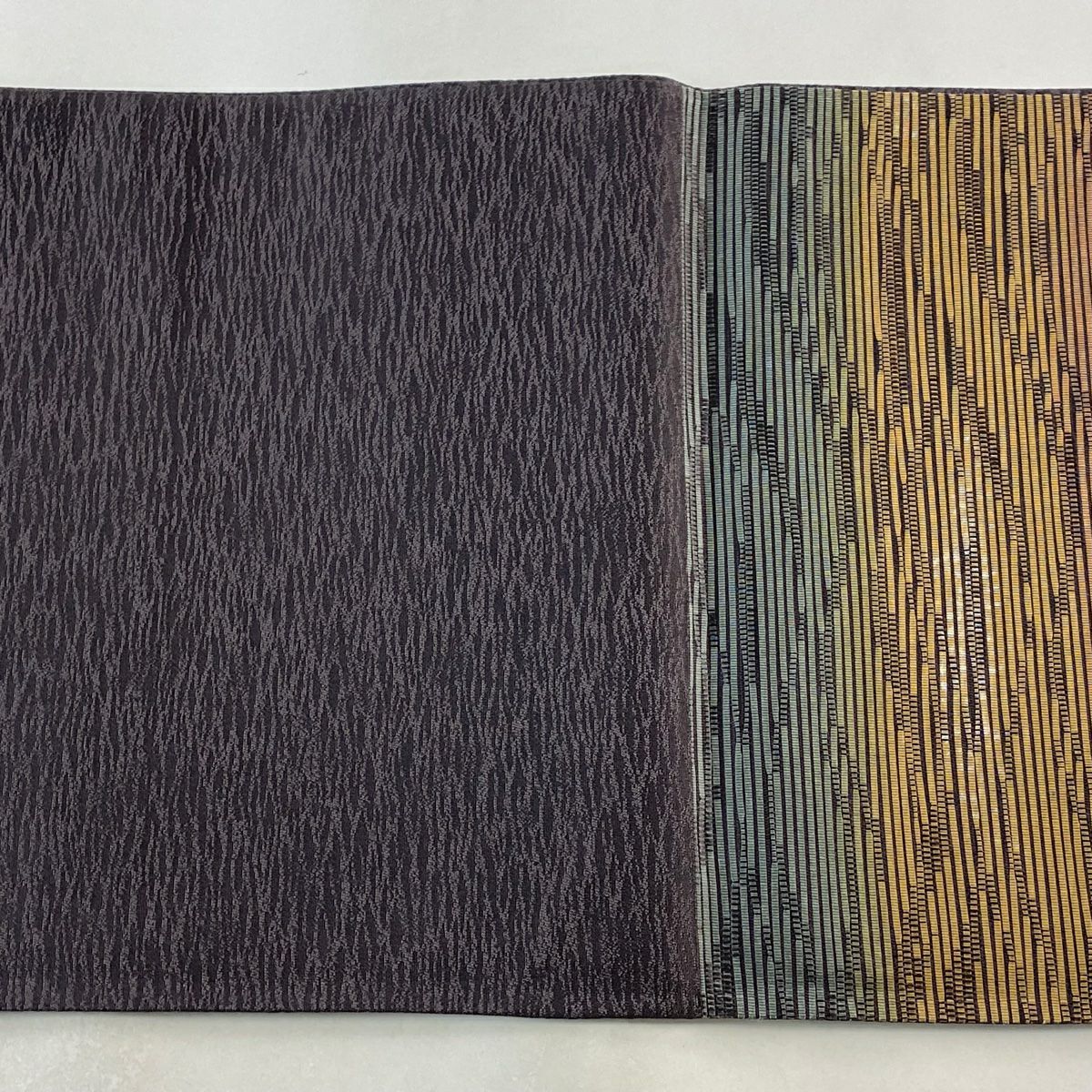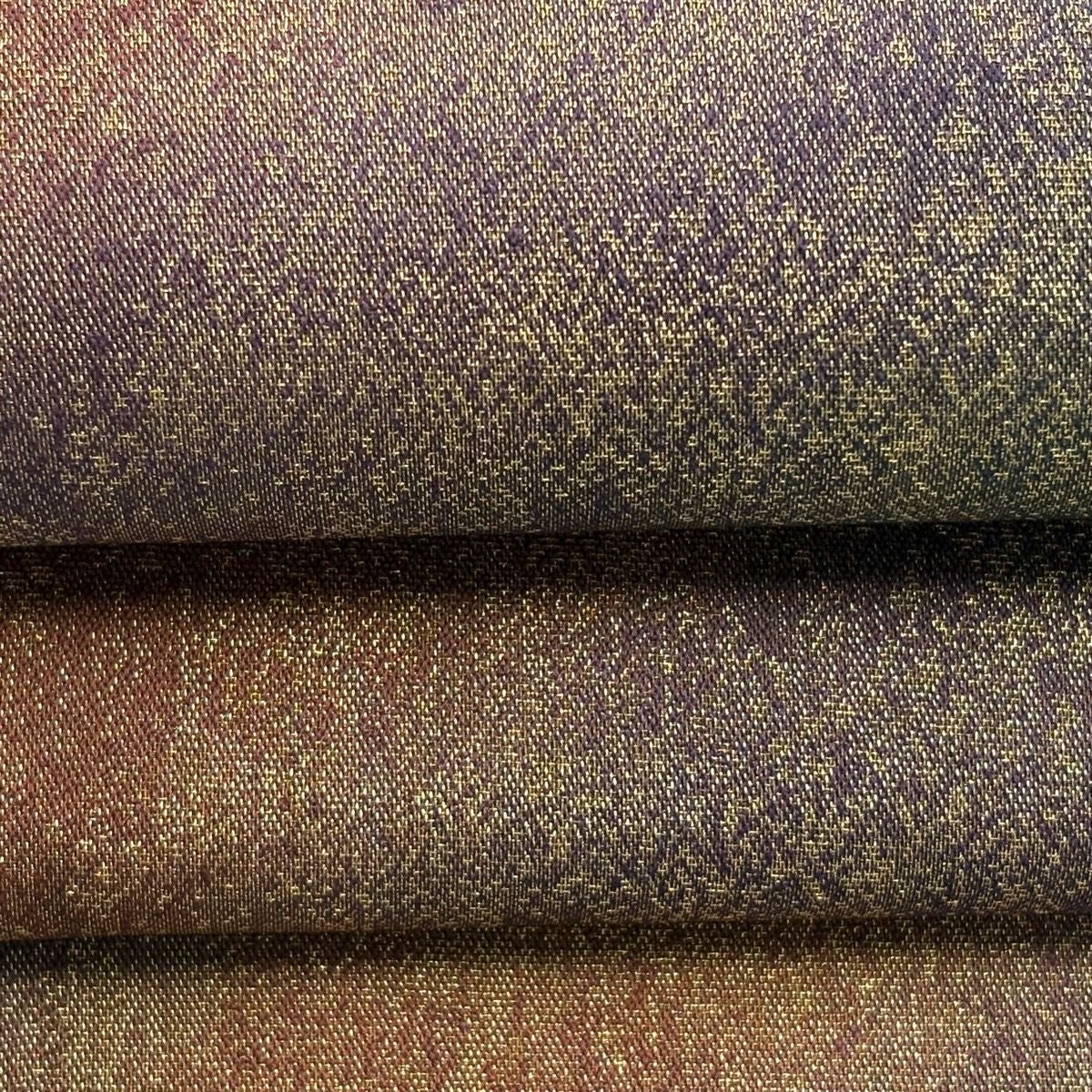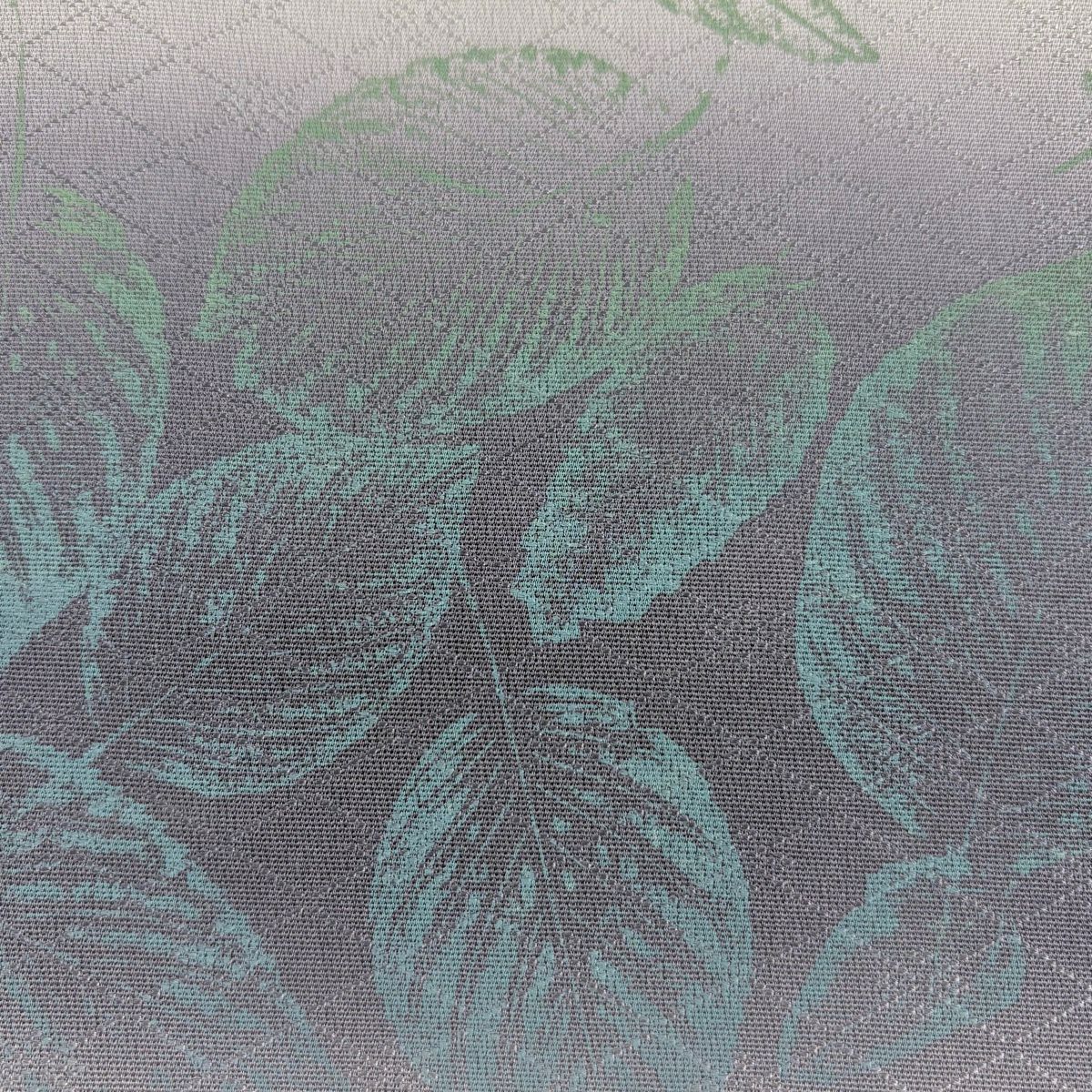 袋帯 秀品 葉柄 地紋 ぼかし 灰紫 全通 正絹