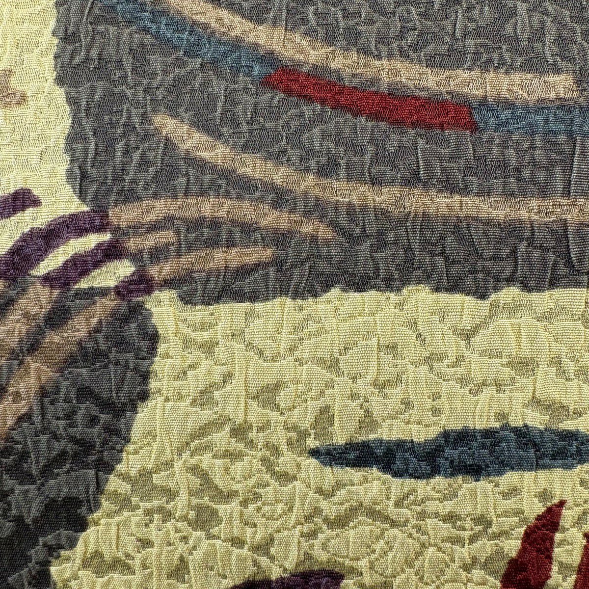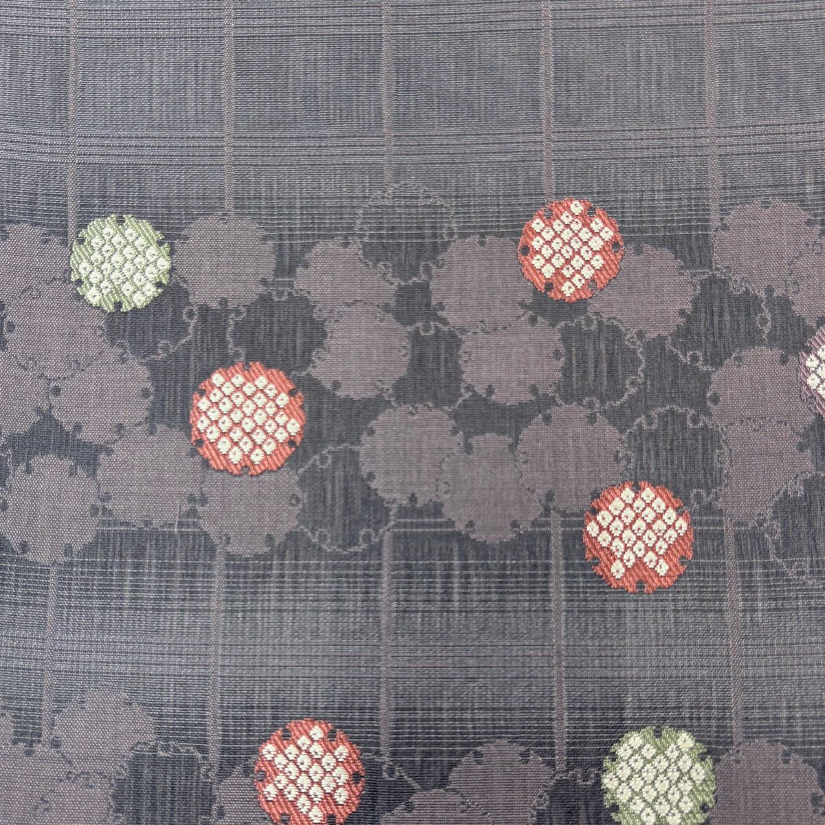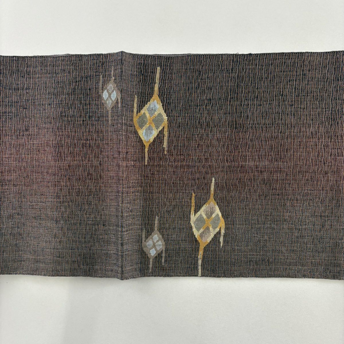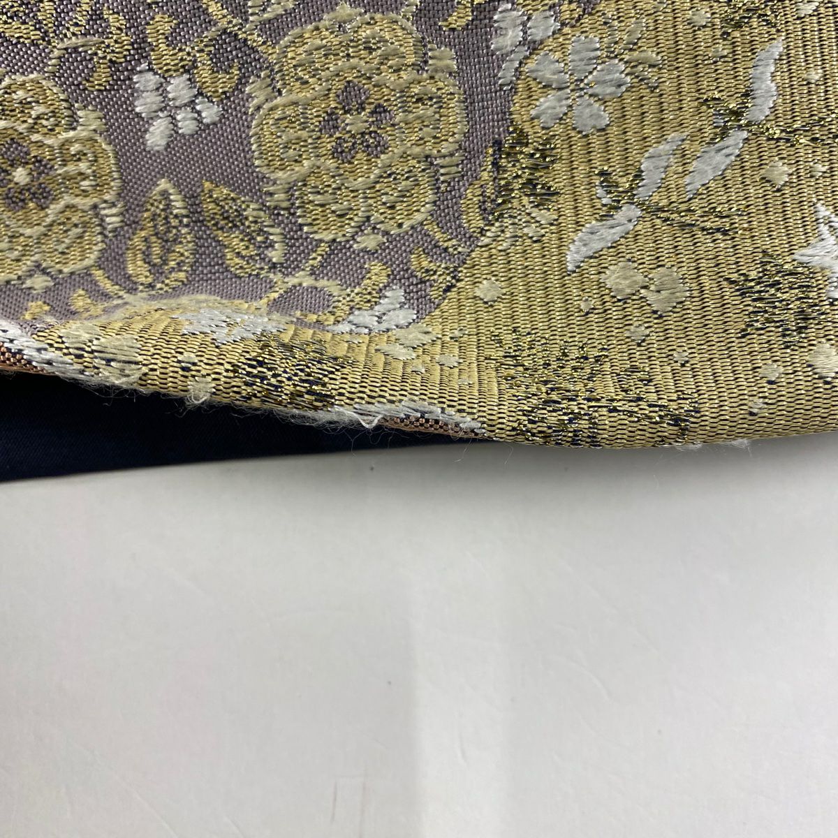 袋帯 秀品 葉柄 地紋 ぼかし 灰紫 全通 正絹