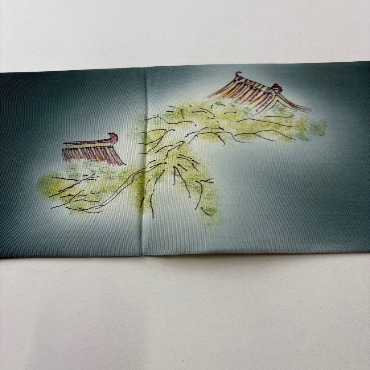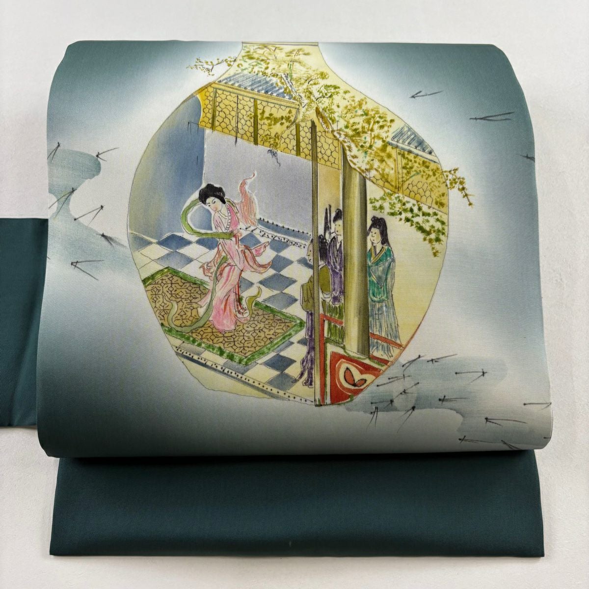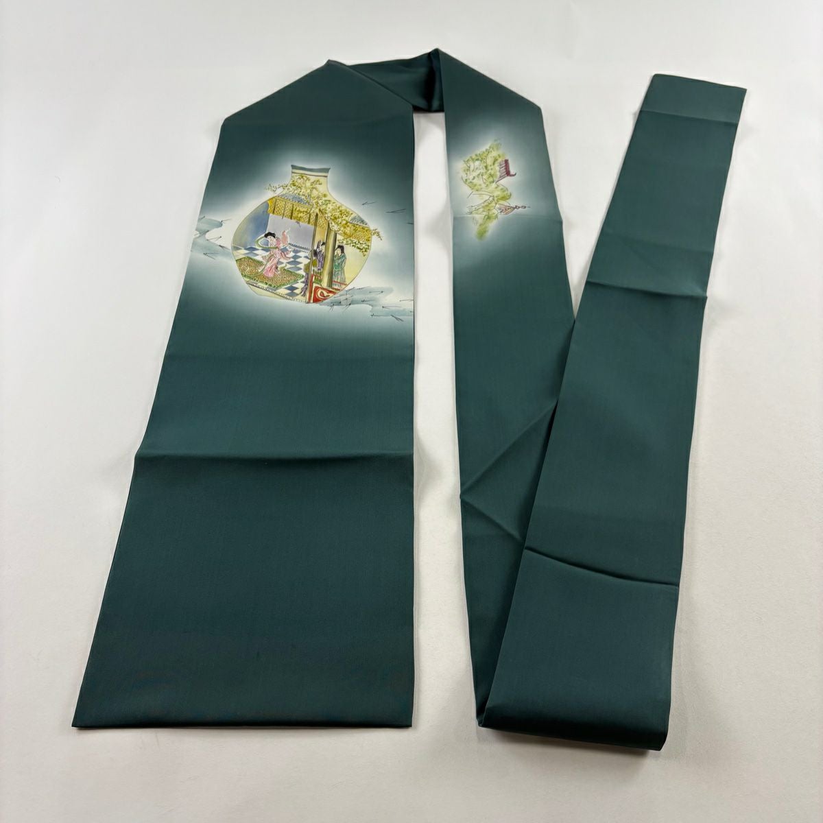 名古屋帯 秀品 器物 人物 ぼかし 深緑 正絹