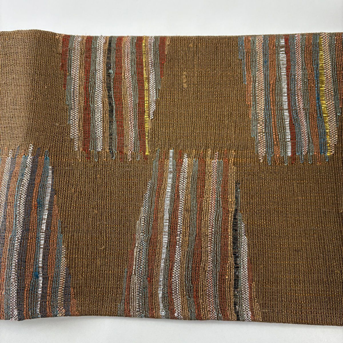 袋帯 秀品 夏帯 霞 箔 茶色 お太鼓柄 正絹