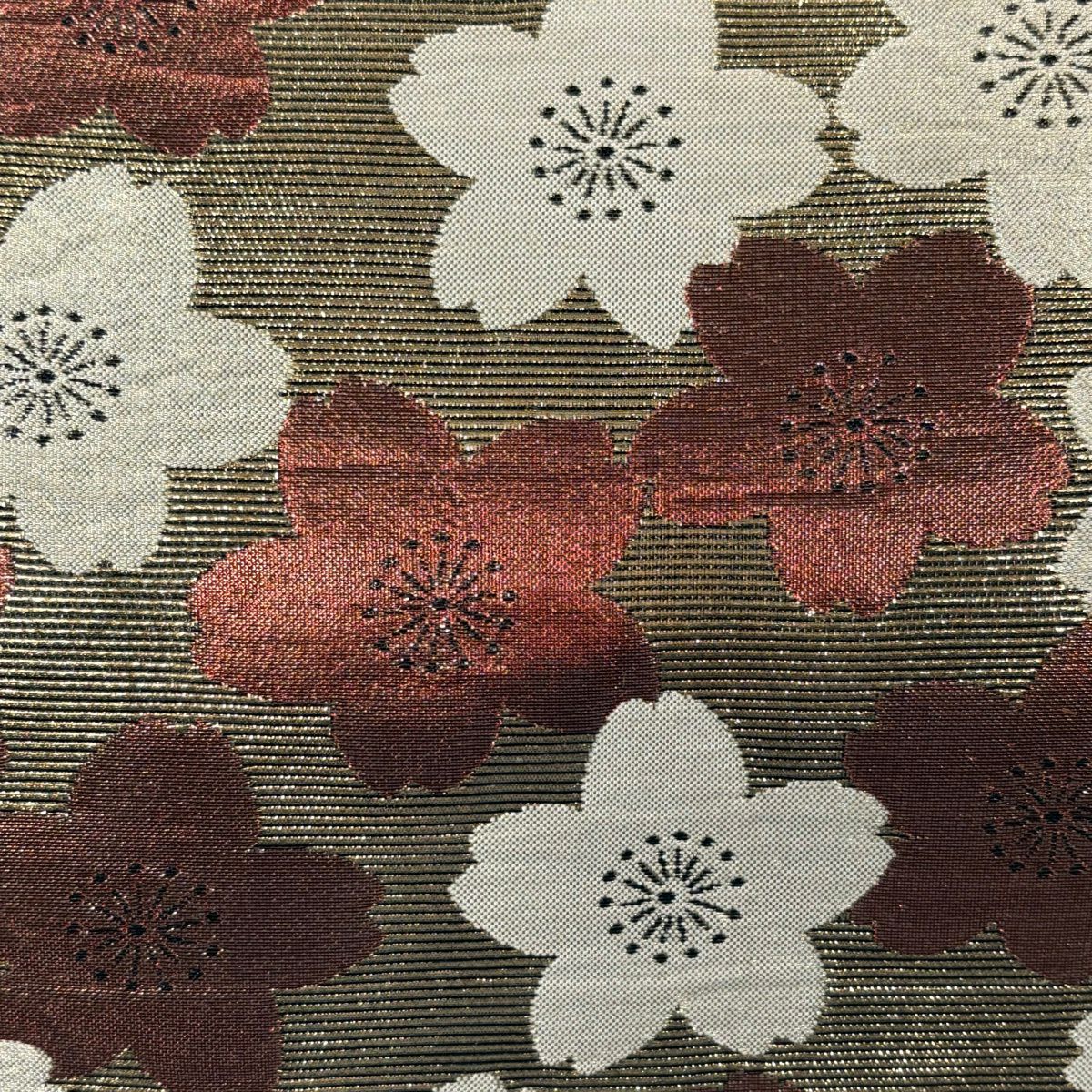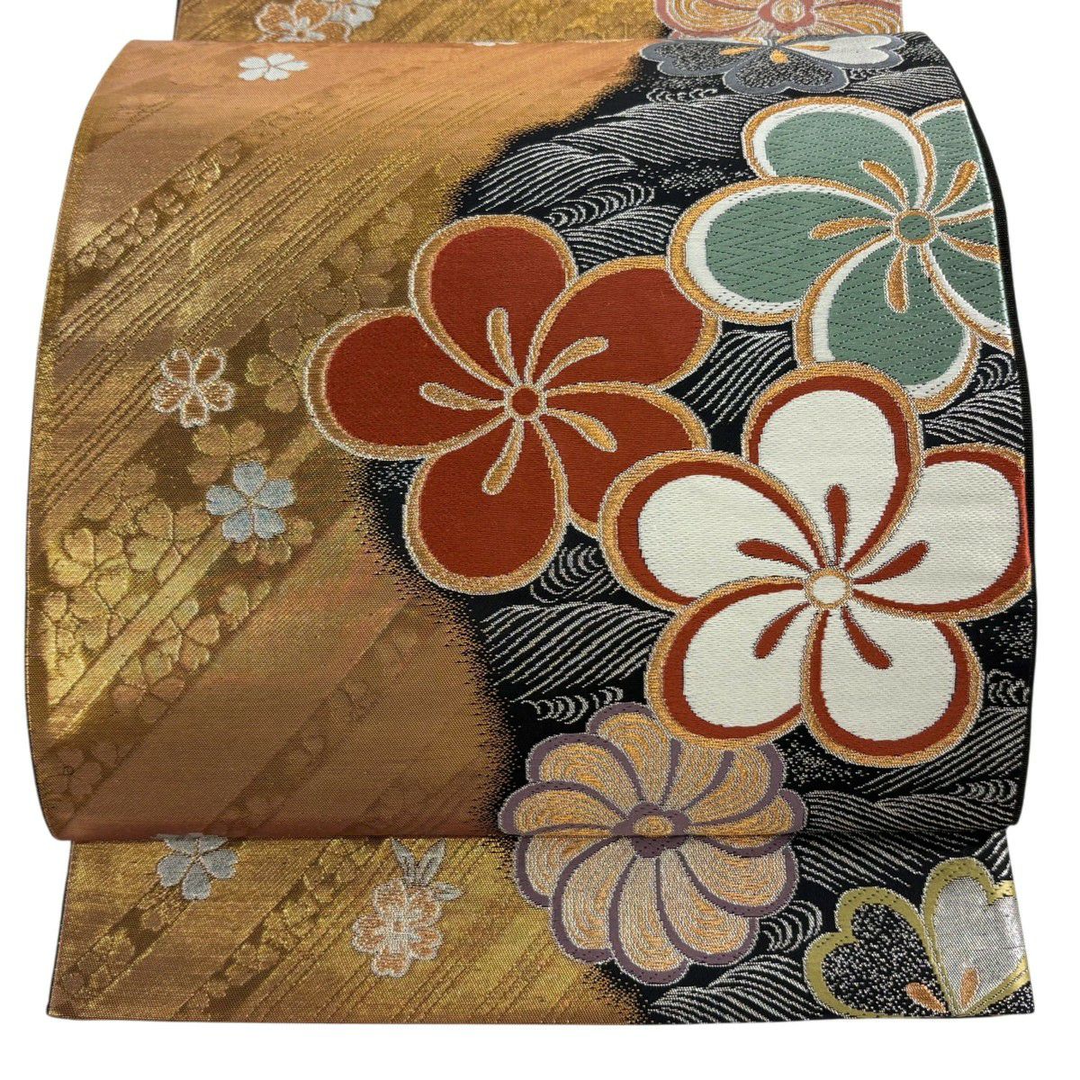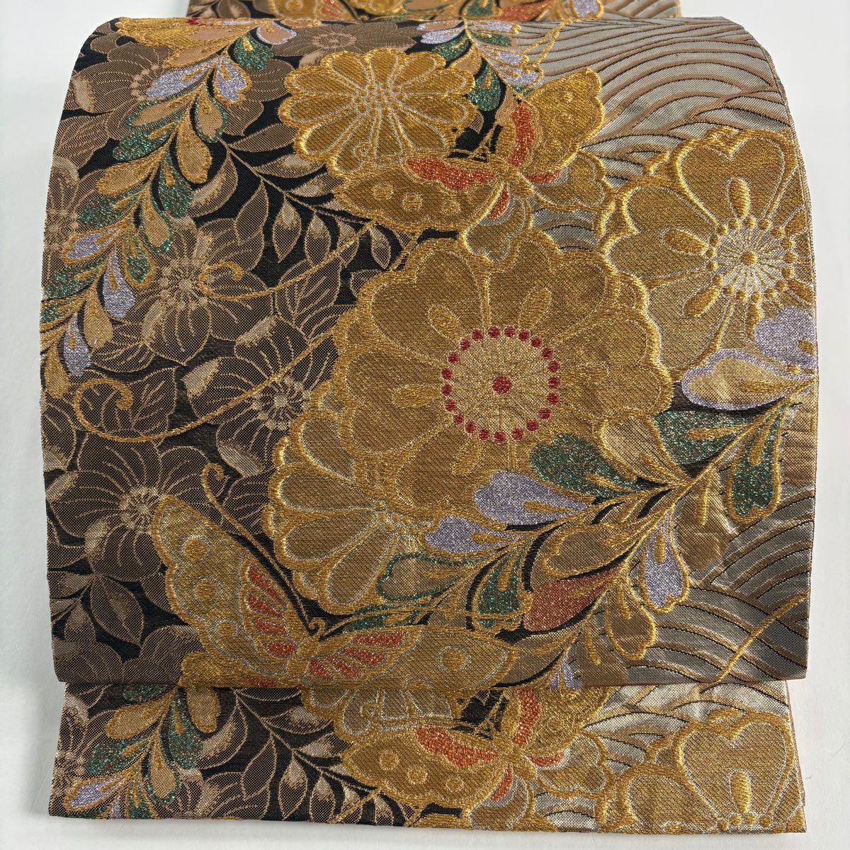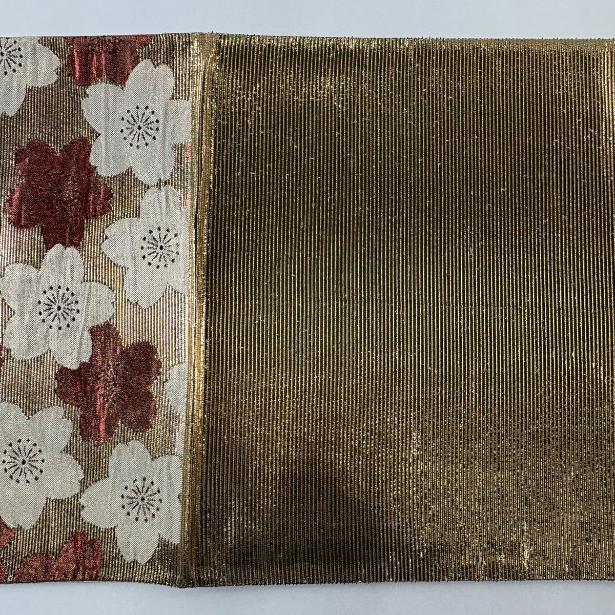 袋帯 秀品 桜 波 箔 唐織 金色 六通 正絹