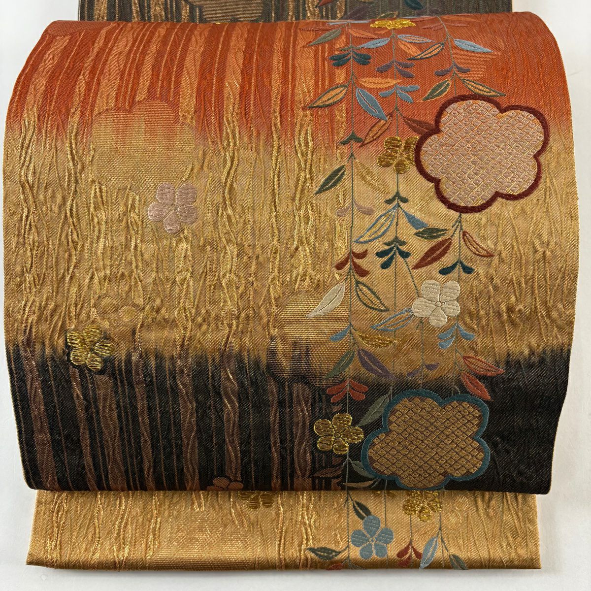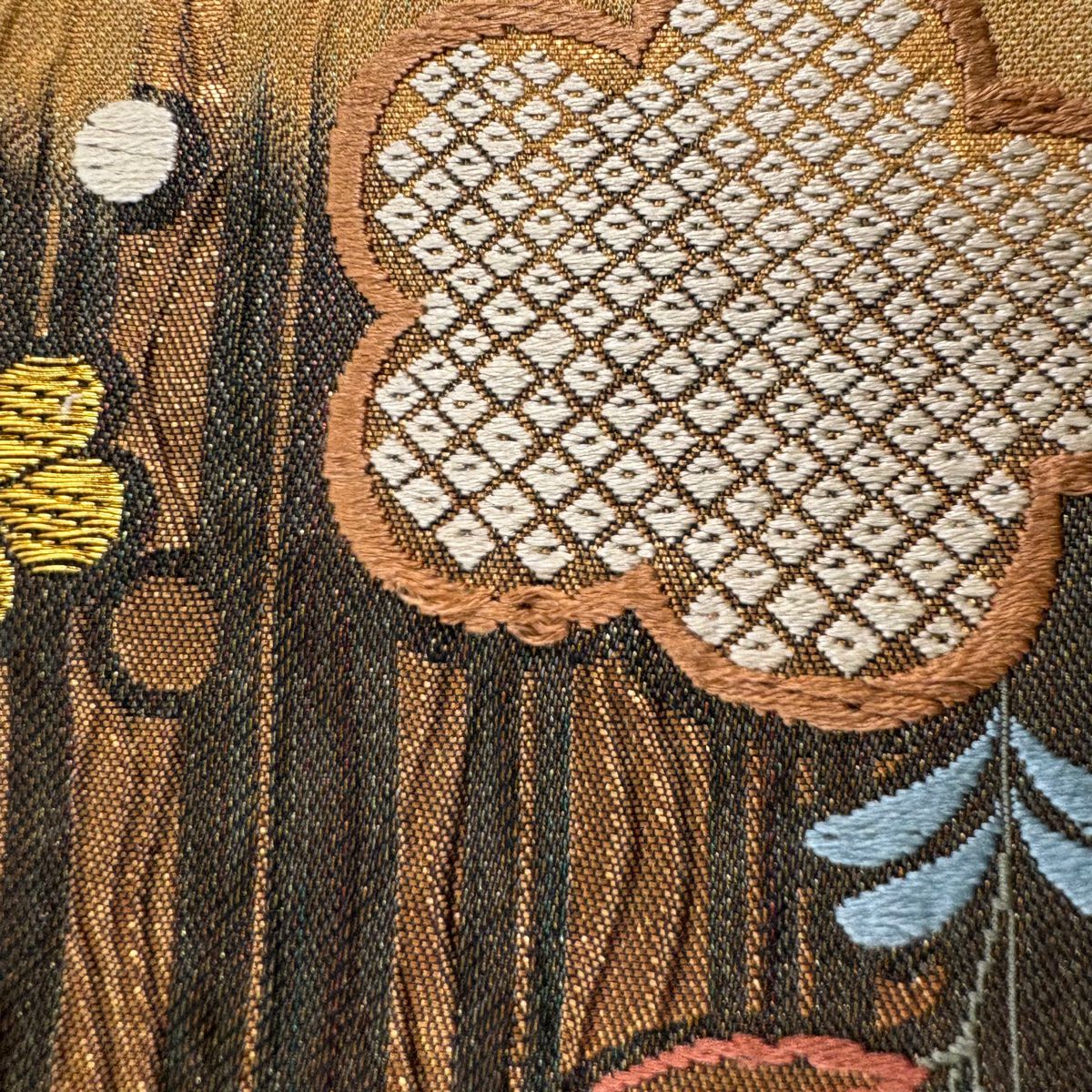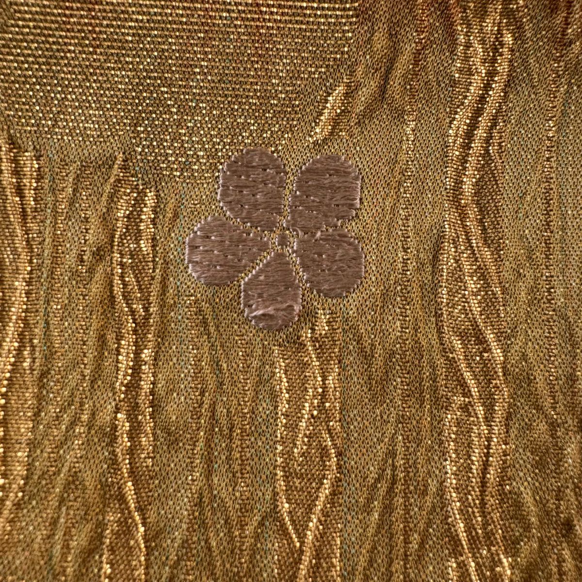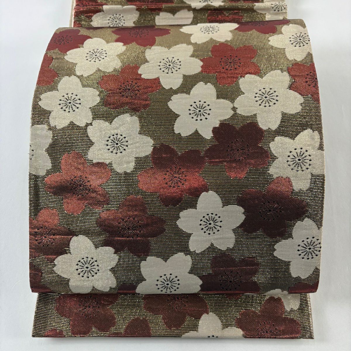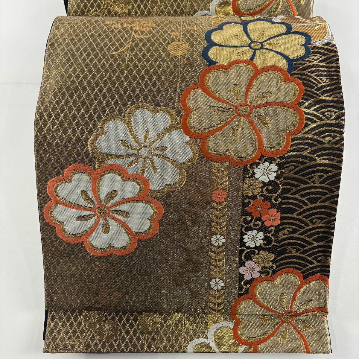 袋帯 秀品 桜 波 箔 唐織 金色 六通 正絹