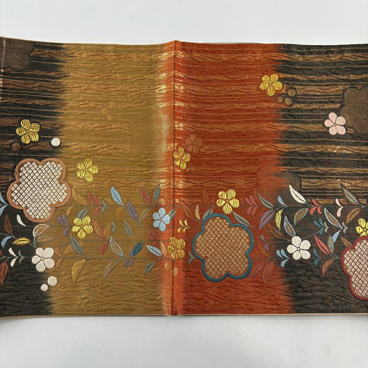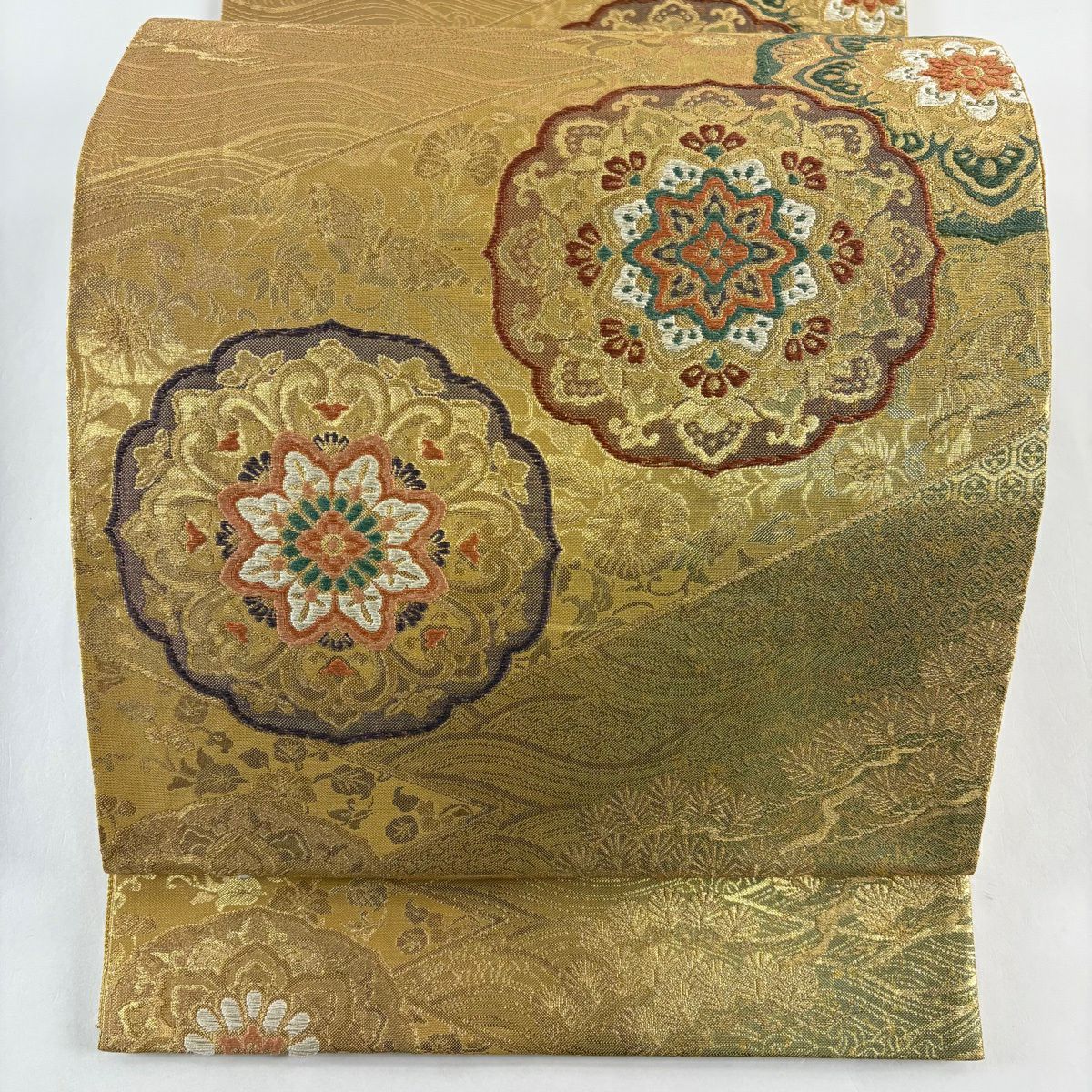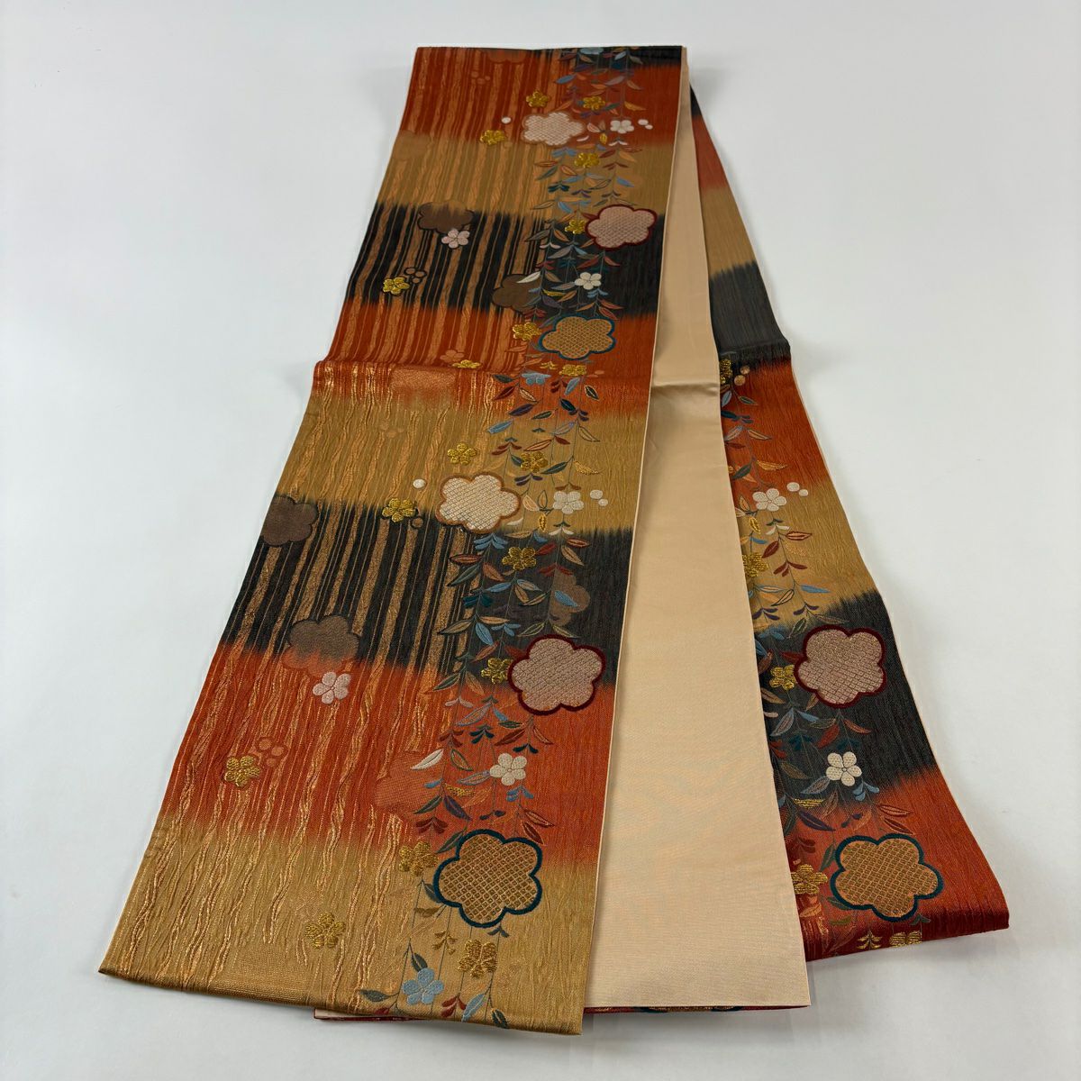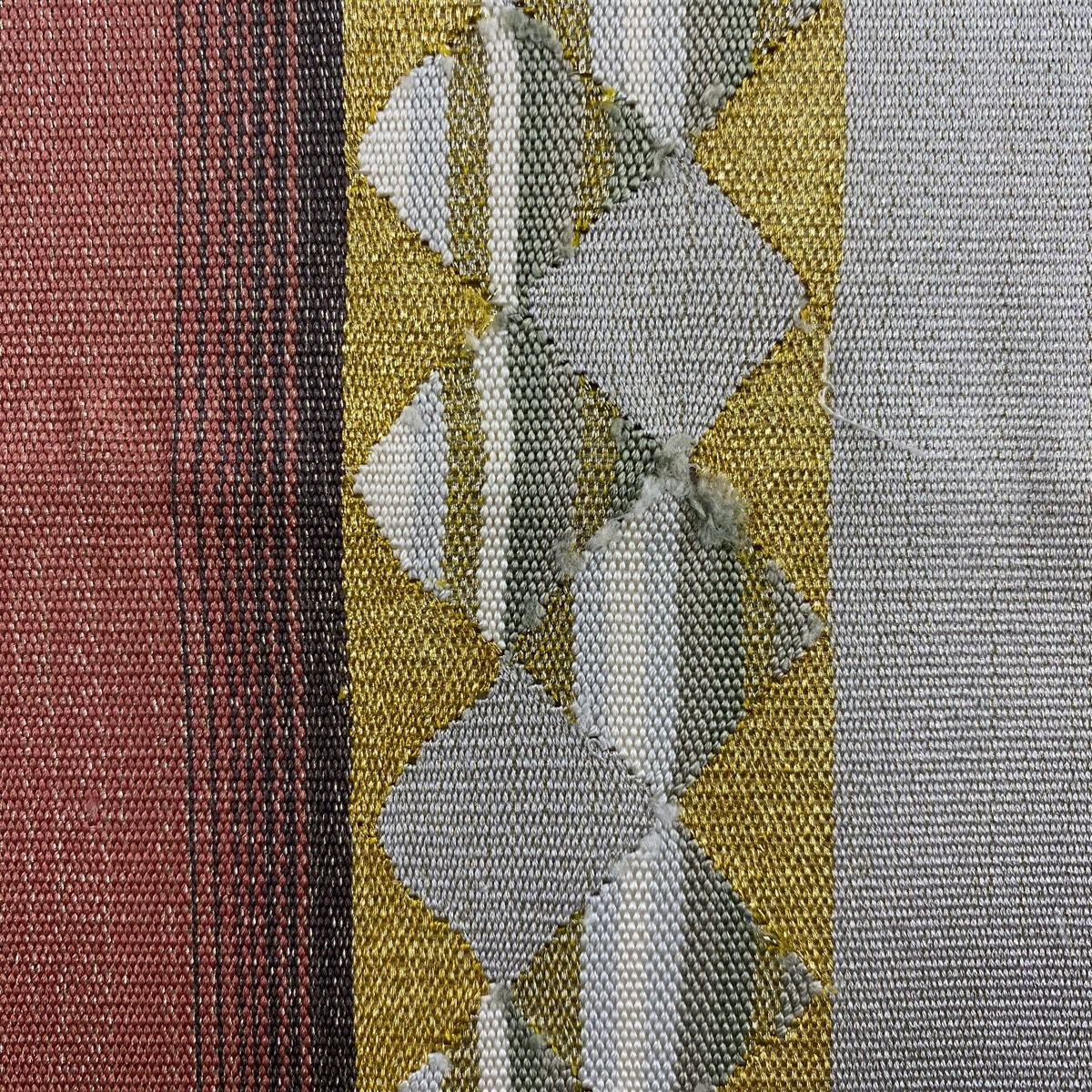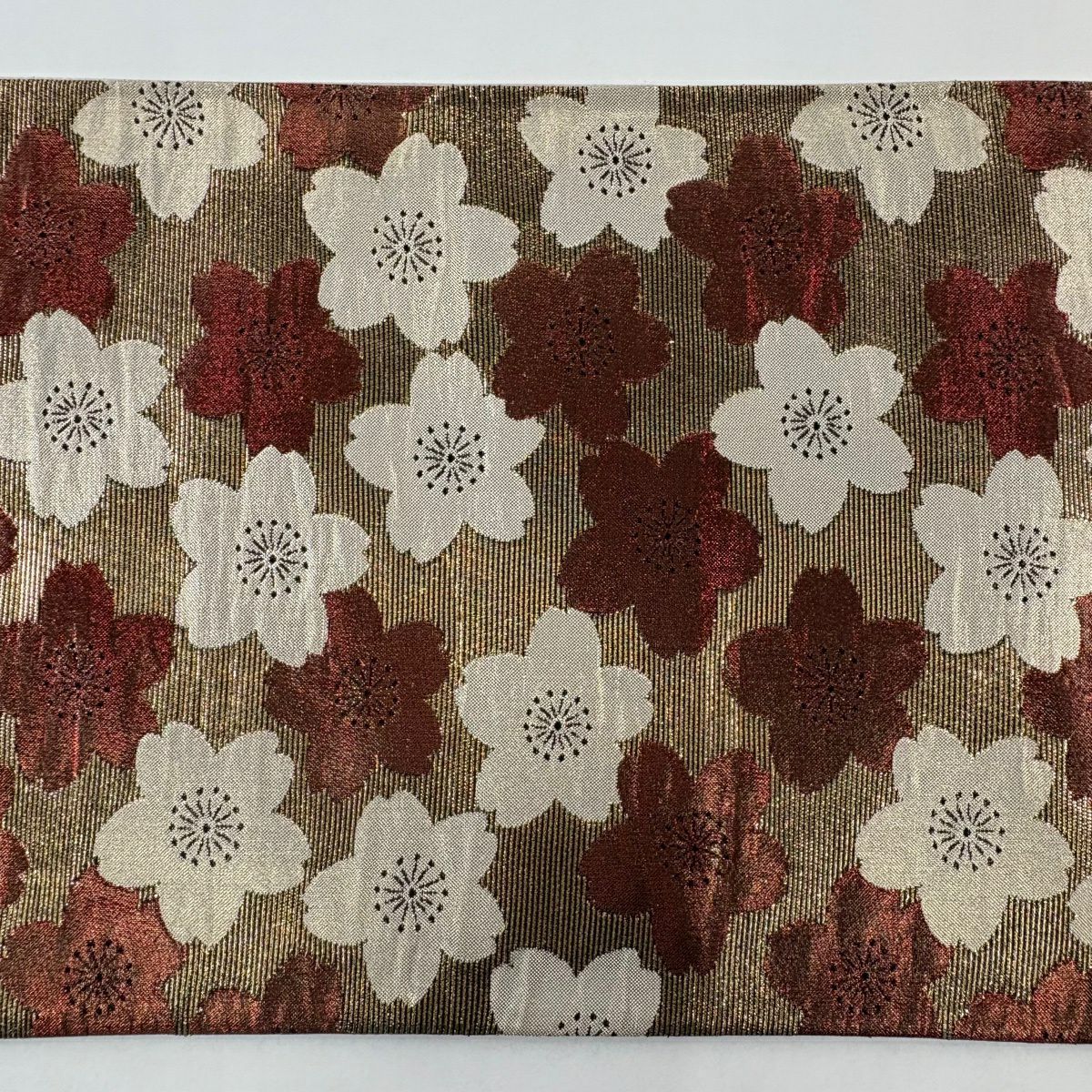袋帯 秀品 桜 波 箔 唐織 金色 六通 正絹