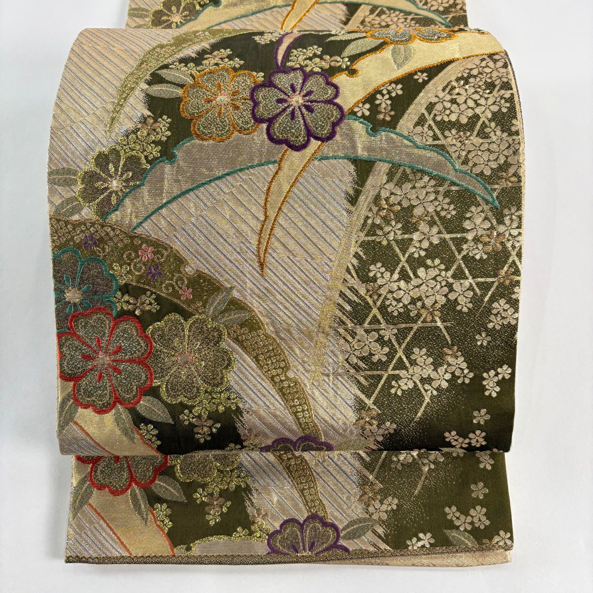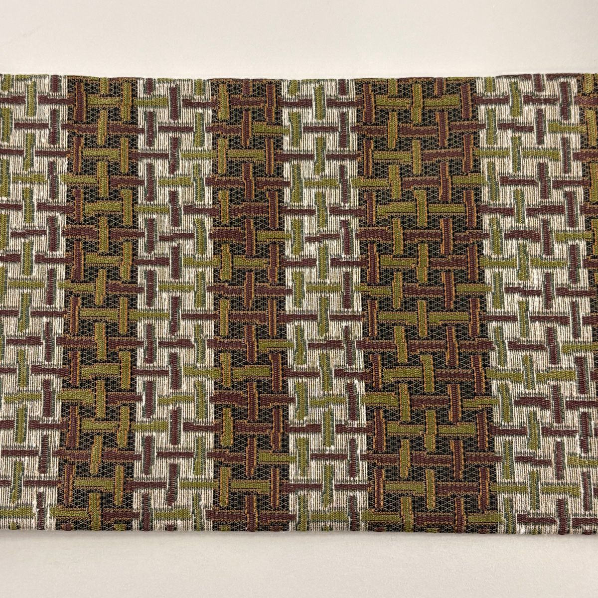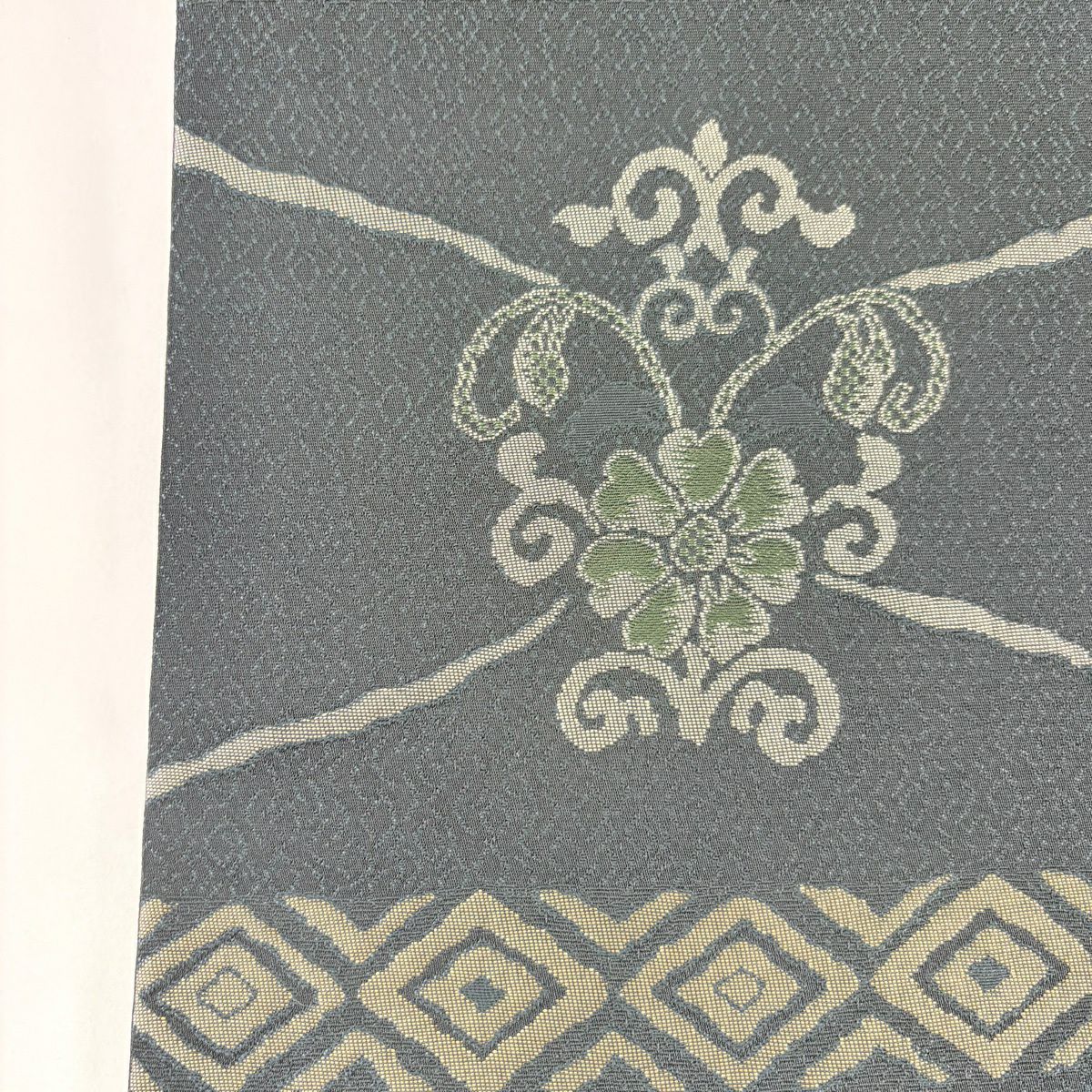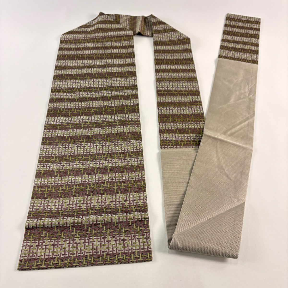 【美品】 袋帯 秀品 幾何学 茶緑色 全通 正絹