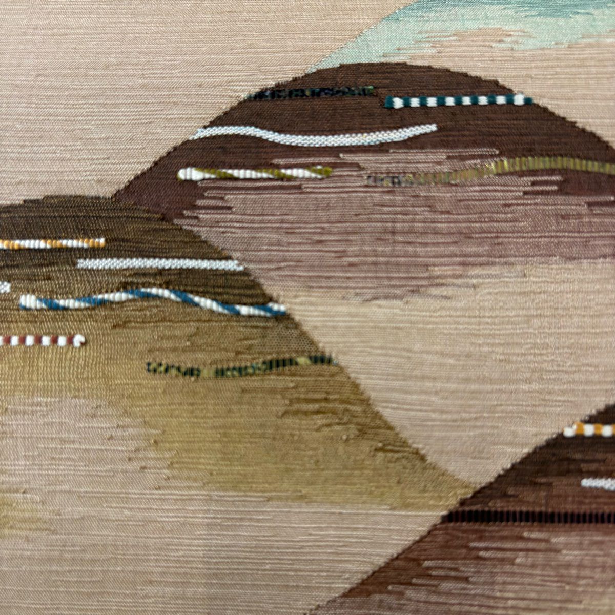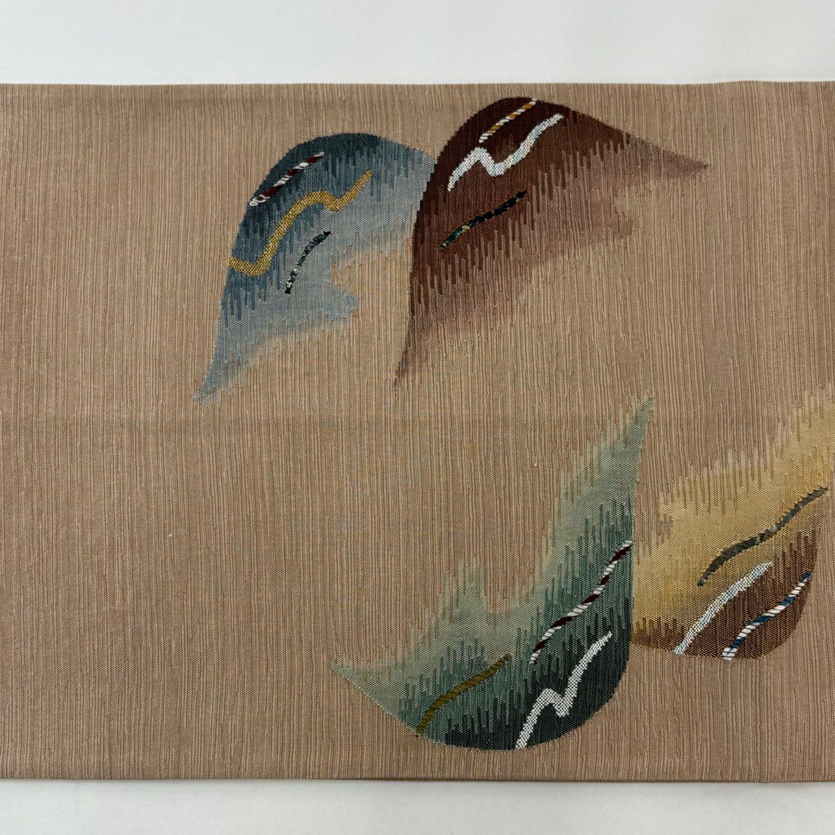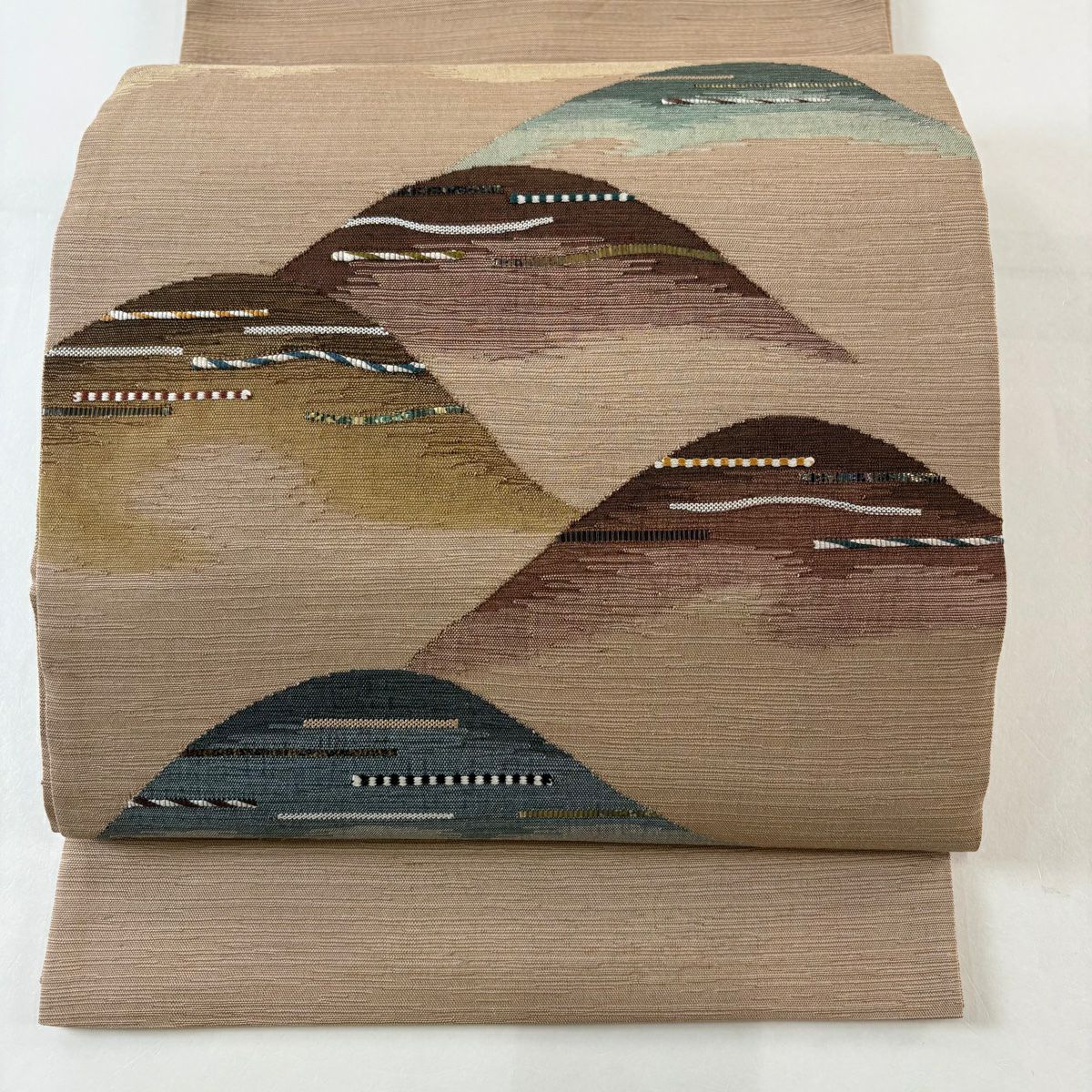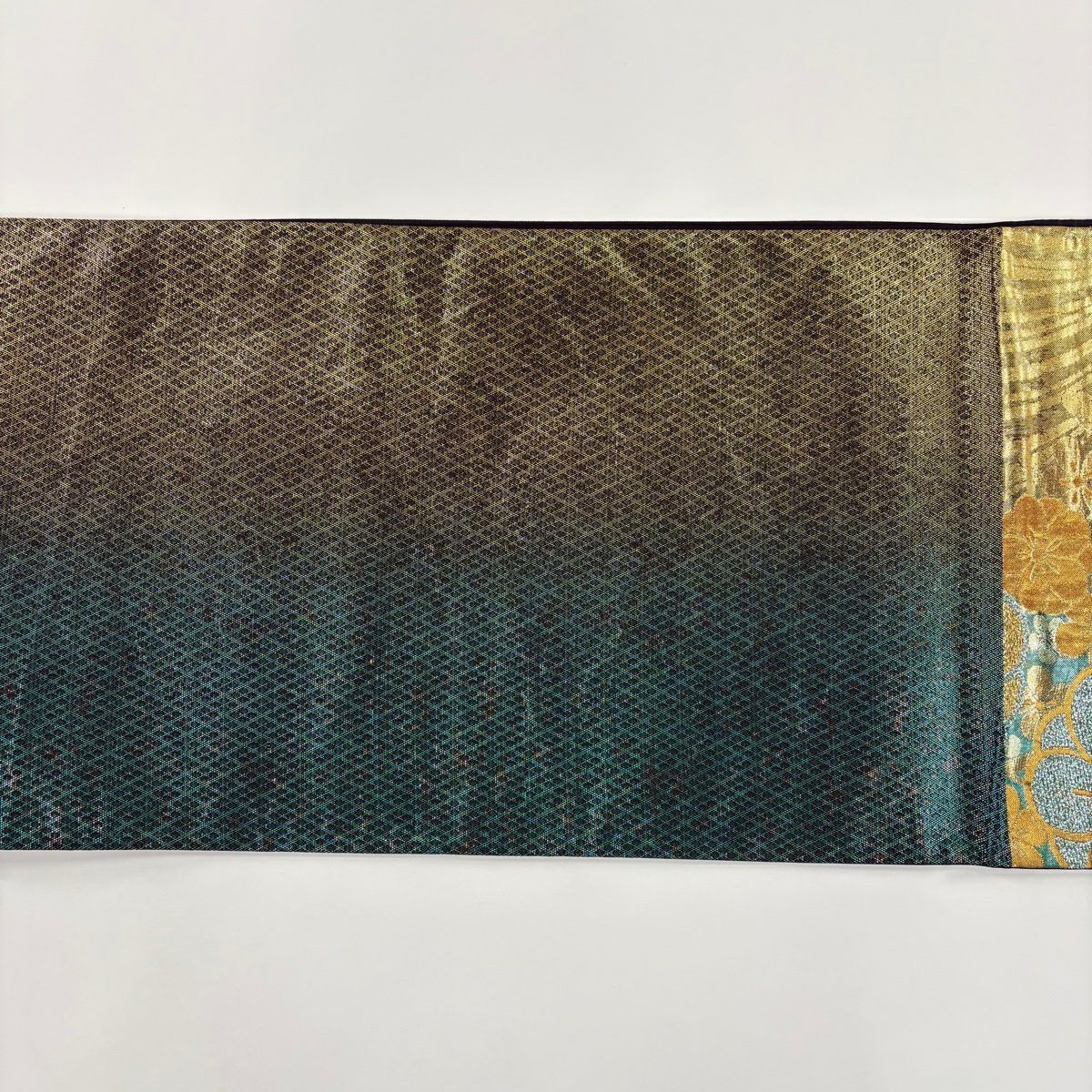 【美品】 袋帯 秀品 幾何学 茶緑色 全通 正絹