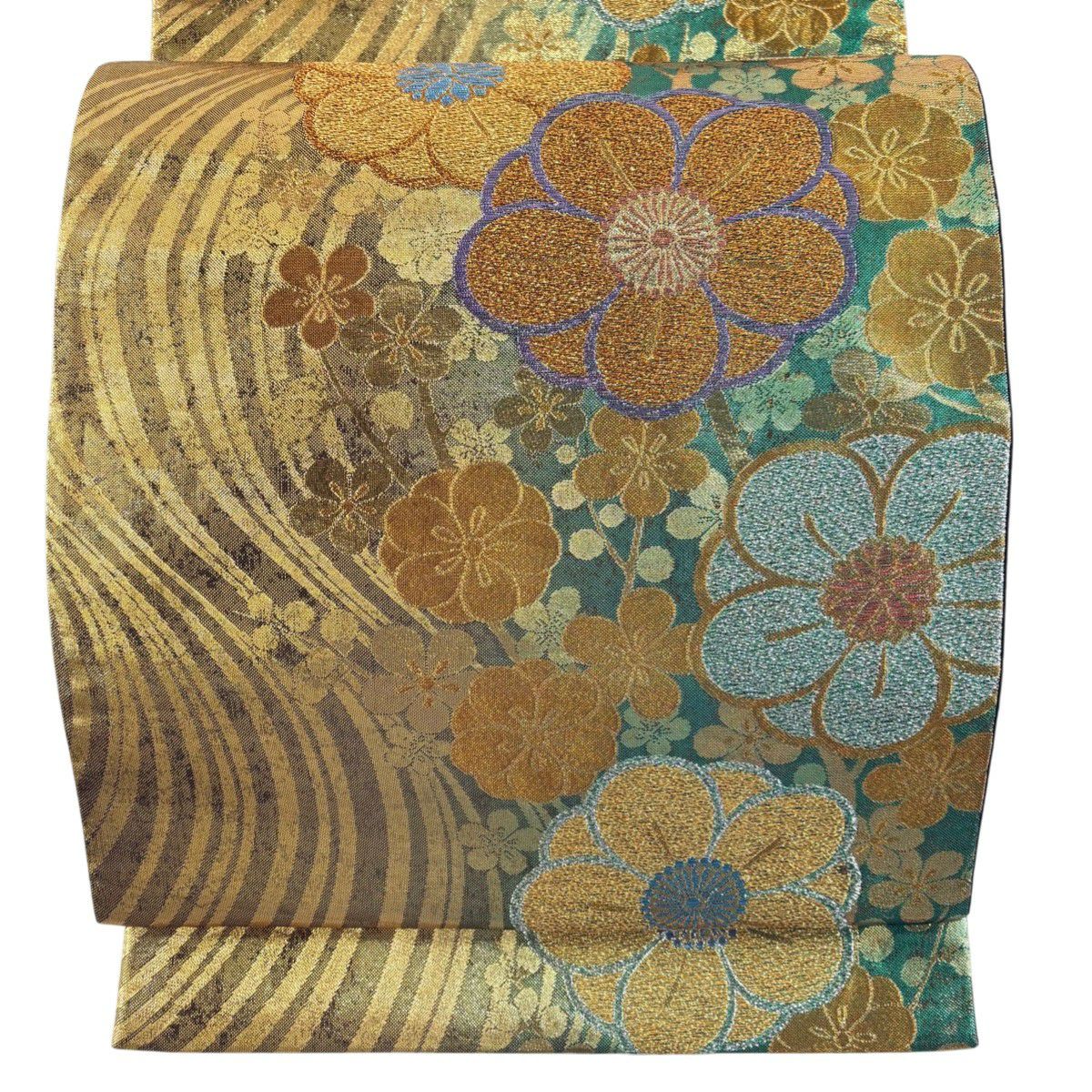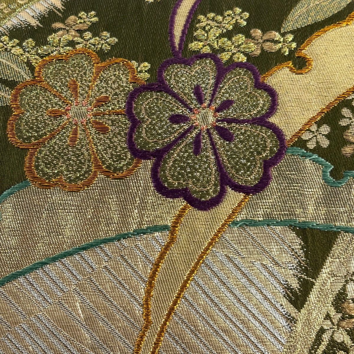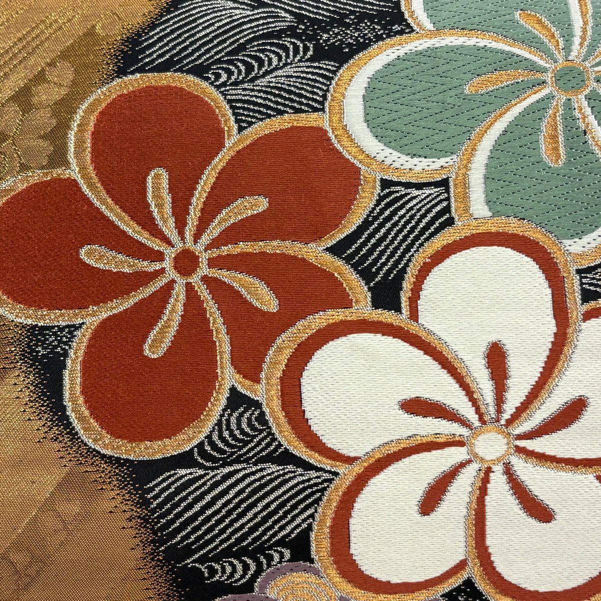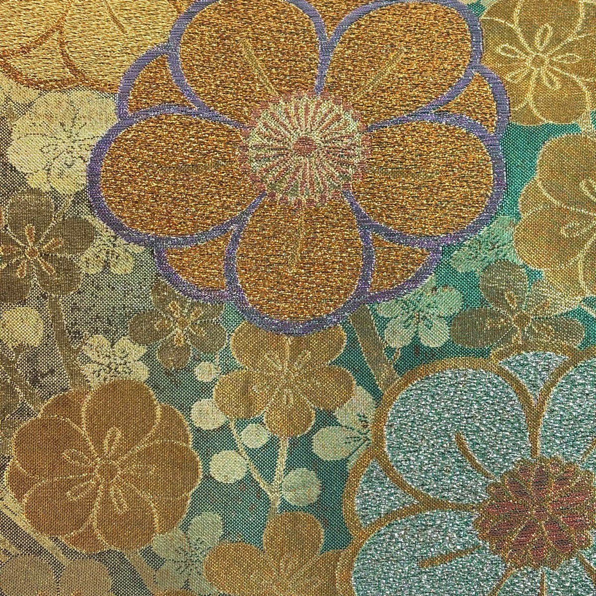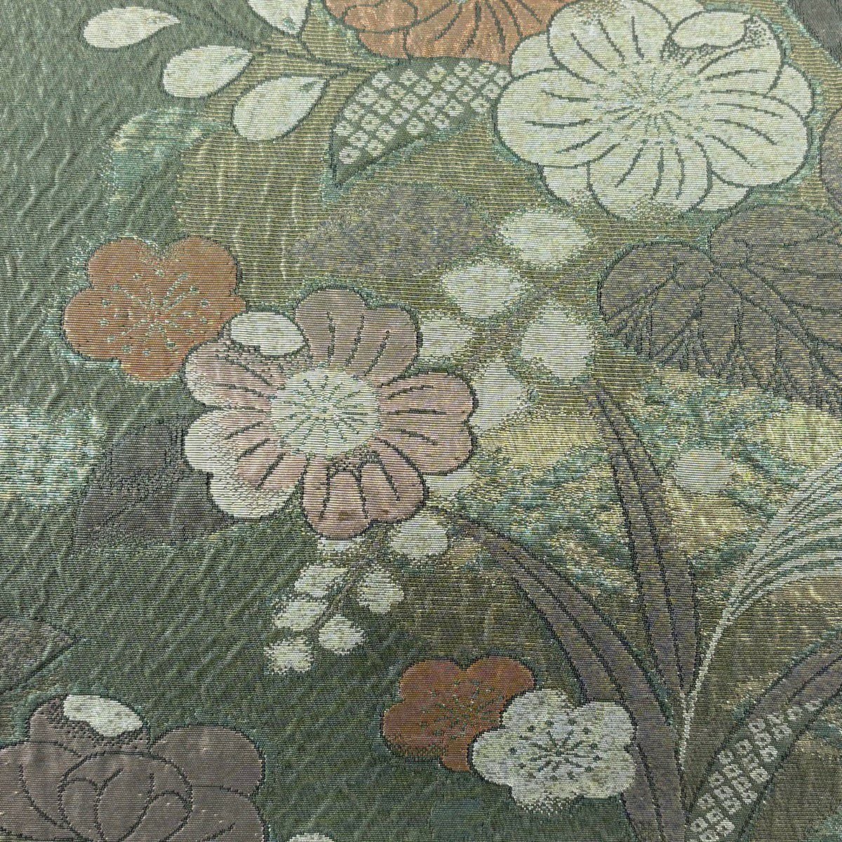 袋帯 秀品 梅 流水 金銀糸 箔 緑 六通 正絹