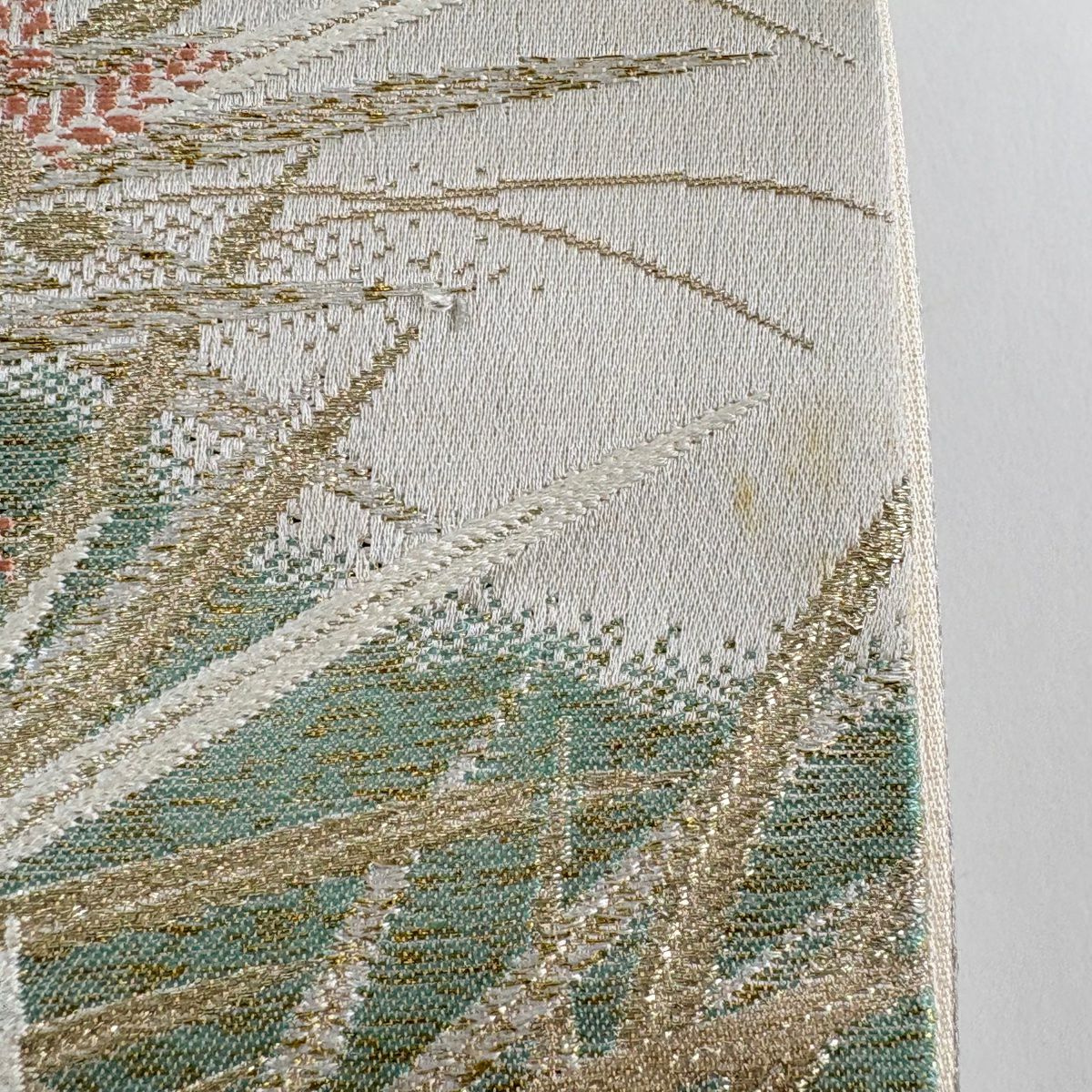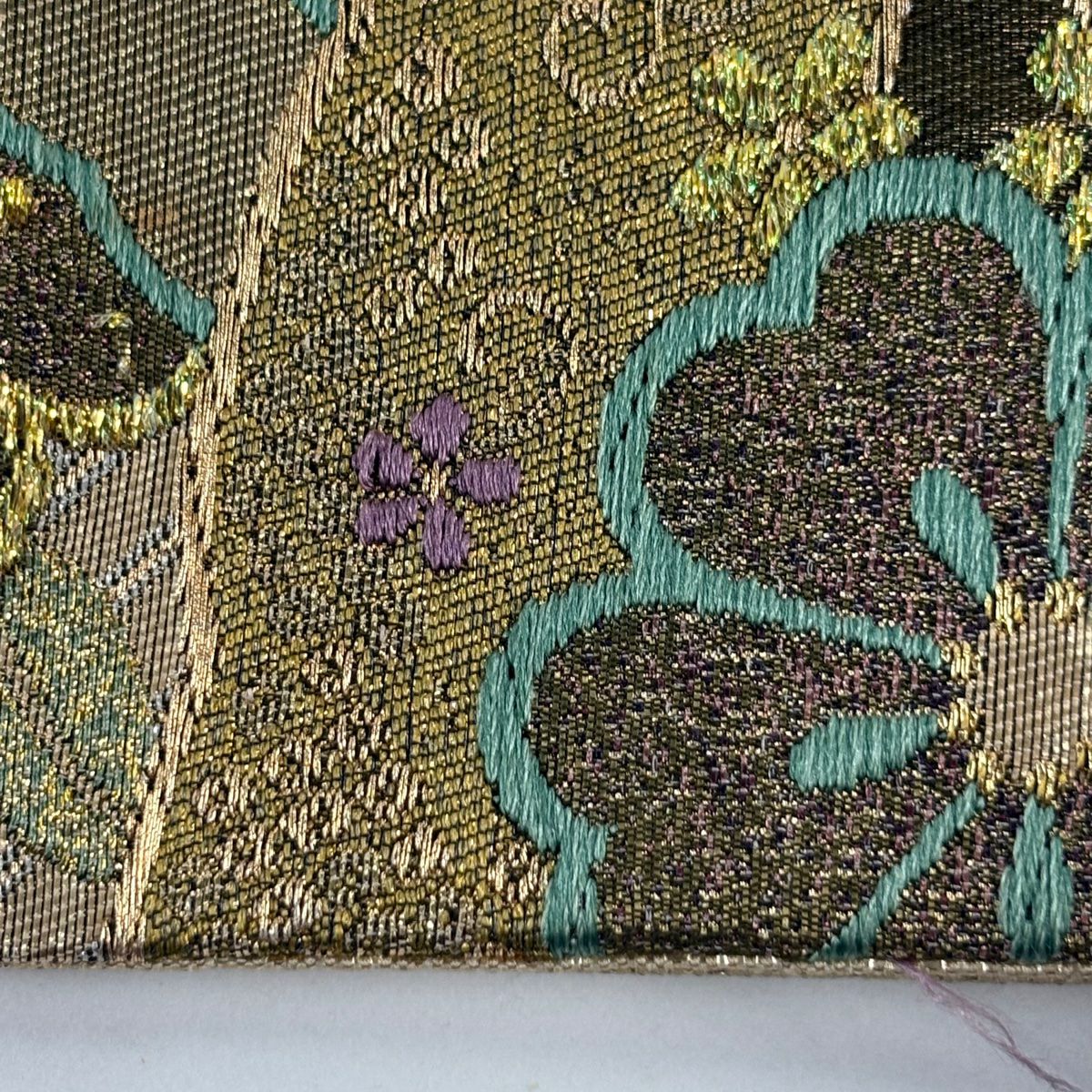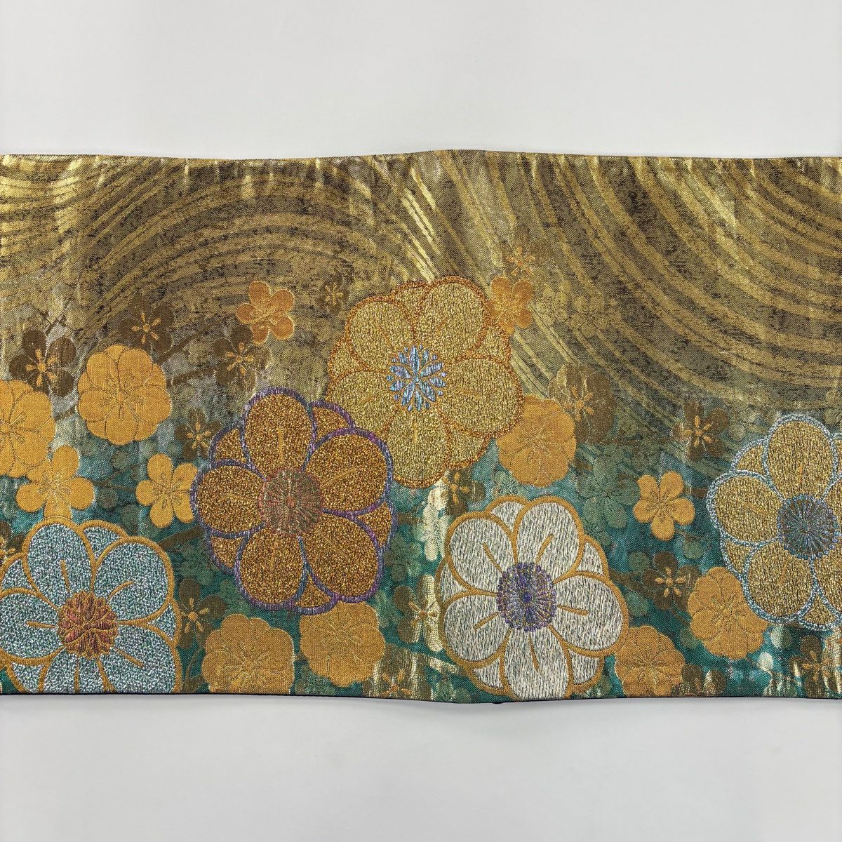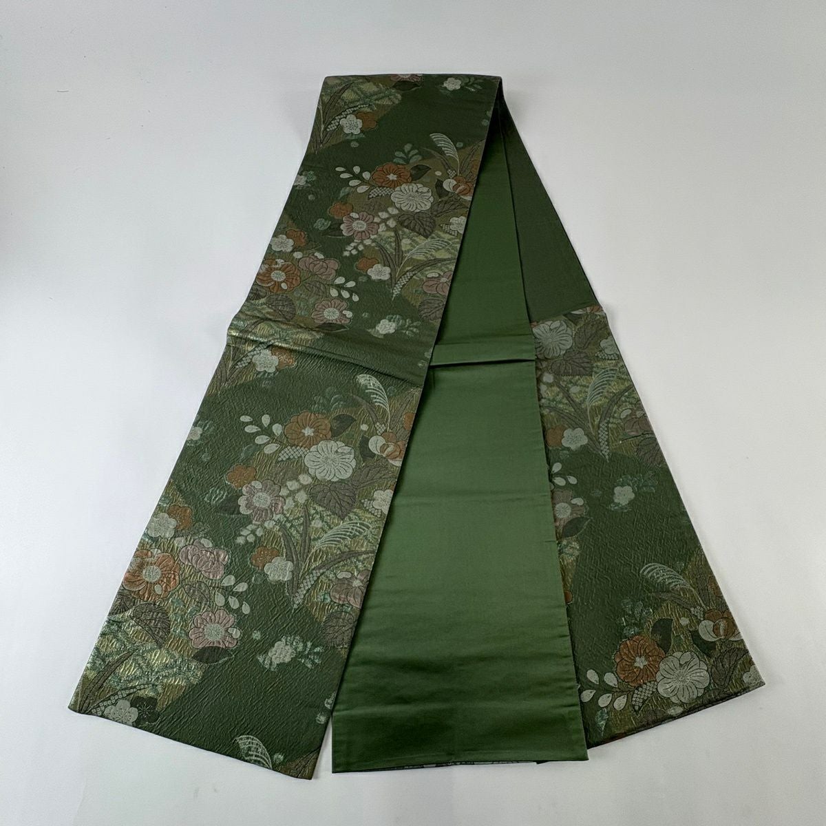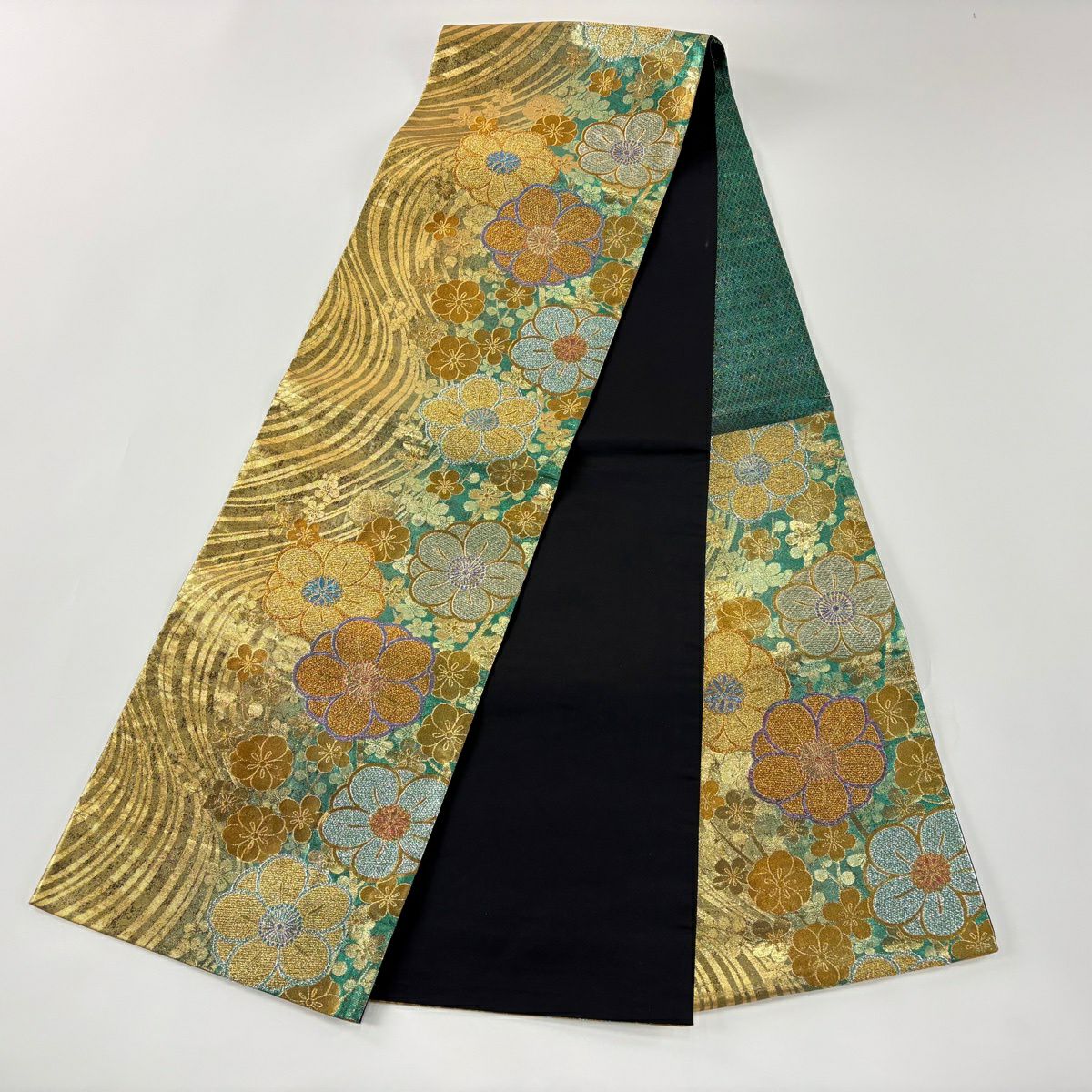 袋帯 秀品 梅 流水 金銀糸 箔 緑 六通 正絹