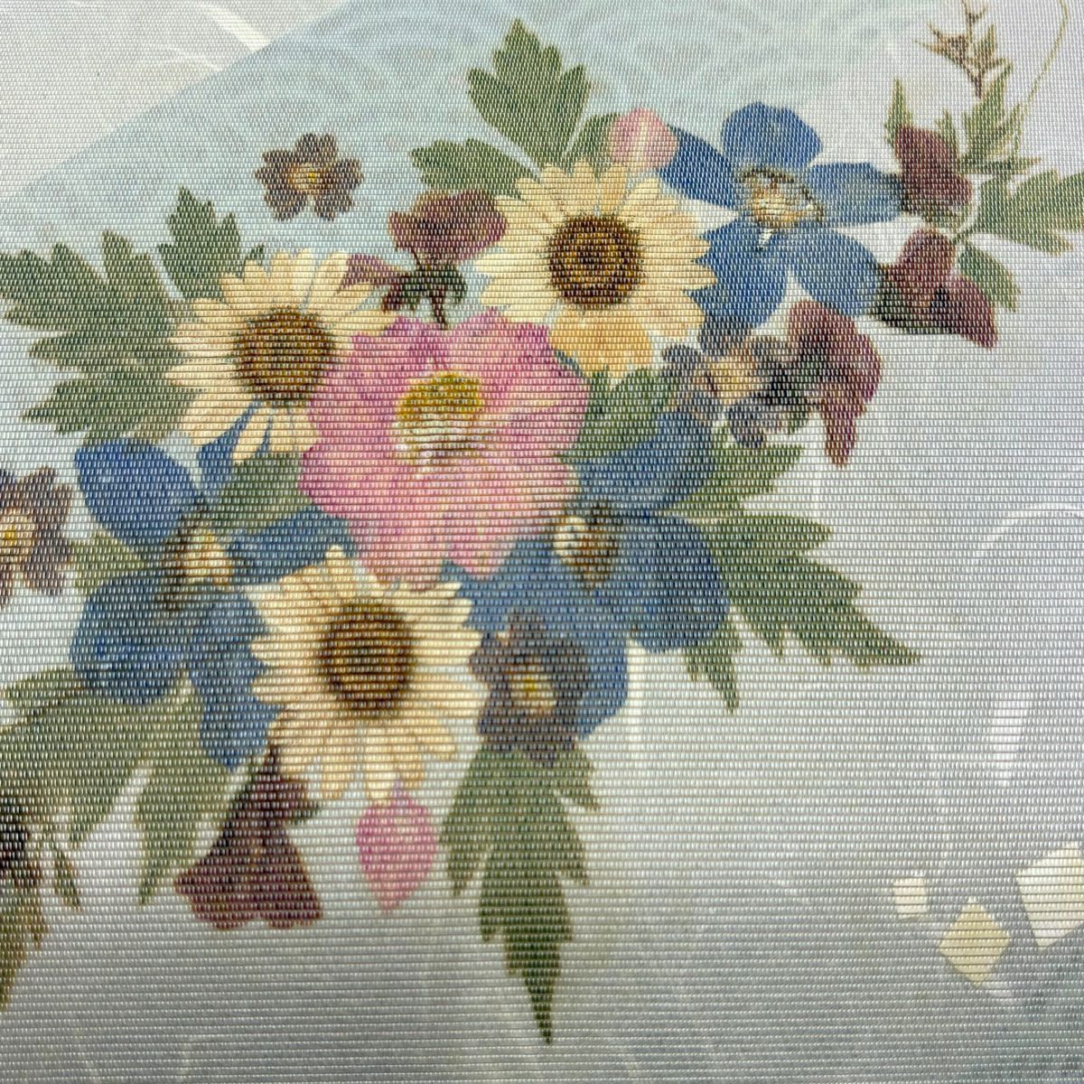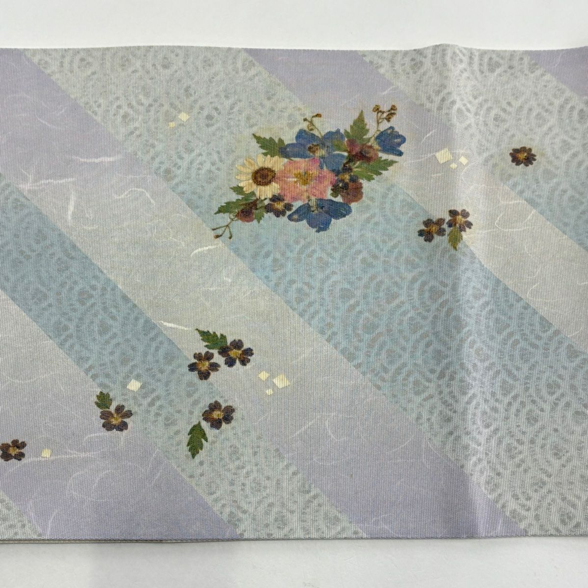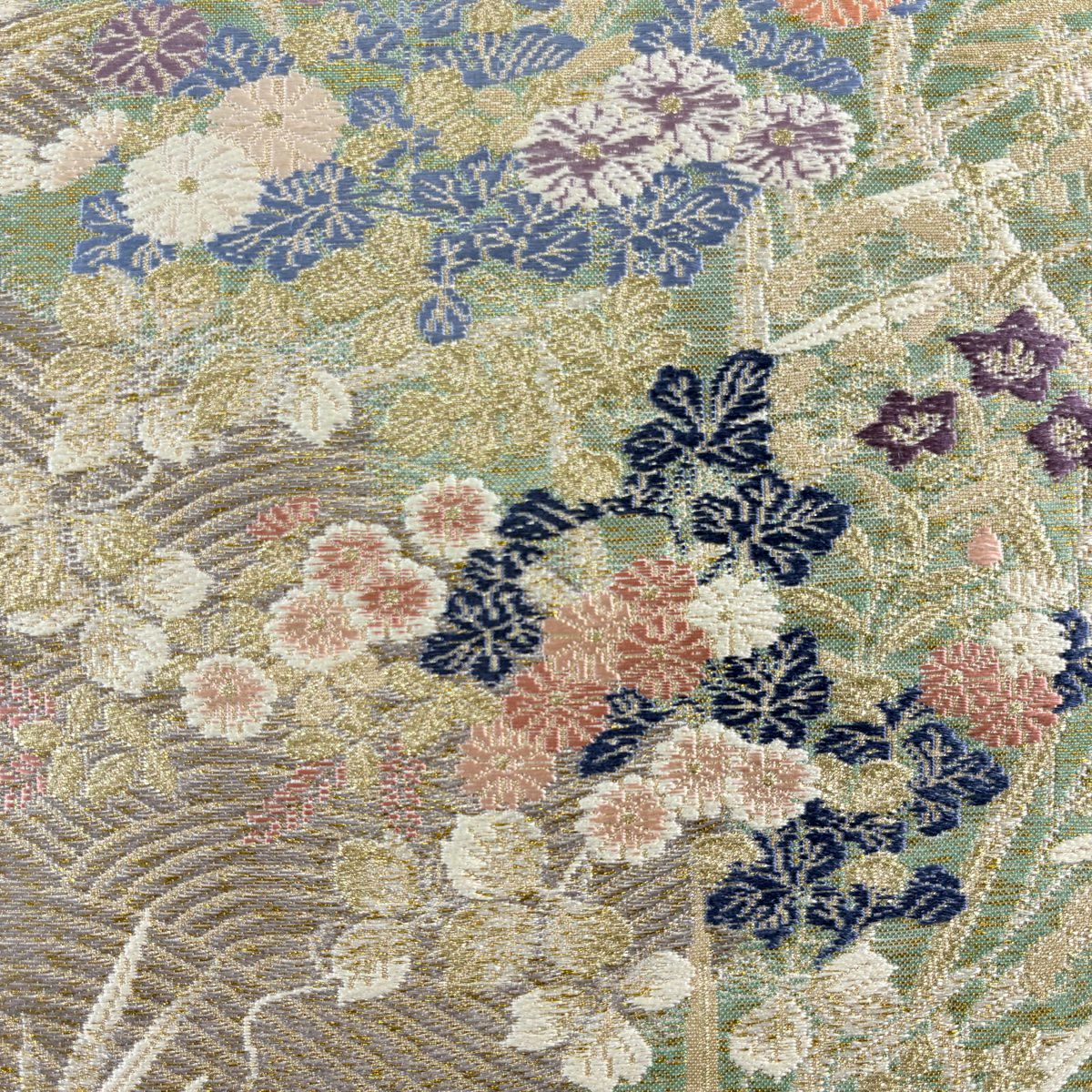 名古屋帯 秀品 鈴 草花 箔 金糸 青灰色 正絹