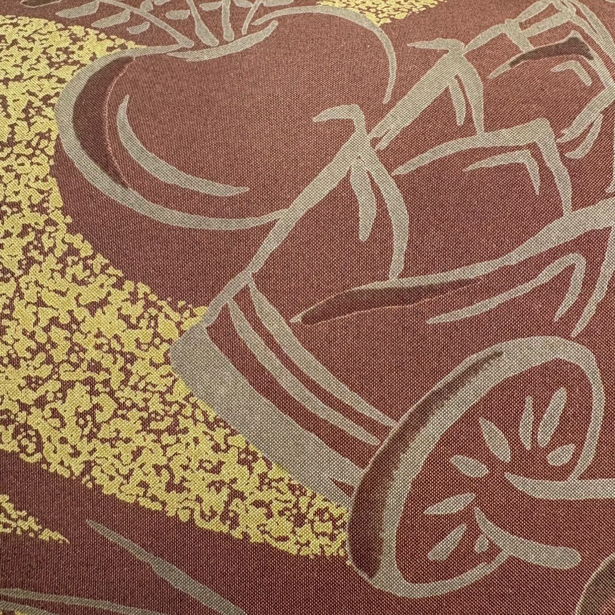 【美品】 袋帯 秀品 草花 箔 赤茶 六通 正絹