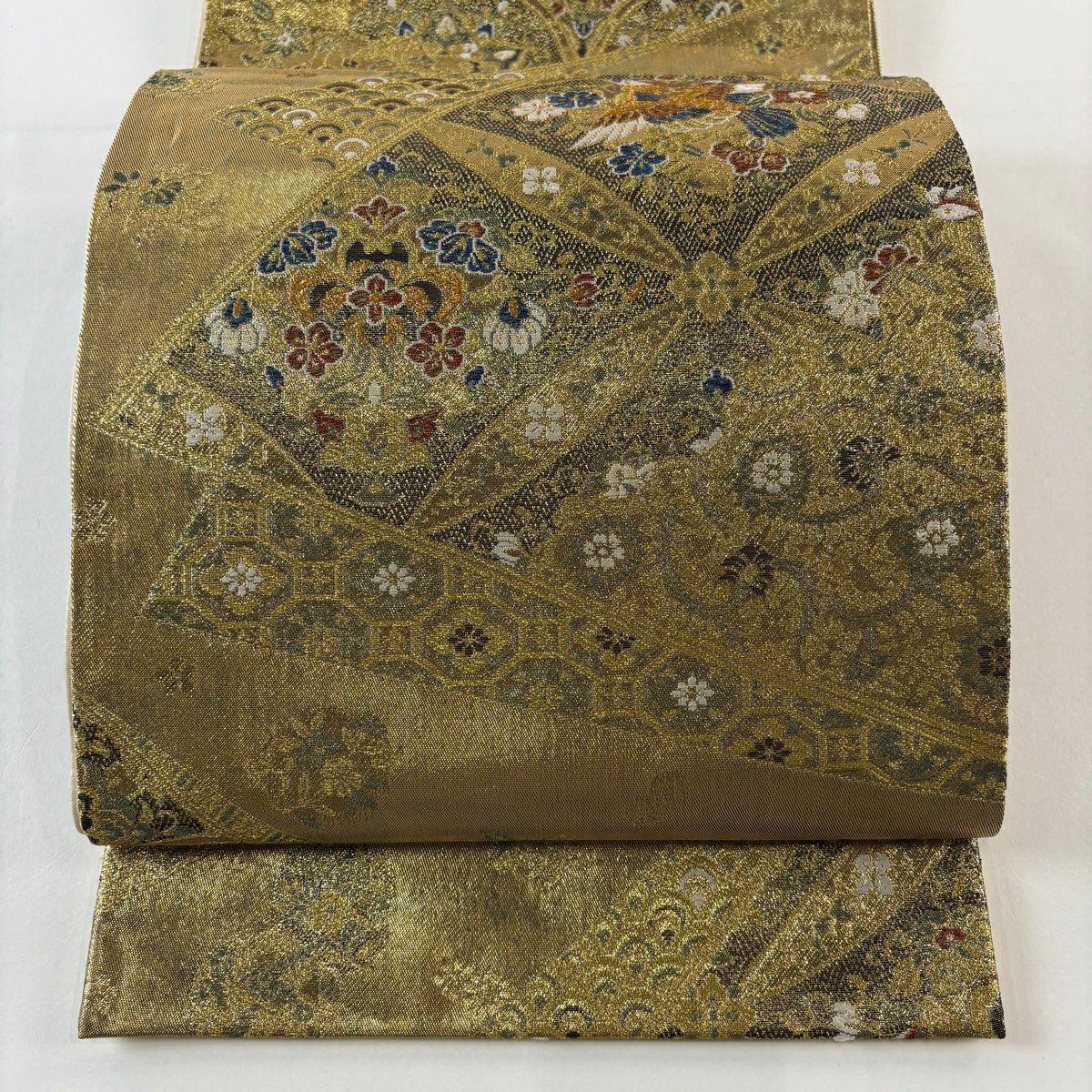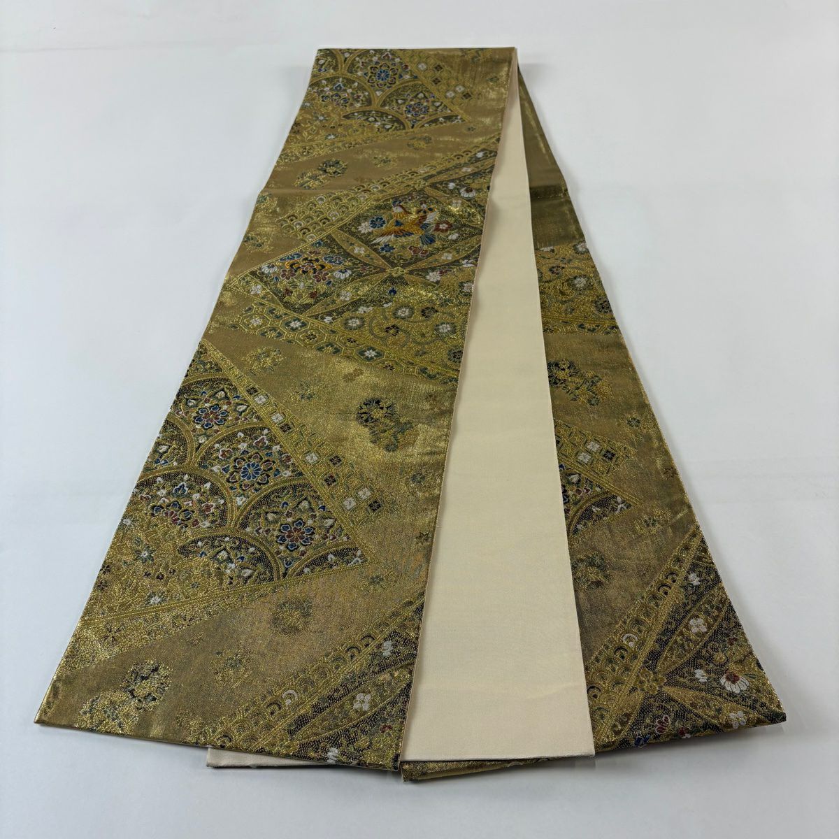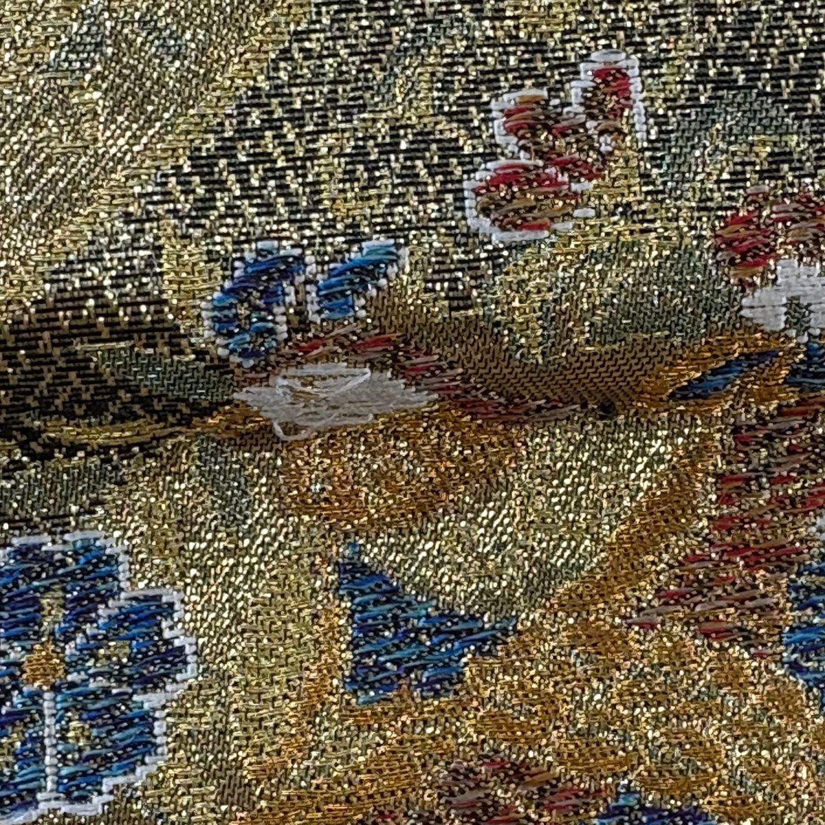 袋帯 秀品 鳥 華文 箔 金糸 金色 六通 正絹