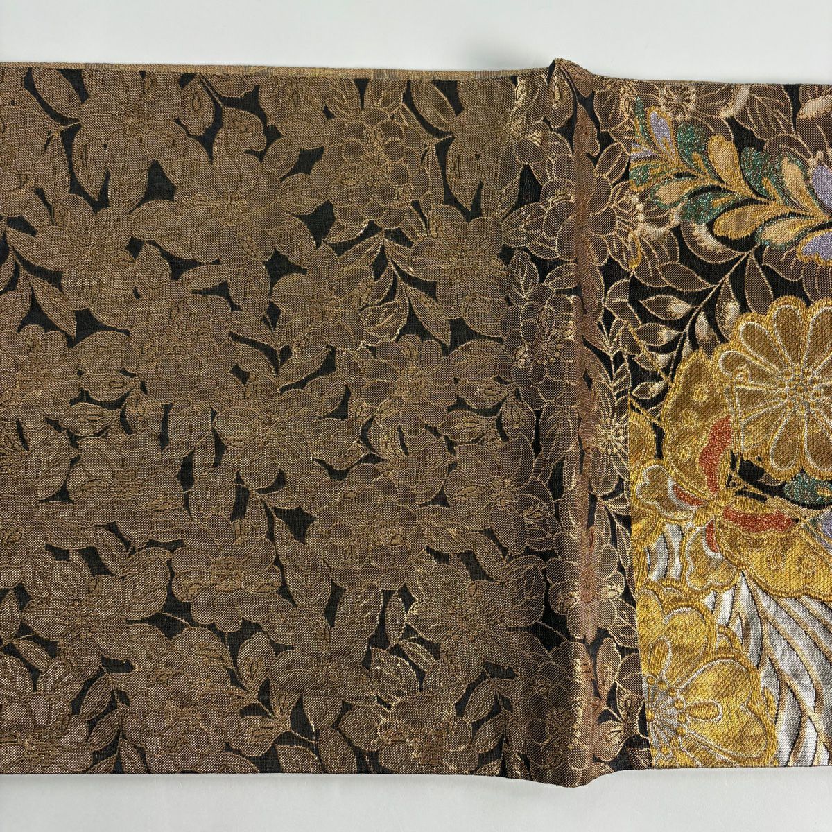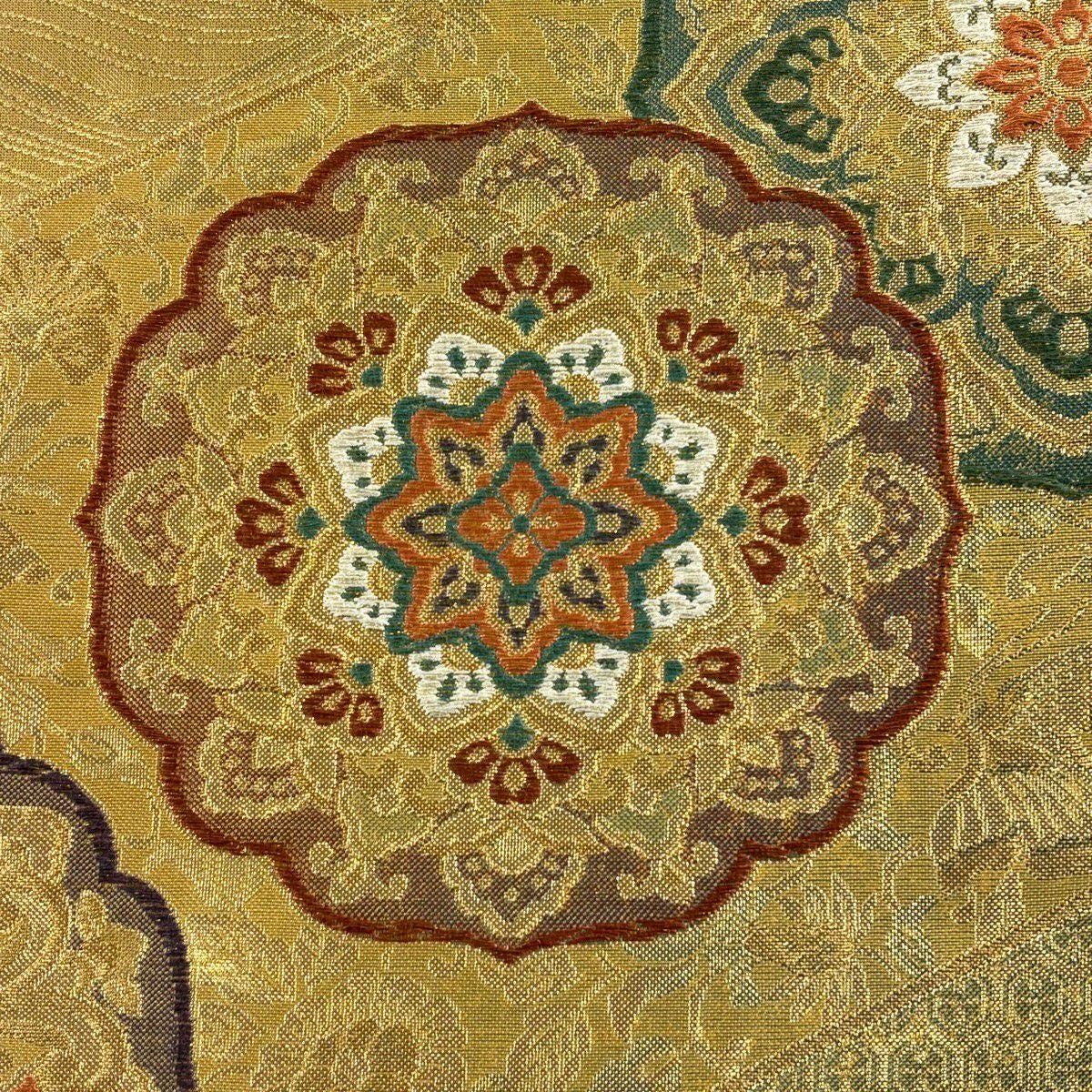 袋帯 秀品 華文 草花 金糸 箔 金色 六通 正絹