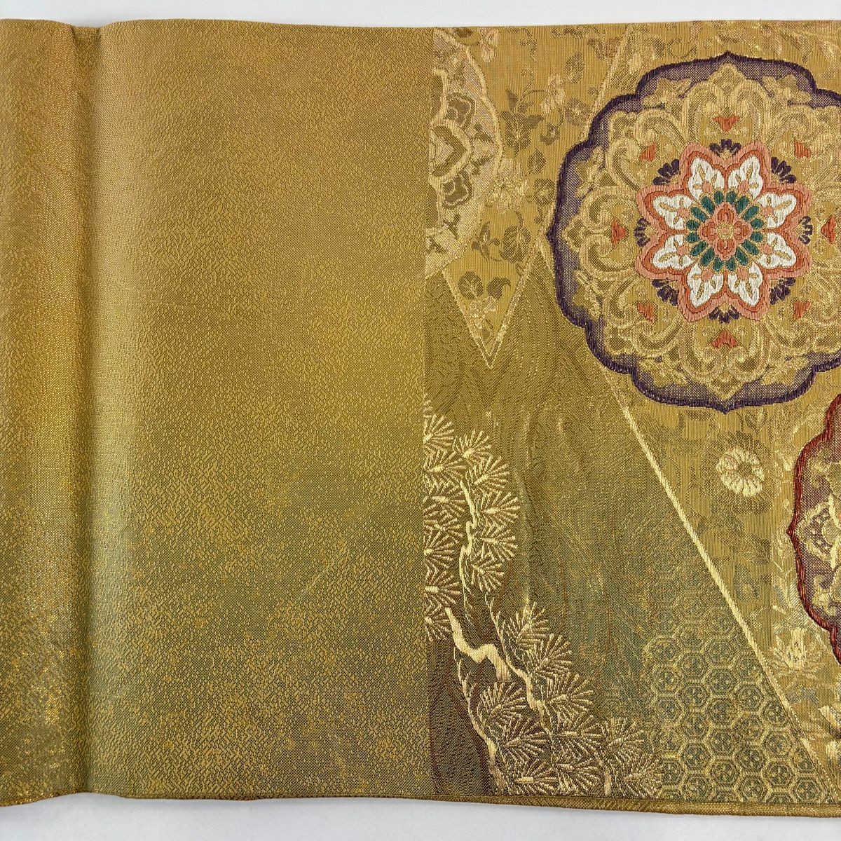 袋帯 秀品 松梅 雪輪 金糸 箔 金色 六通 正絹