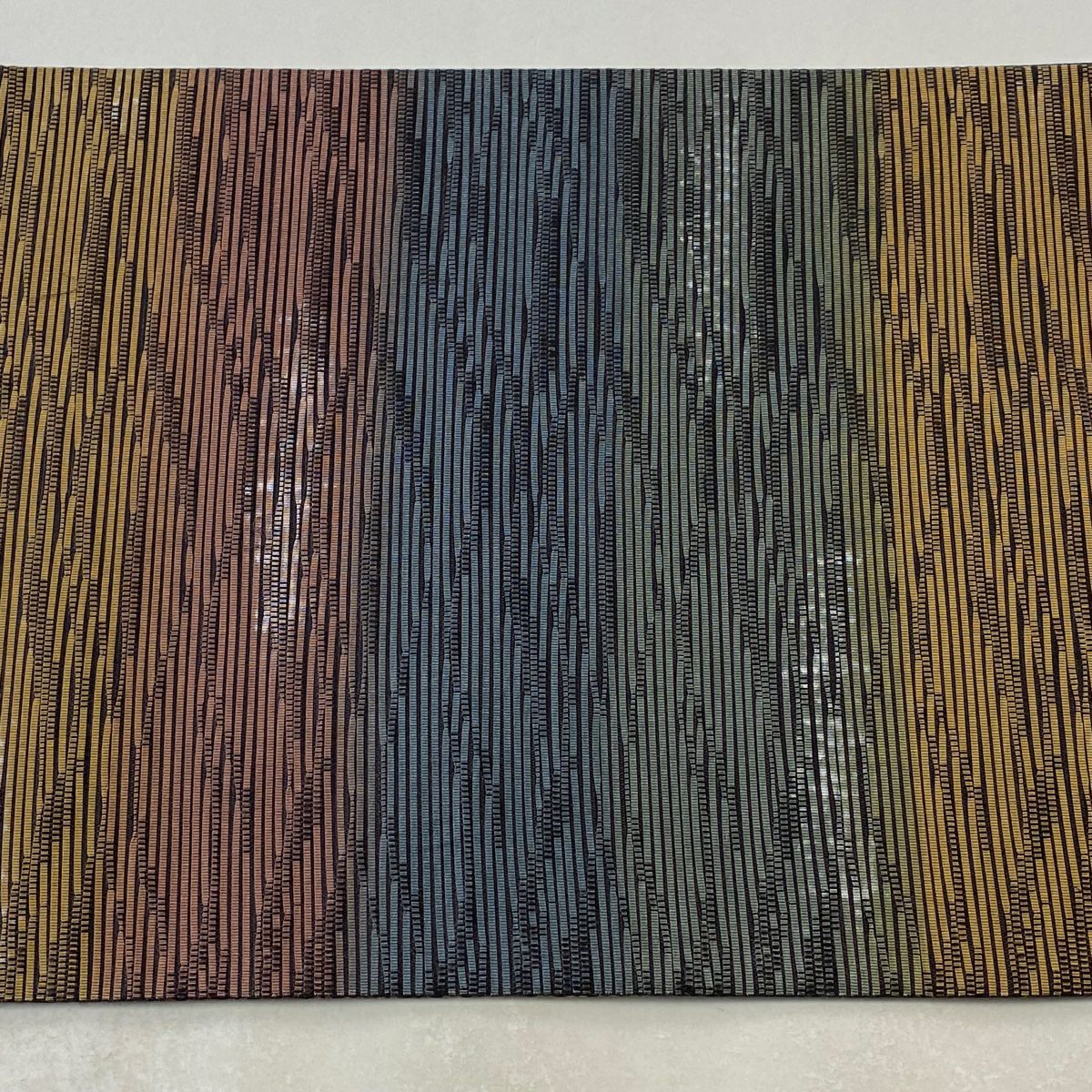 【美品】 袋帯 秀品 縞 箔 灰色 全通 正絹