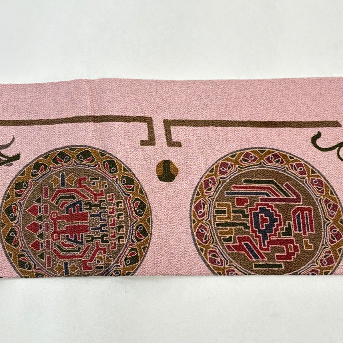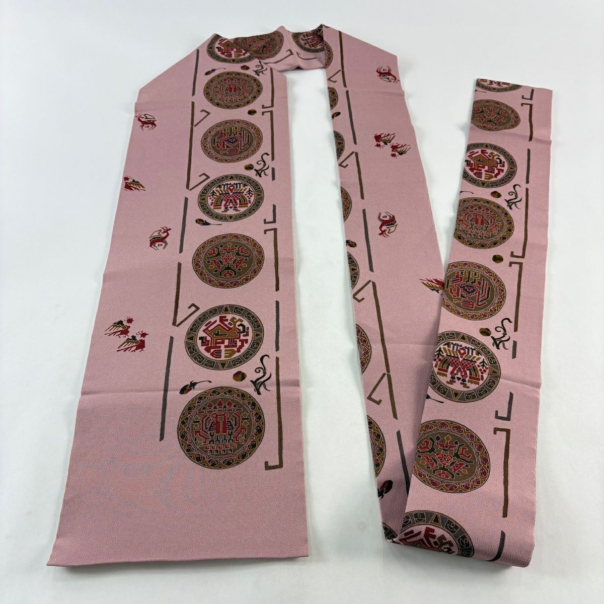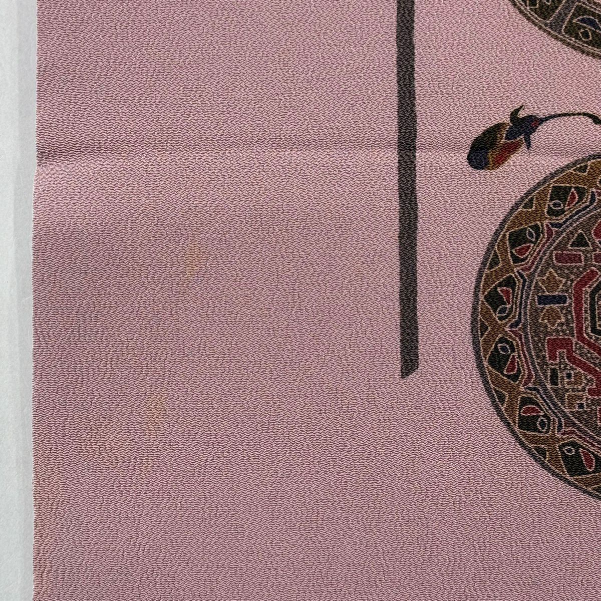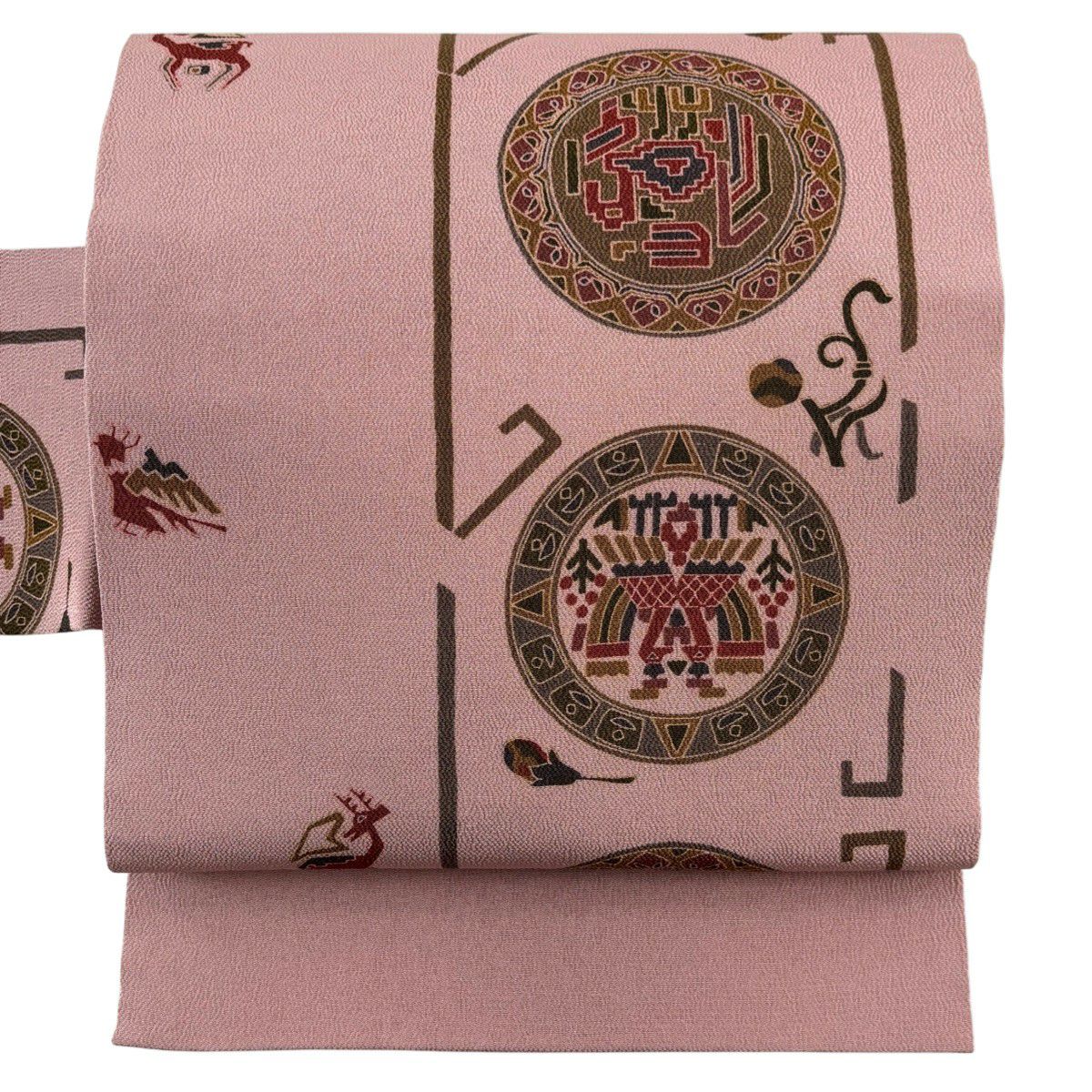名古屋帯 秀品 花文 動物 縮緬 ピンク 正絹