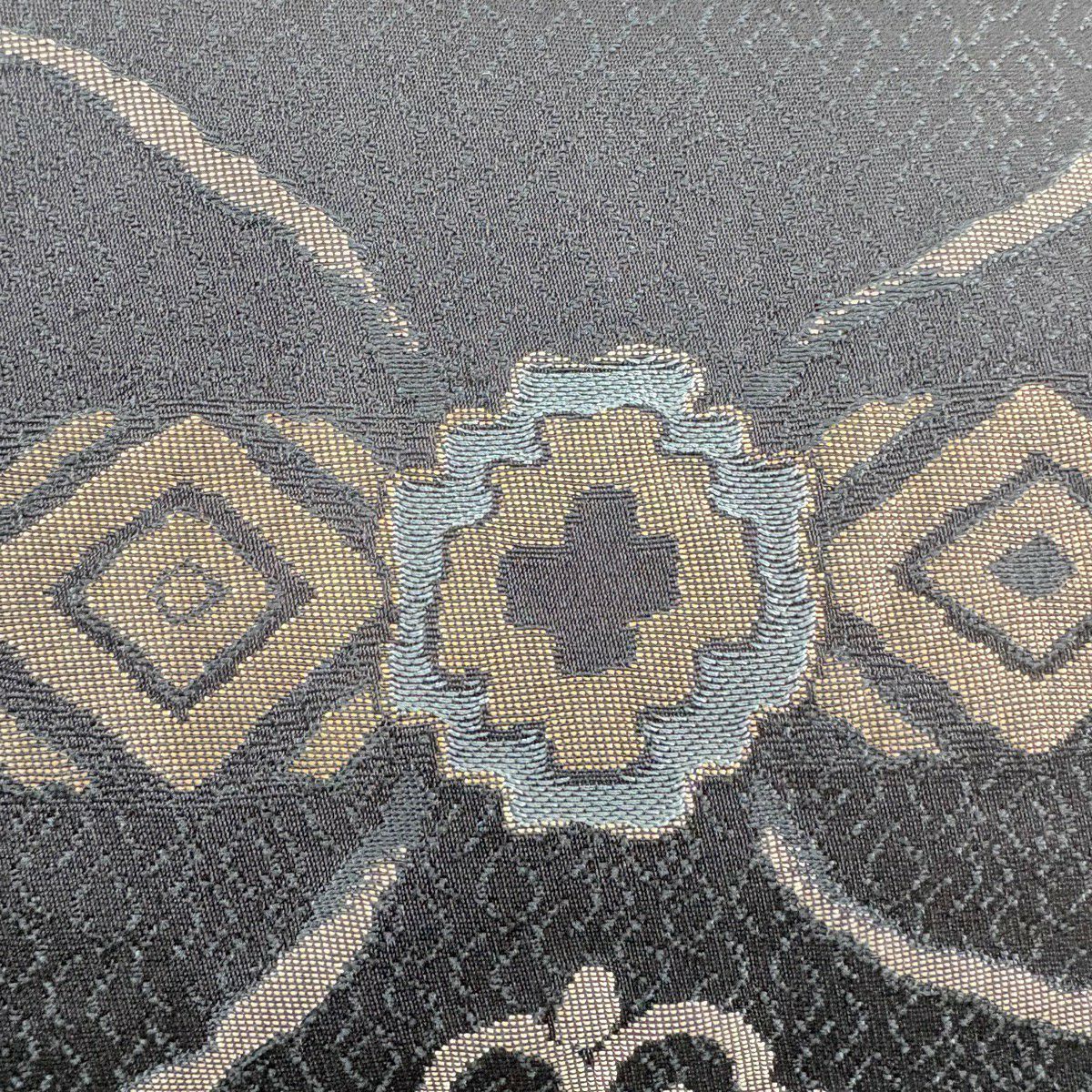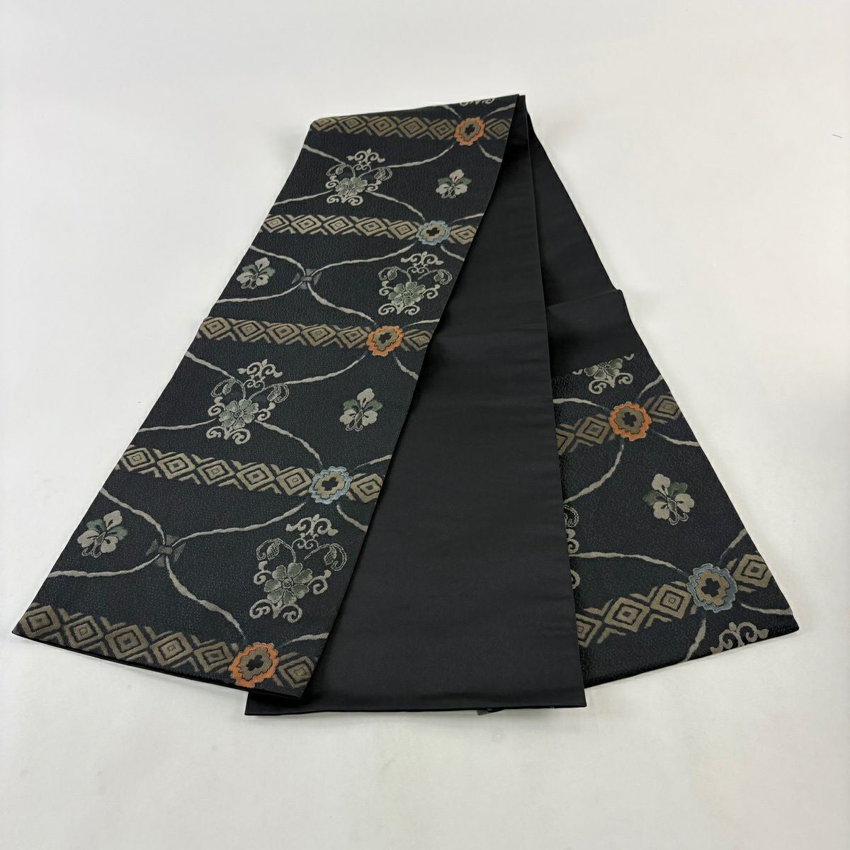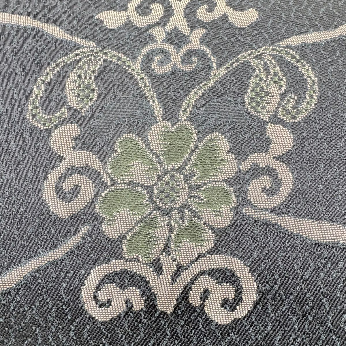 【美品】 袋名古屋帯 秀品 花唐草 菱 黒 正絹