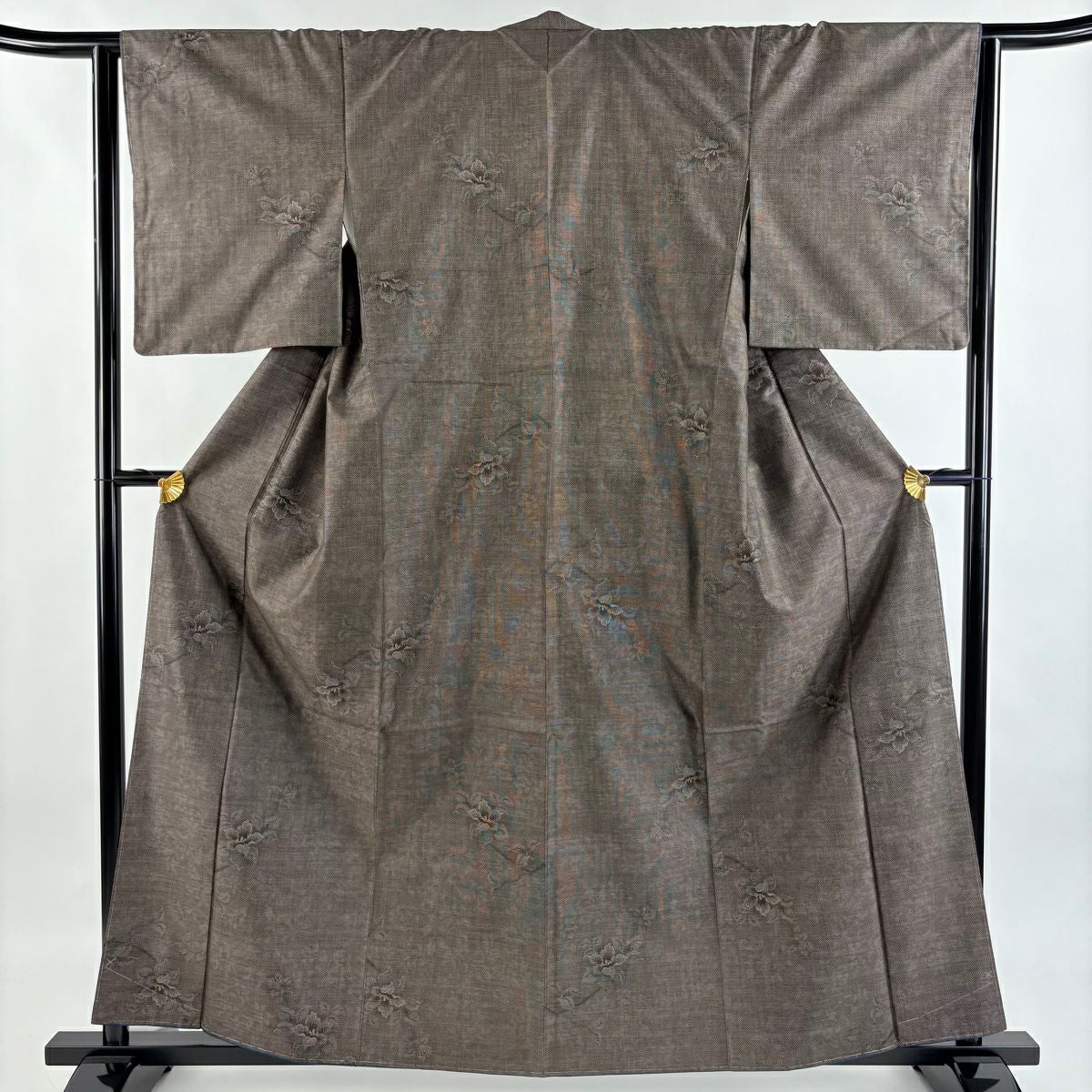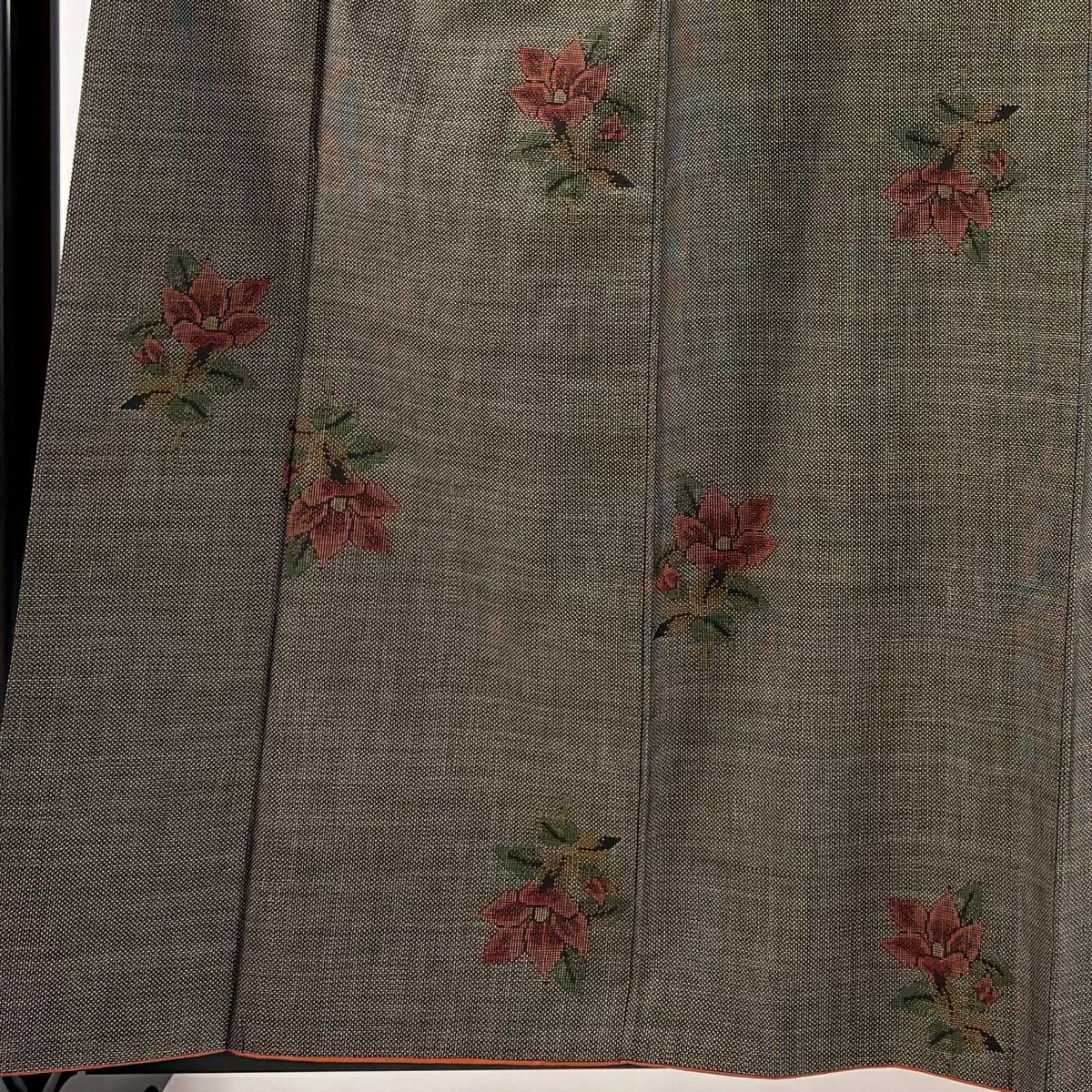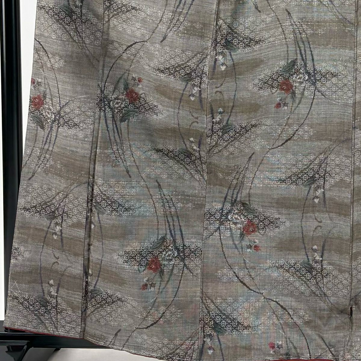【在庫一掃】 紬 身丈153cm 裄丈63cm S 袷 草花 蝶 灰茶 正絹 秀品