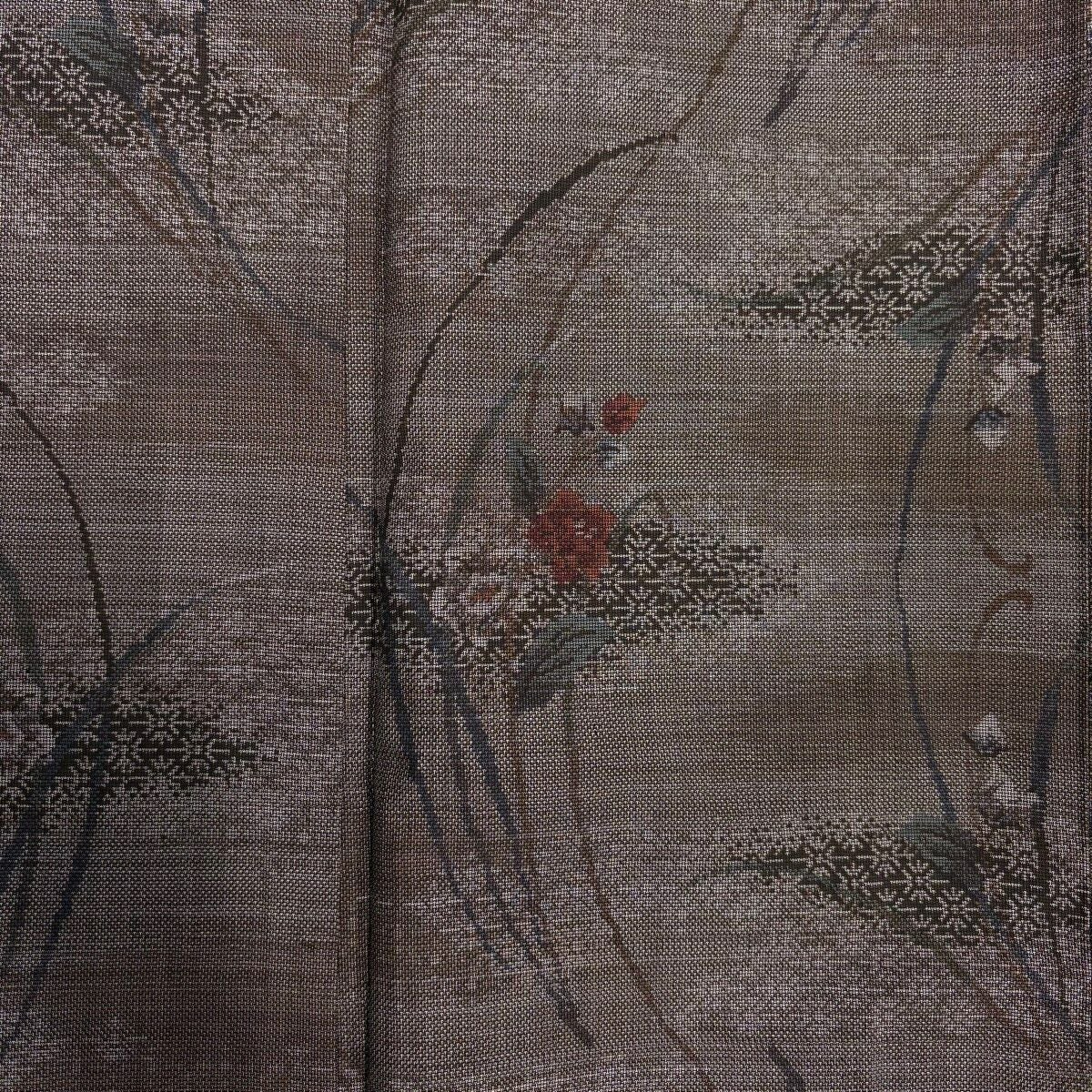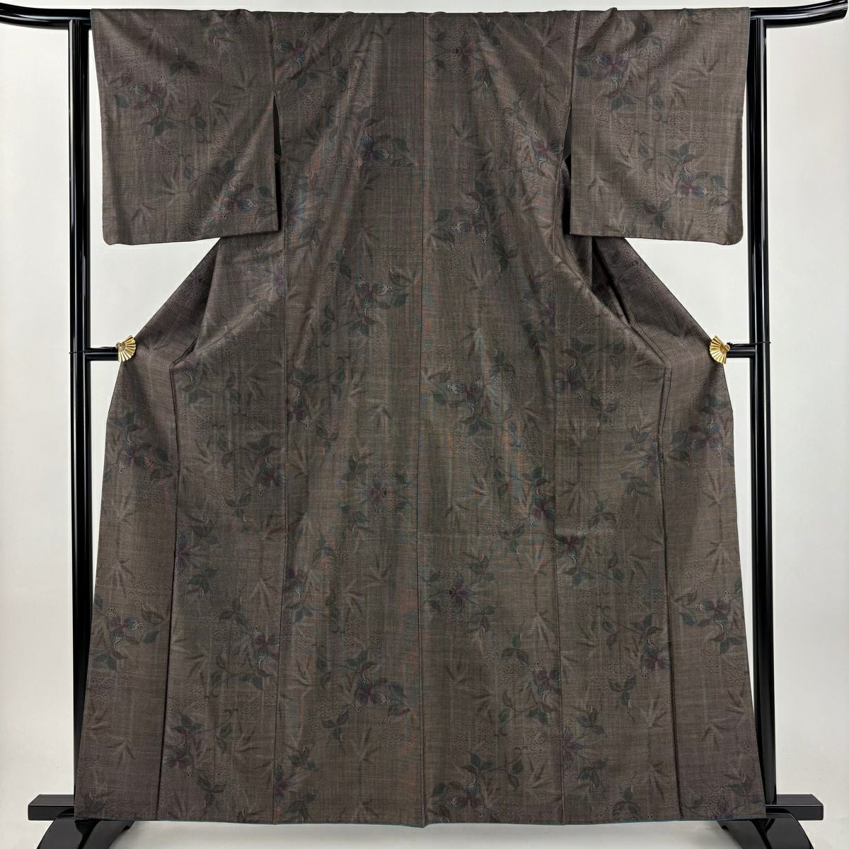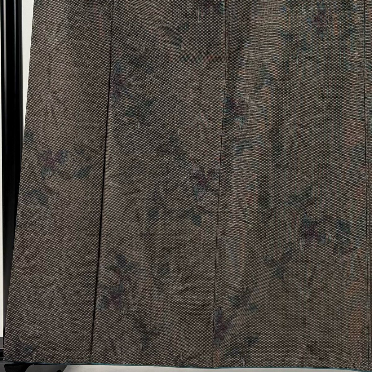 【在庫一掃】 紬 身丈161cm 裄丈65cm M 袷 草花 焦茶色 正絹 秀品