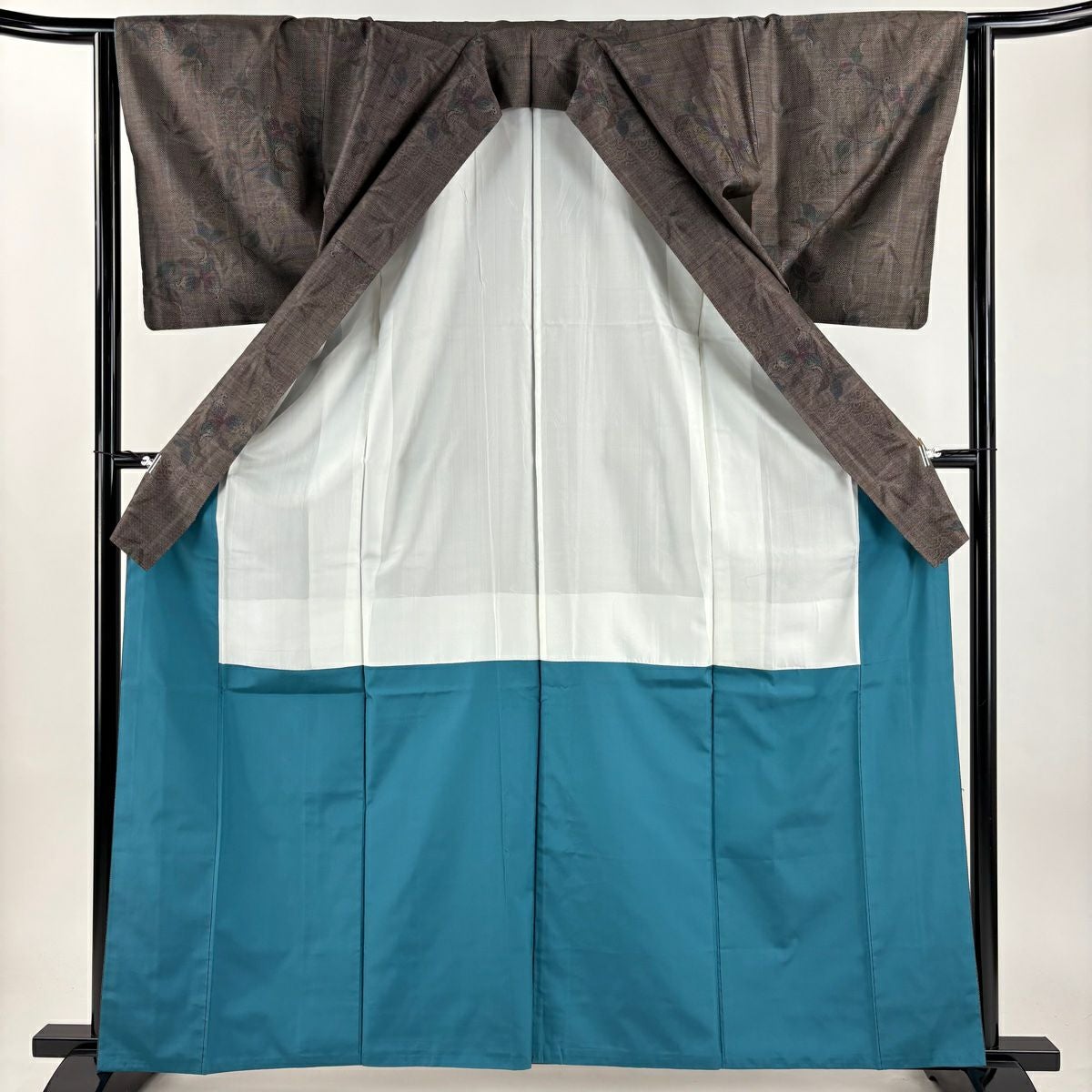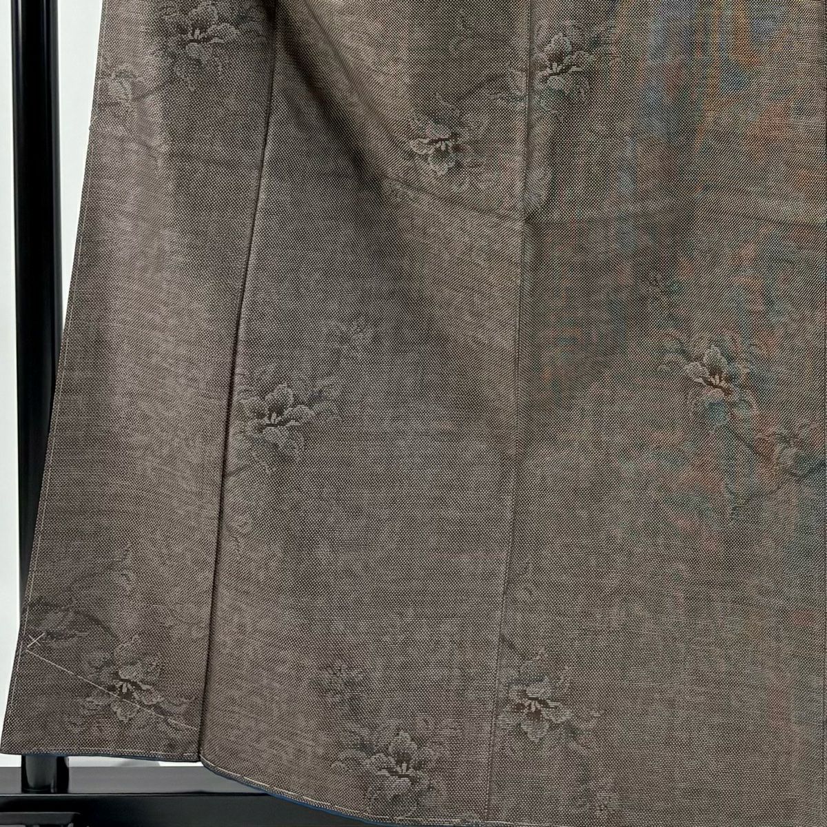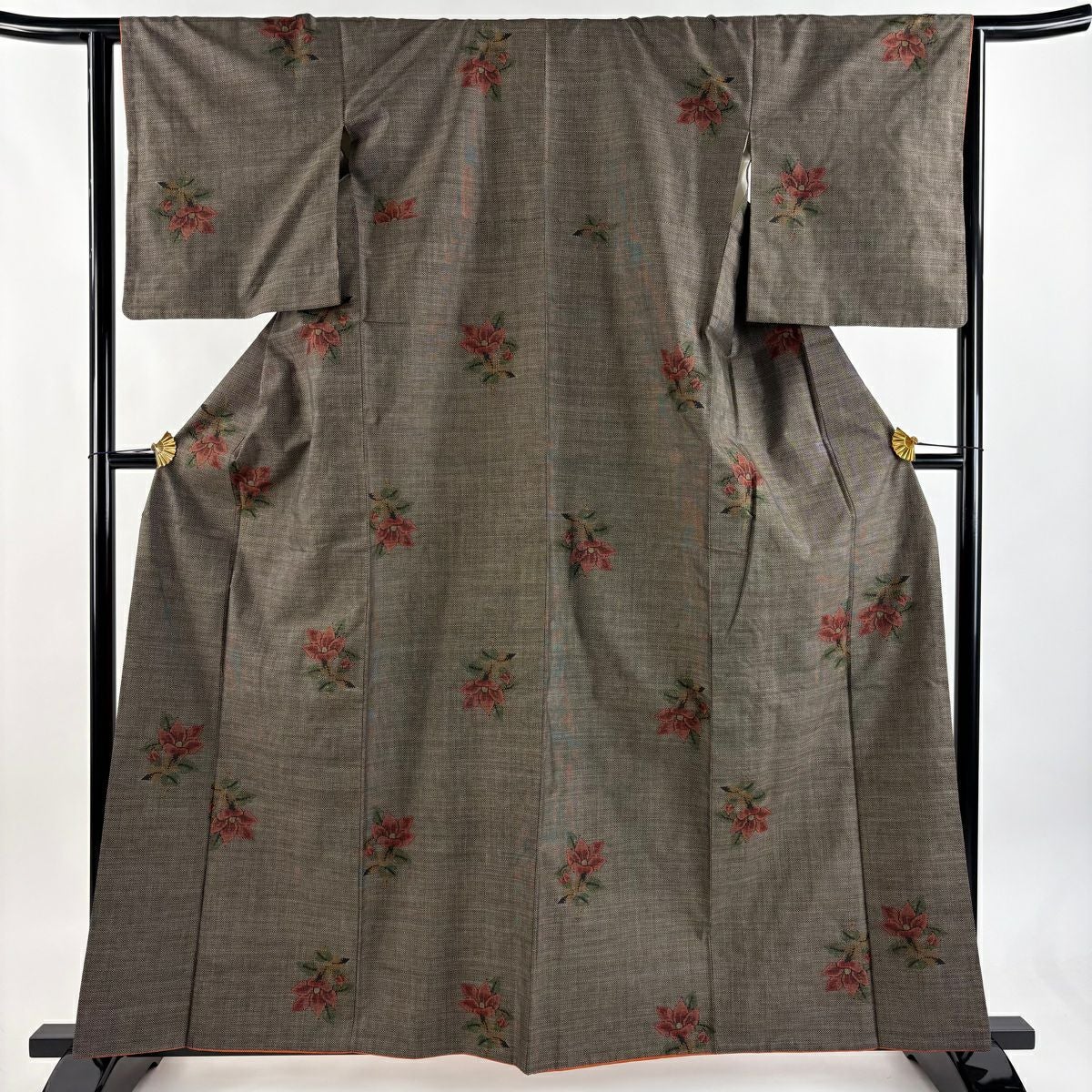 【在庫一掃】 紬 身丈161cm 裄丈65cm M 袷 草花 焦茶色 正絹 秀品