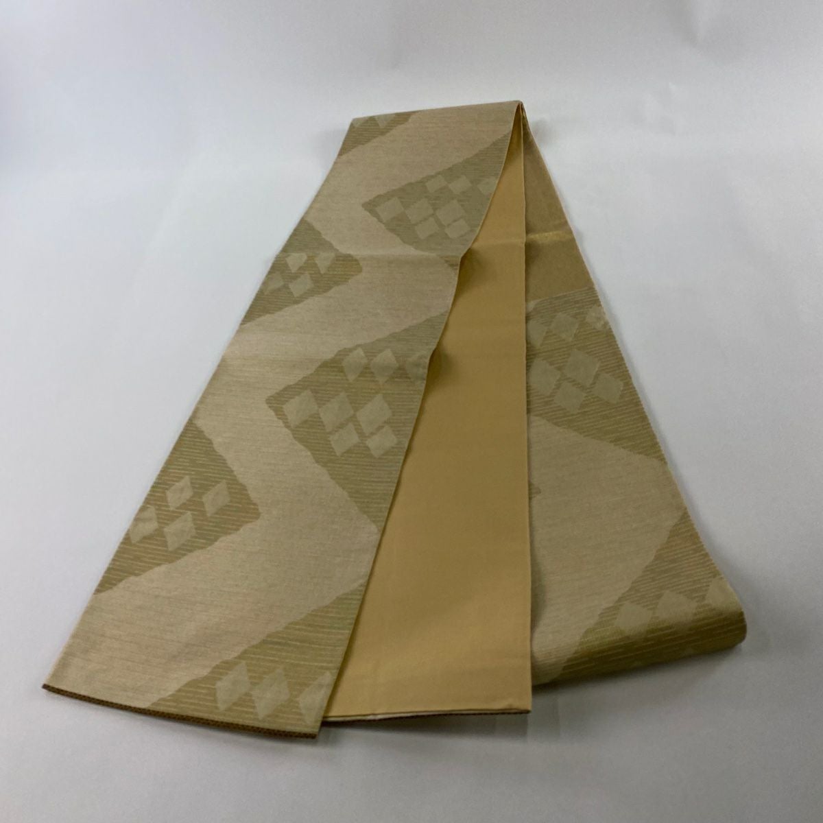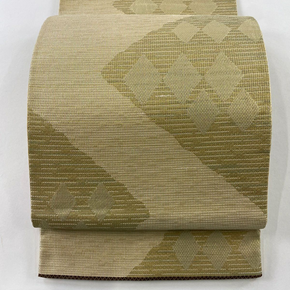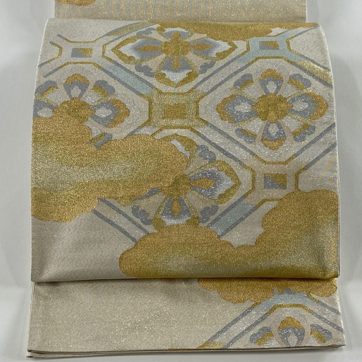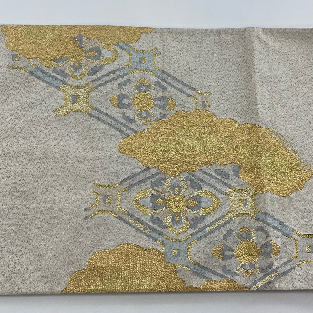 【在庫一掃】 袋帯 秀品 幾何学模様 箔 金銀糸 ベージュ お太鼓柄 正絹
