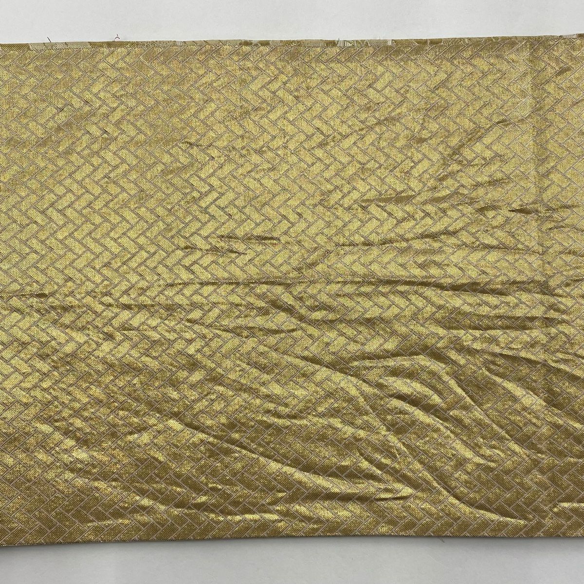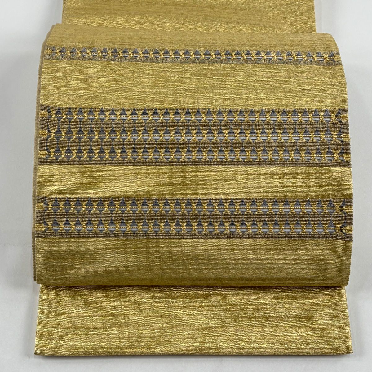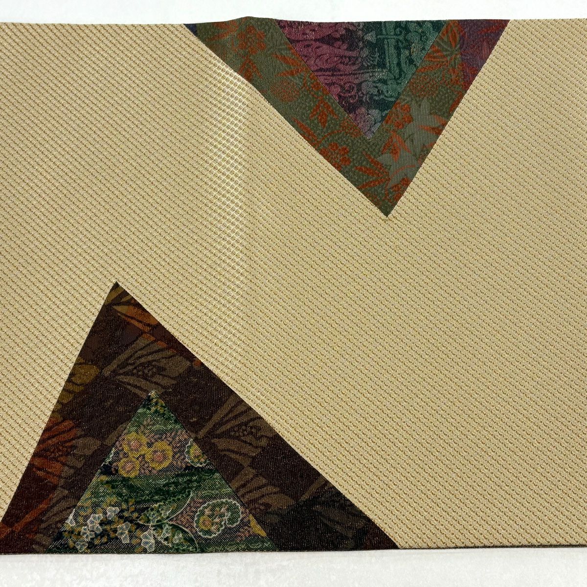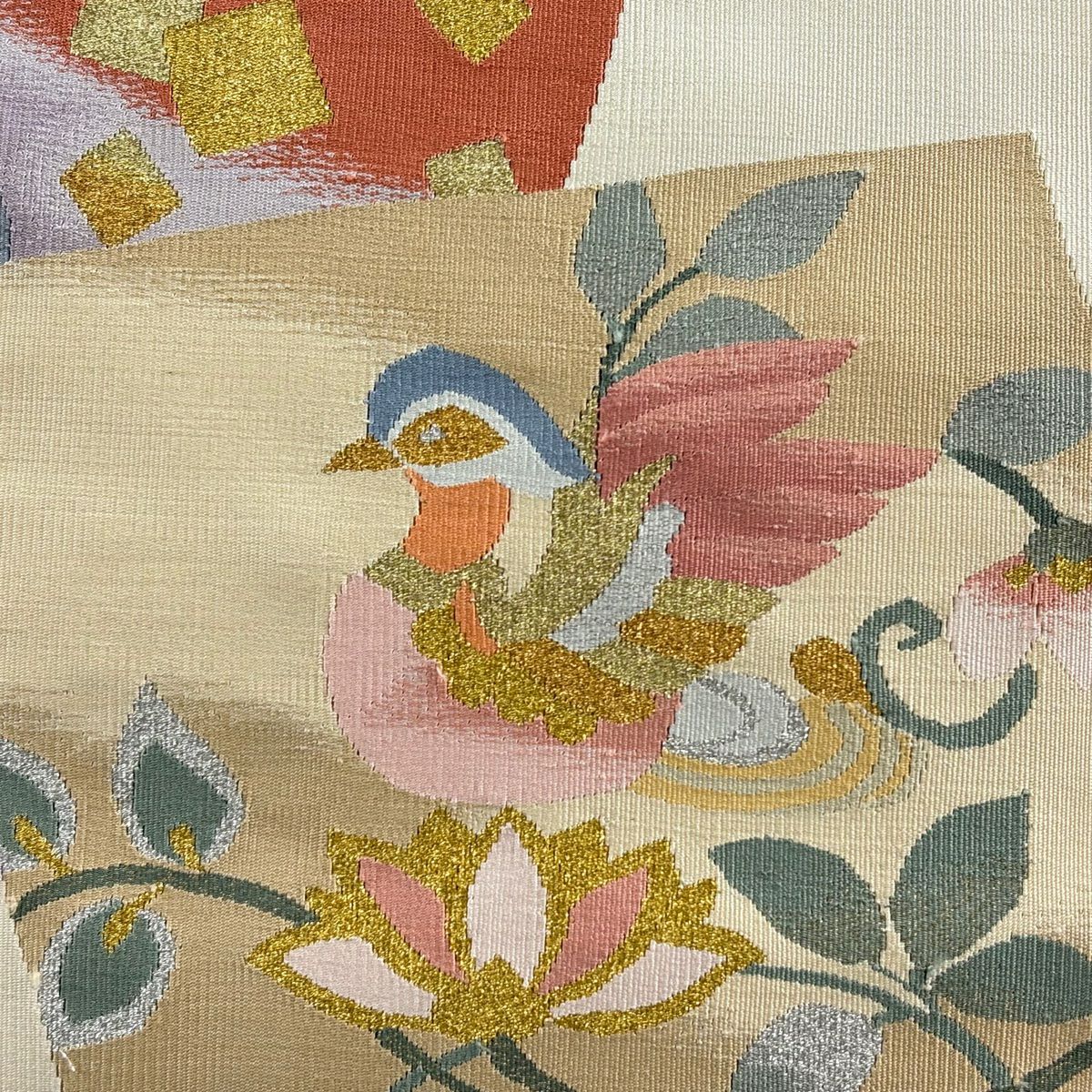 【在庫一掃】 袋帯 秀品 幾何学模様 箔 金銀糸 ベージュ お太鼓柄 正絹