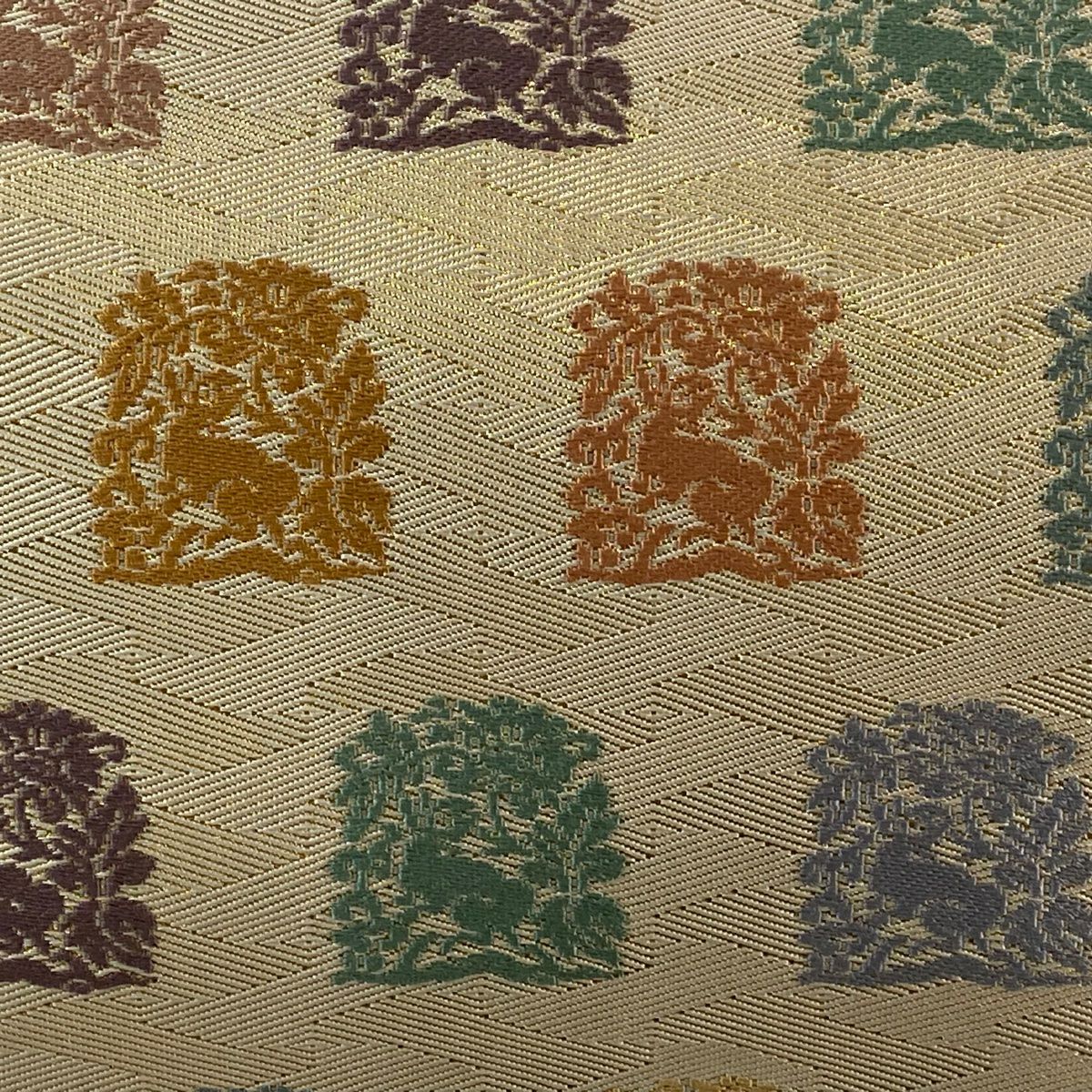 【在庫一掃】 袋帯 秀品 花うさぎ 菱 刺繍 箔 ベージュ お太鼓柄 正絹