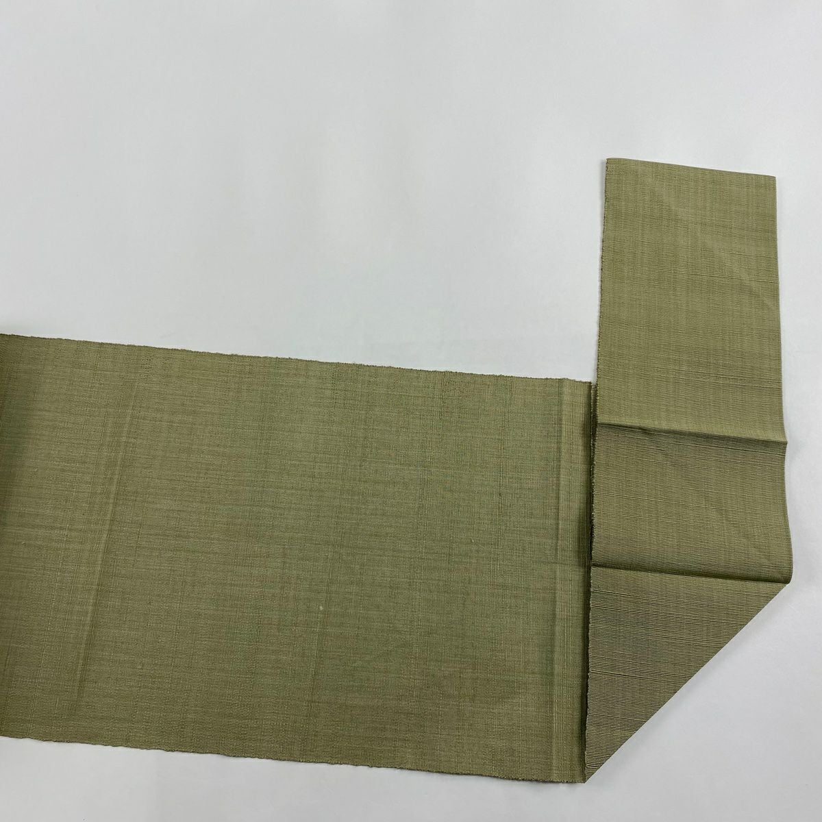 【在庫一掃】 名古屋帯 秀品 八寸名古屋帯 松葉仕立て 紬地 幾何学模様 灰緑 正絹