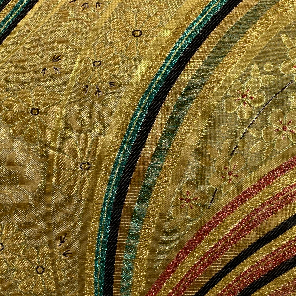 【在庫一掃】 【美品】 袋帯 秀品 幾何学模様 縞 金糸 箔 金色 お太鼓柄 正絹