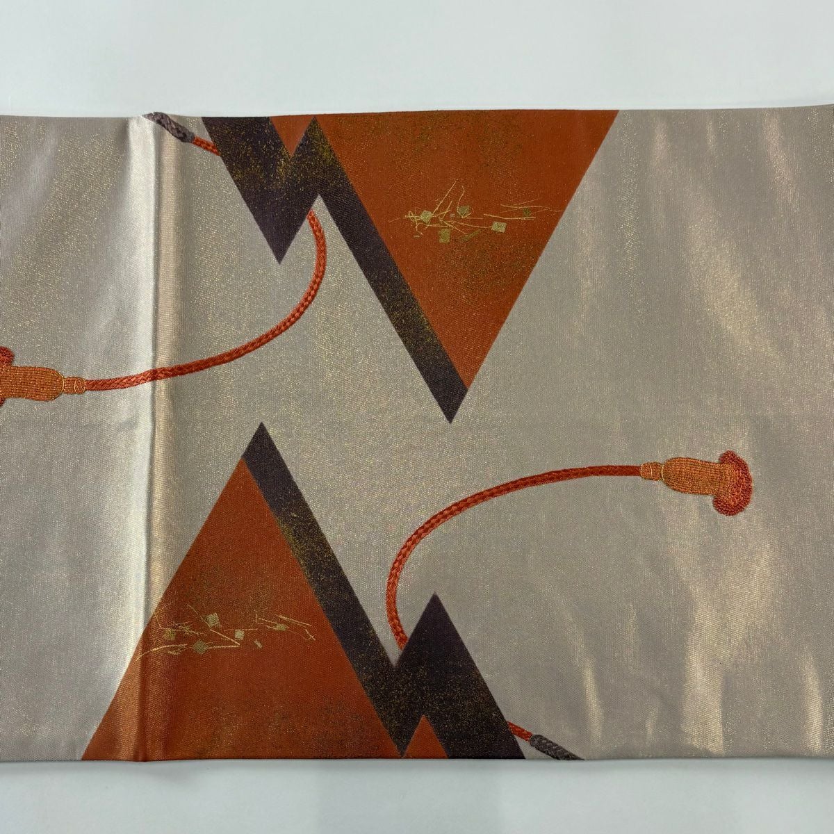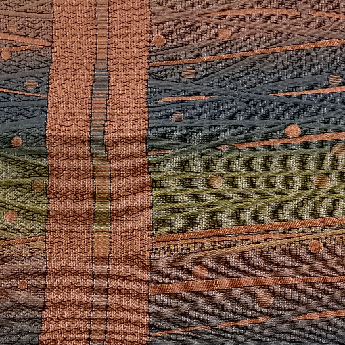 【在庫一掃】 【美品】 袋帯 秀品 幾何学 箔 ピンクベージュ 六通 正絹