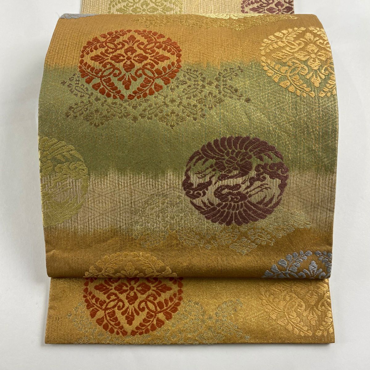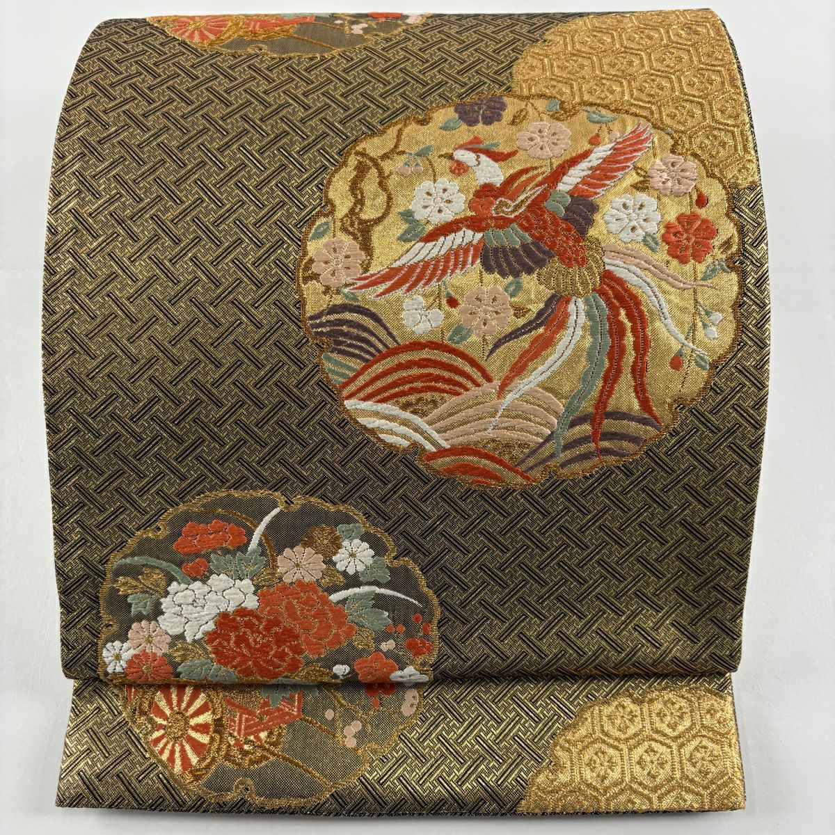【在庫一掃】 【美品】 袋帯 秀品 鈴乃屋 雪輪 鳳凰 金糸 箔 金色 六通 正絹