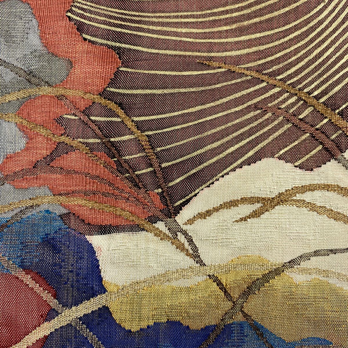 【在庫一掃】 【美品】 袋帯 秀品 すすき 波 金銀糸 金彩 朱色 お太鼓柄 正絹