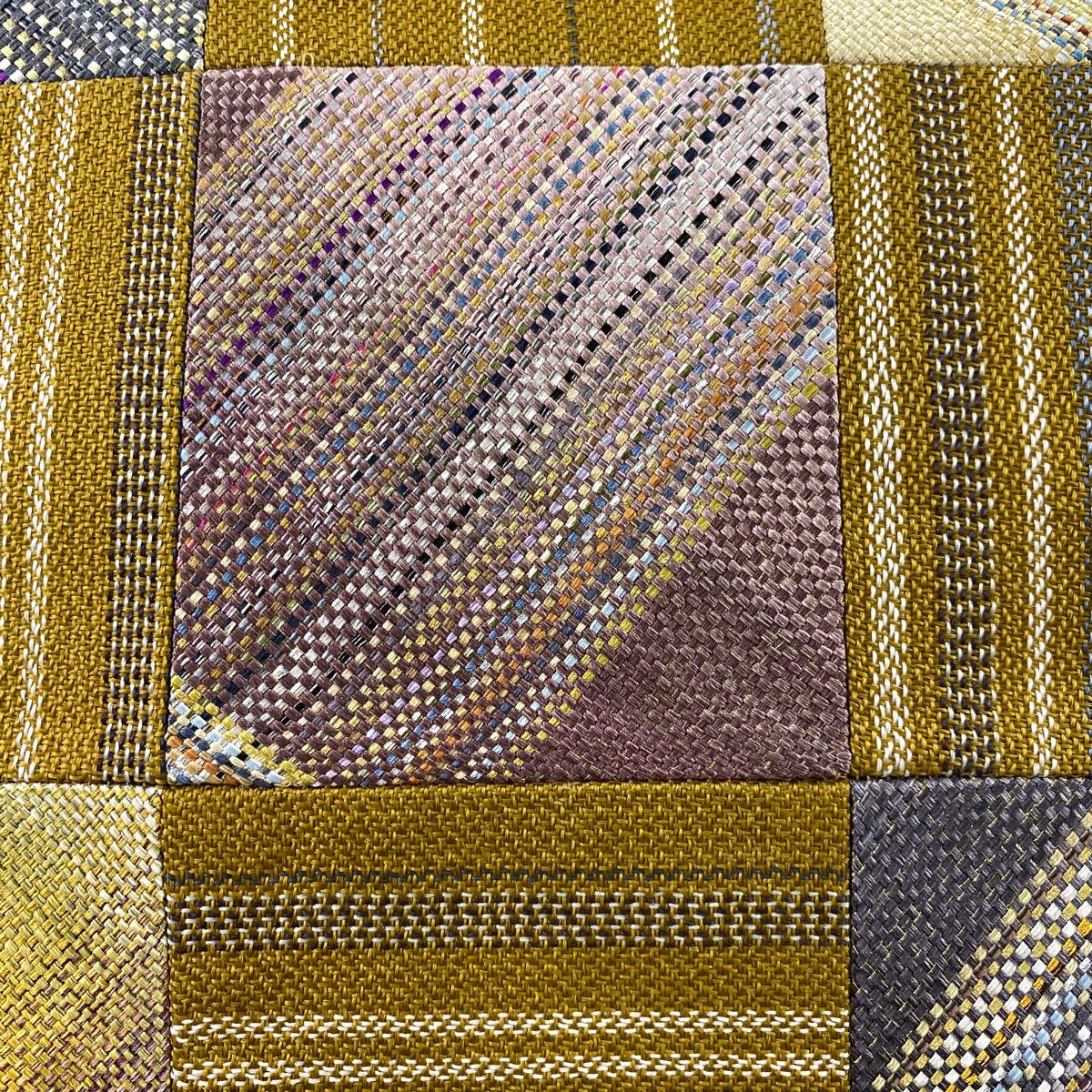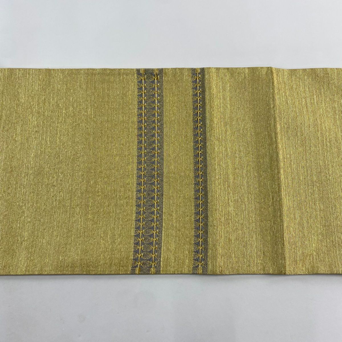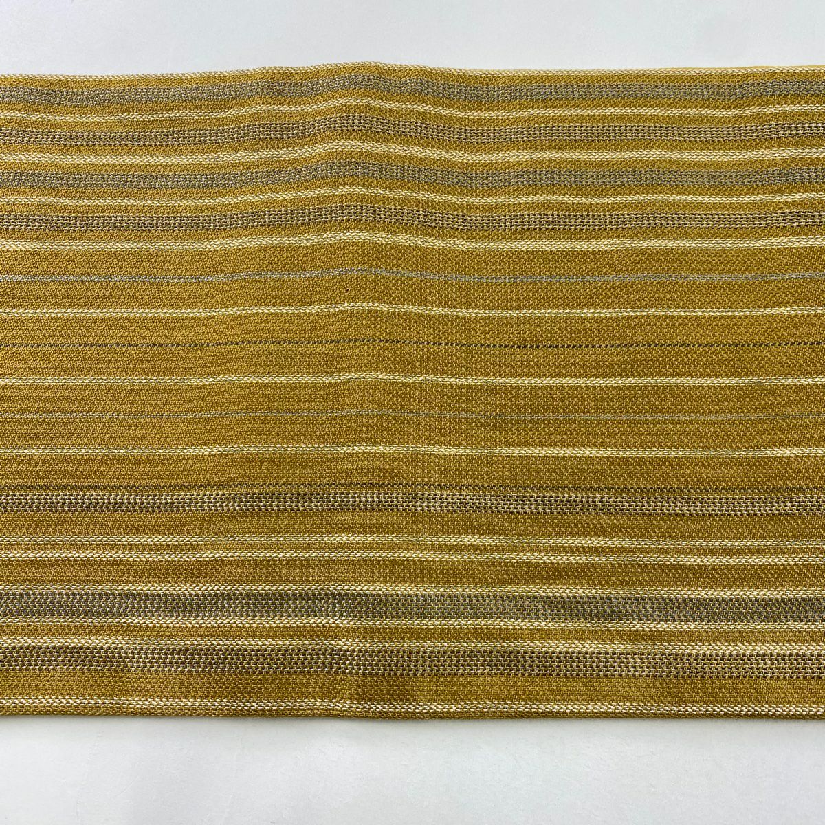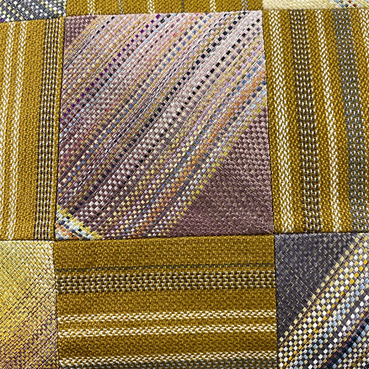 【在庫一掃】 【美品】 袋帯 秀品 市松市 縞 金銀糸 山吹茶色 お太鼓柄 正絹