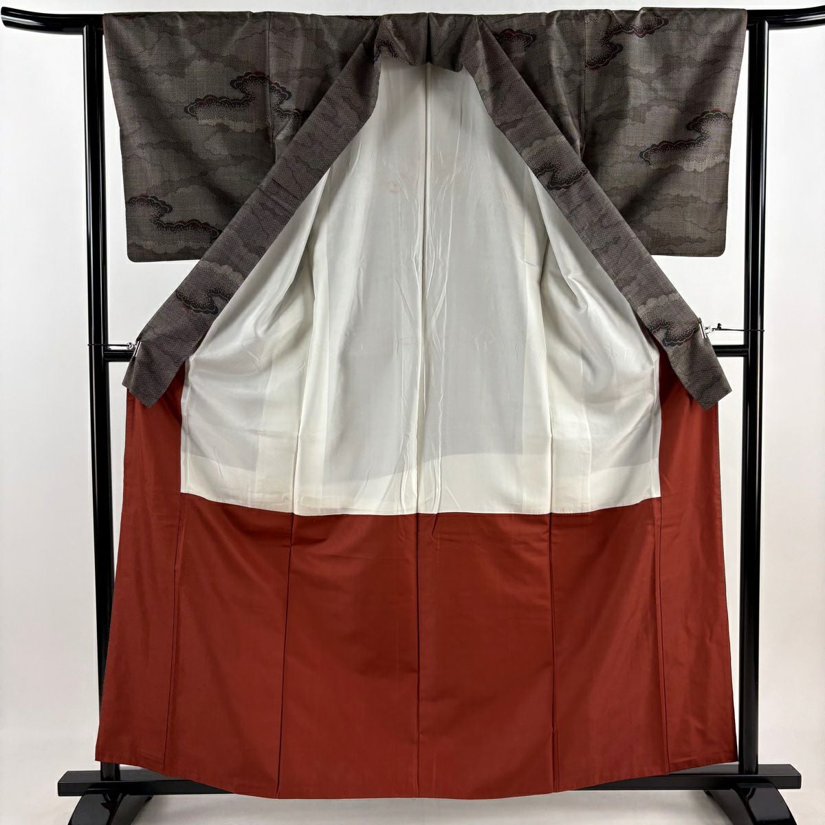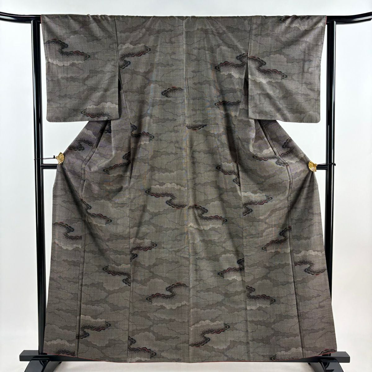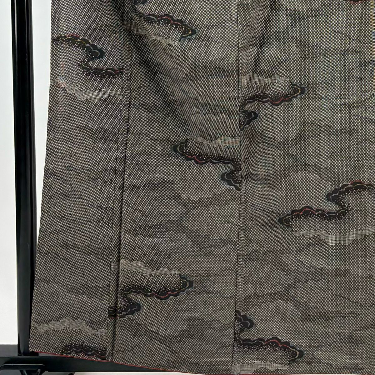 【在庫一掃】 紬 身丈160cm 裄丈62cm S 袷 雲文 焦茶色 正絹 秀品