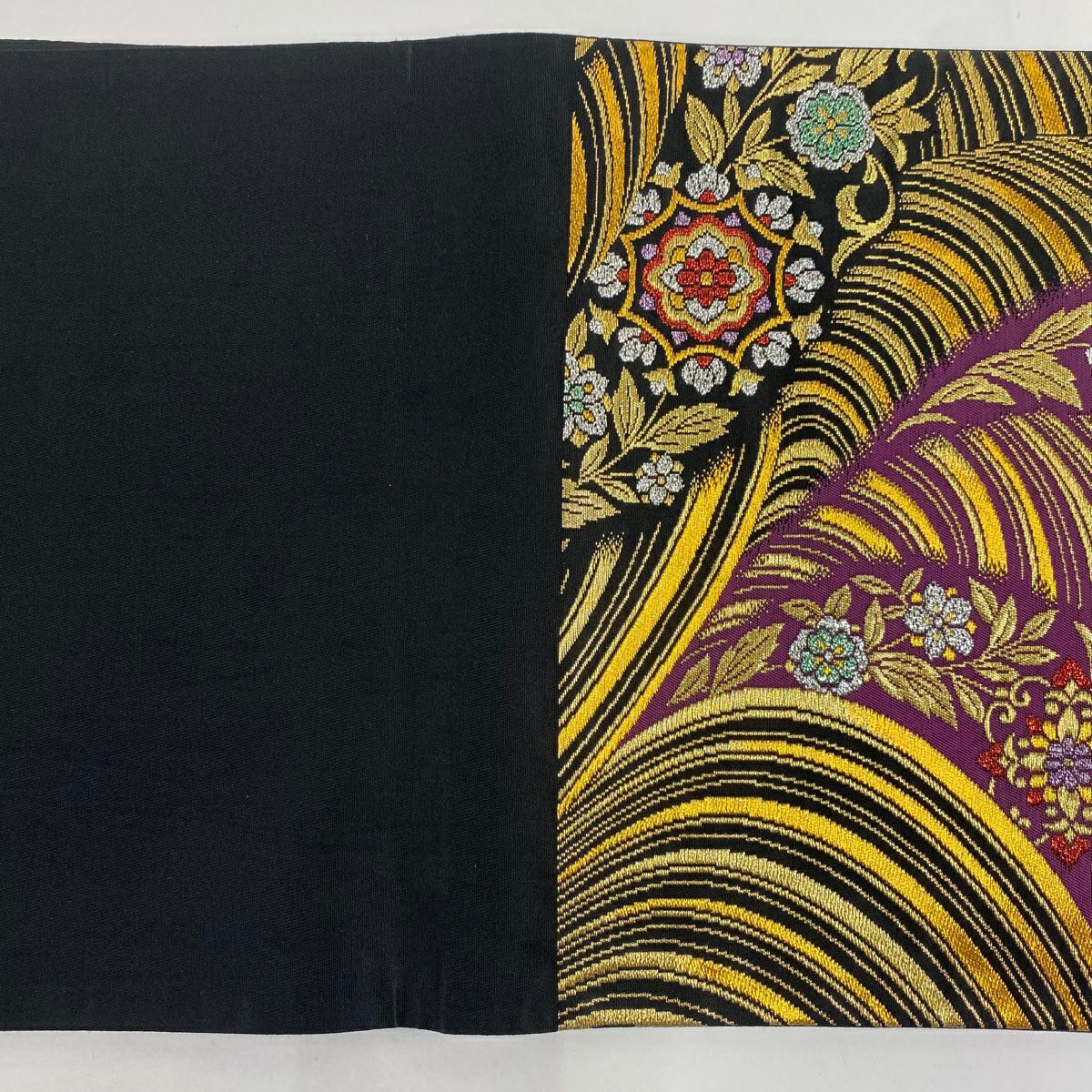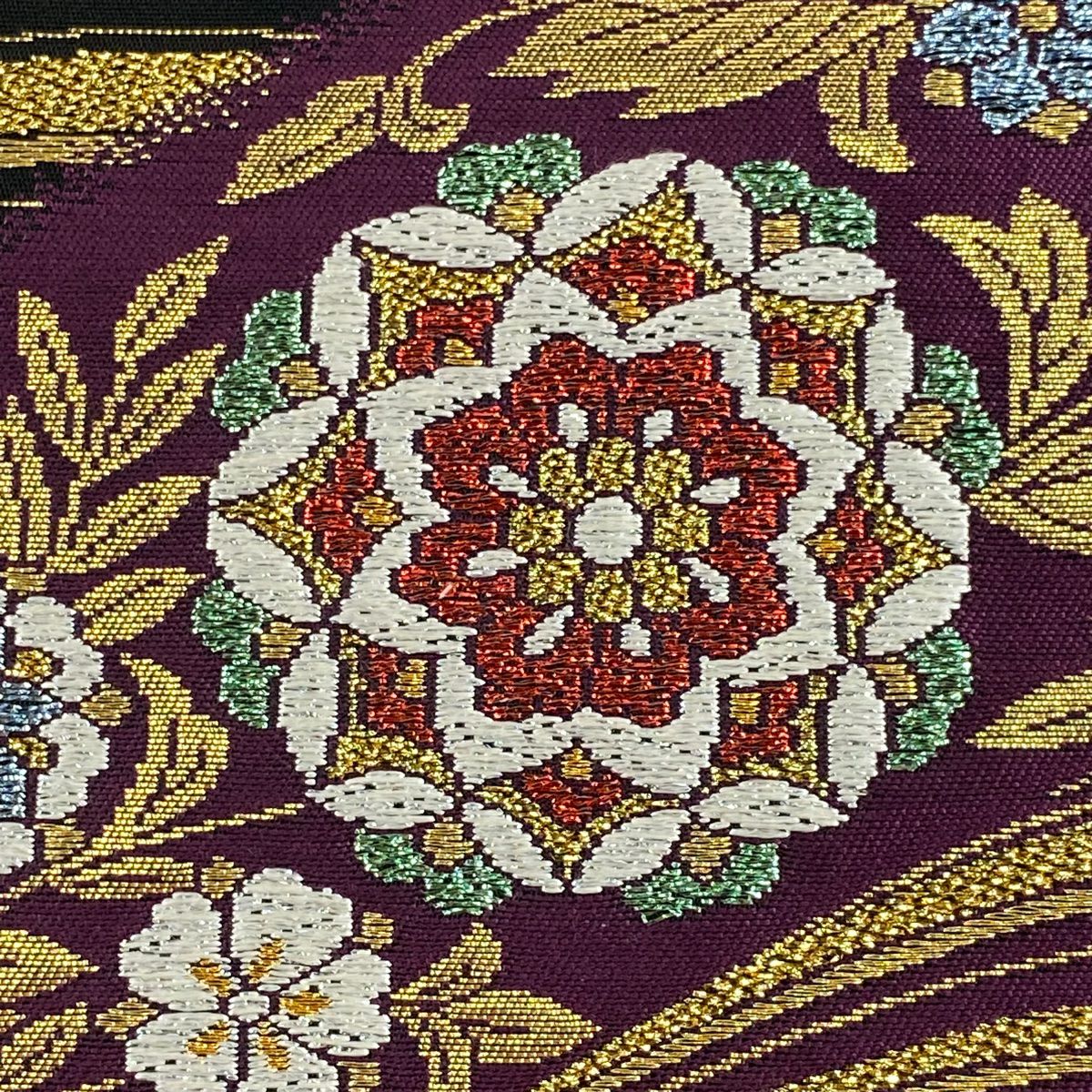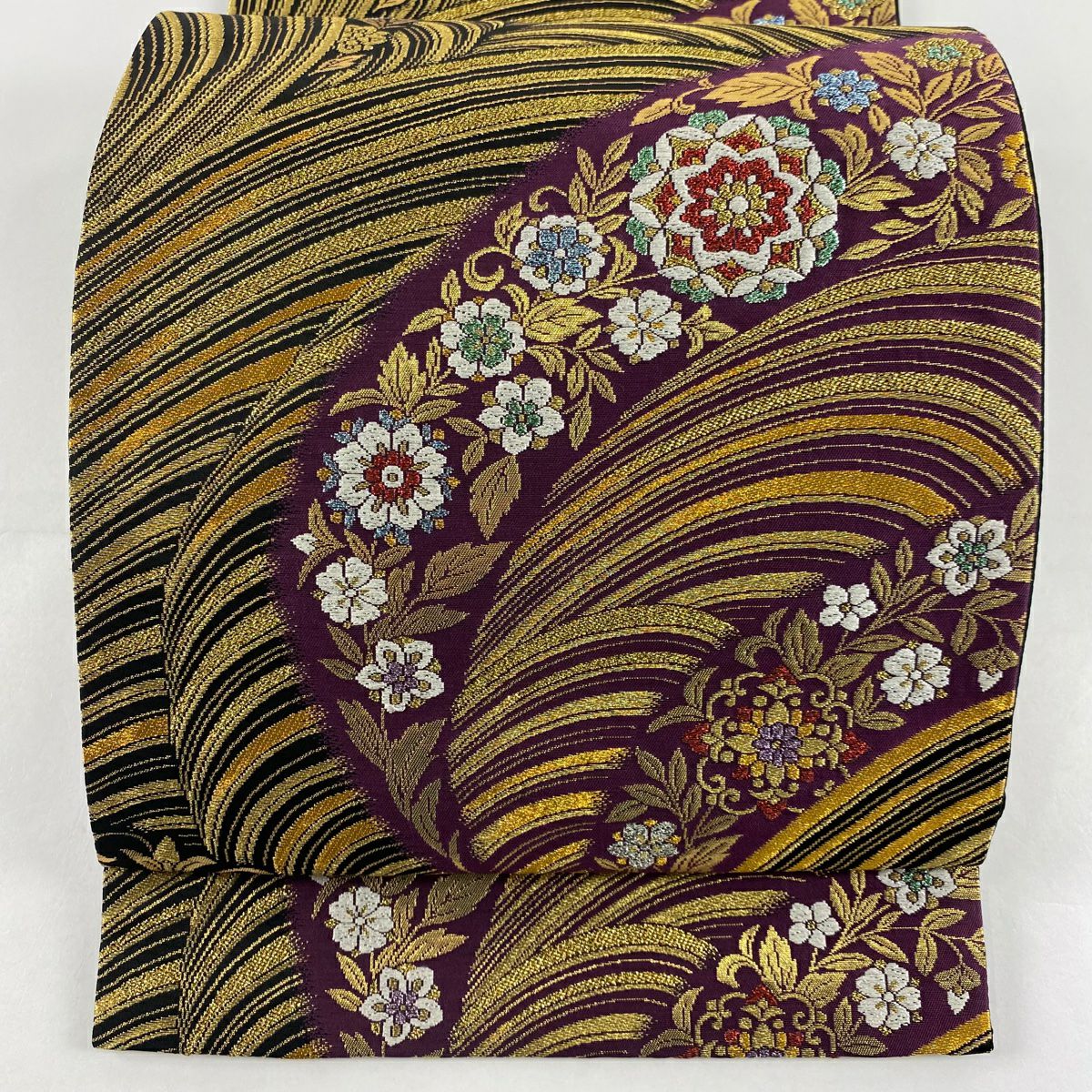 【在庫一掃】 【美品】 袋帯 秀品 鈴乃屋 華文 草花 金糸 箔 紫 六通 正絹