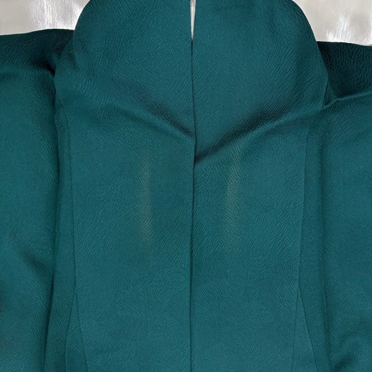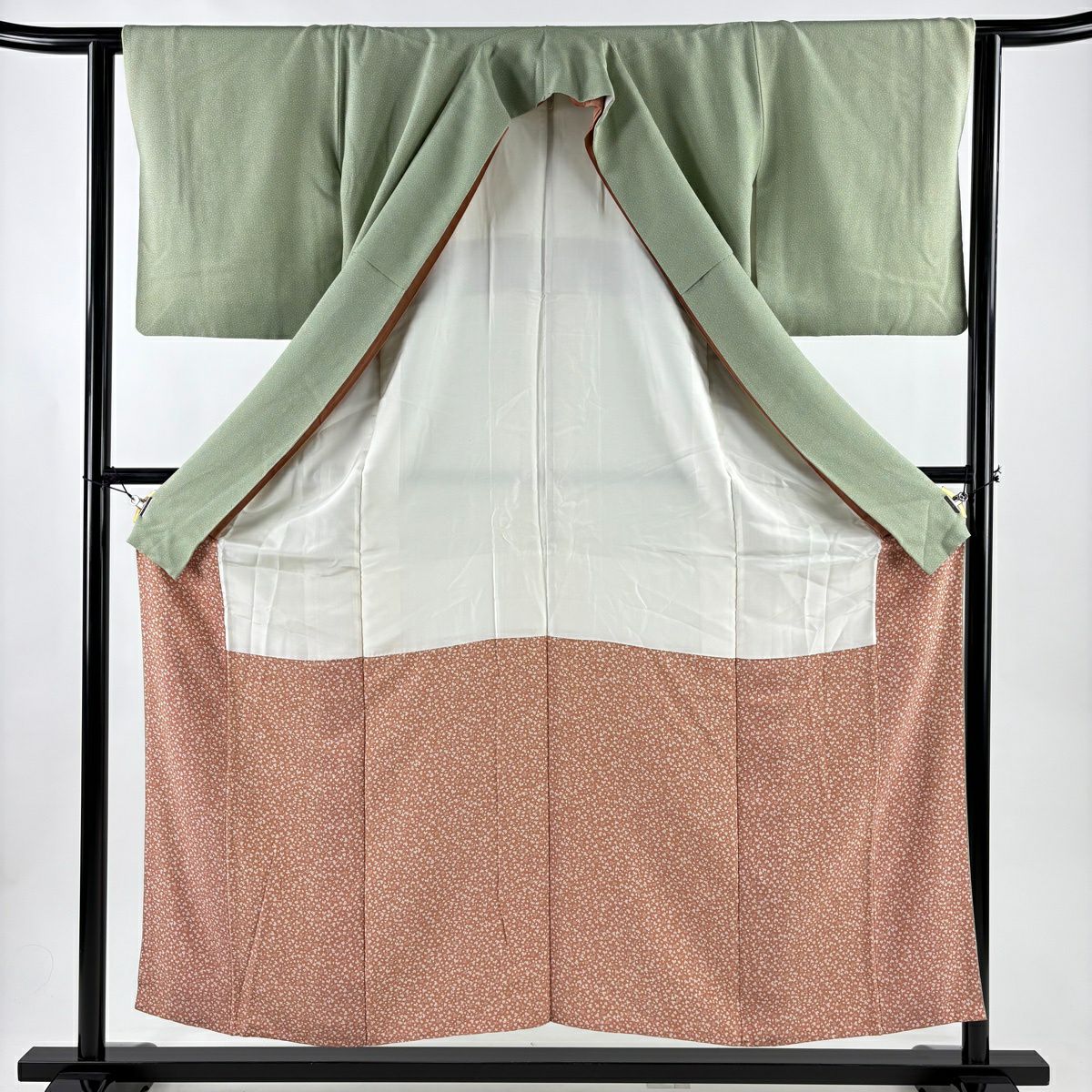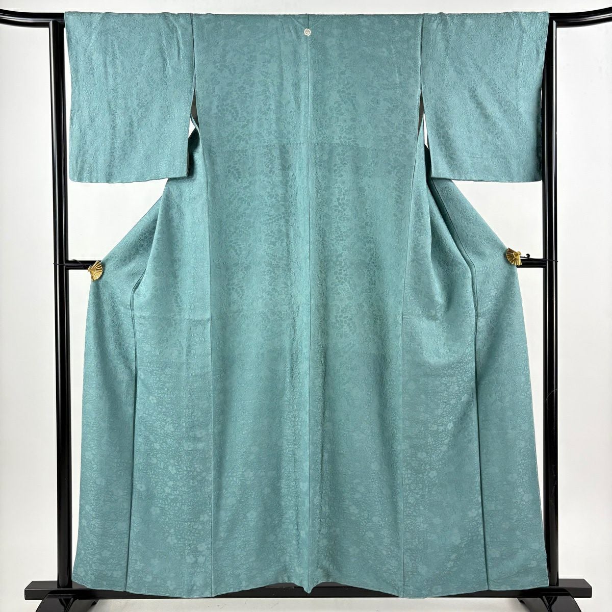 色無地 身丈157cm 裄丈64.5cm M 袷 地紋 薄青緑 正絹 秀品 一つ紋