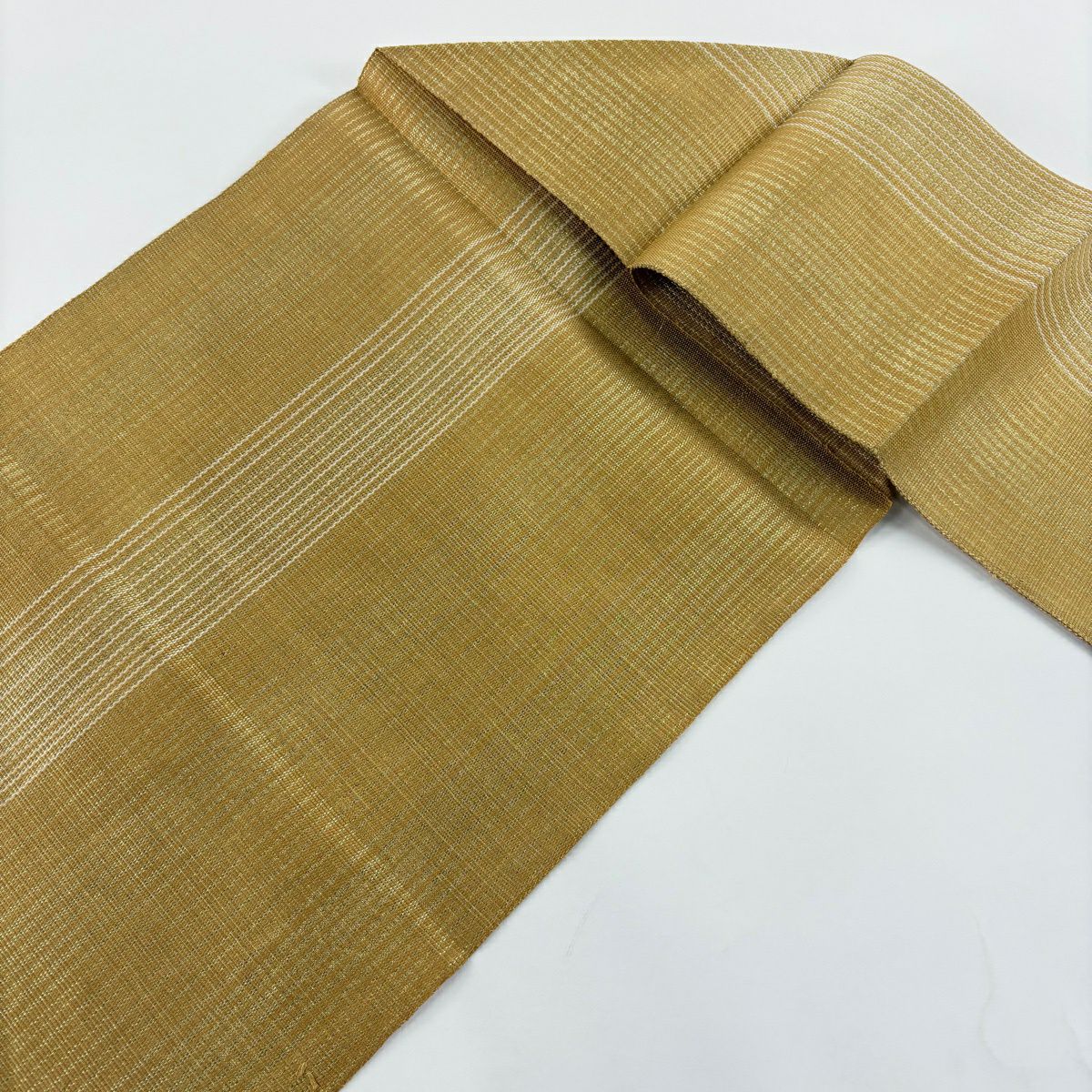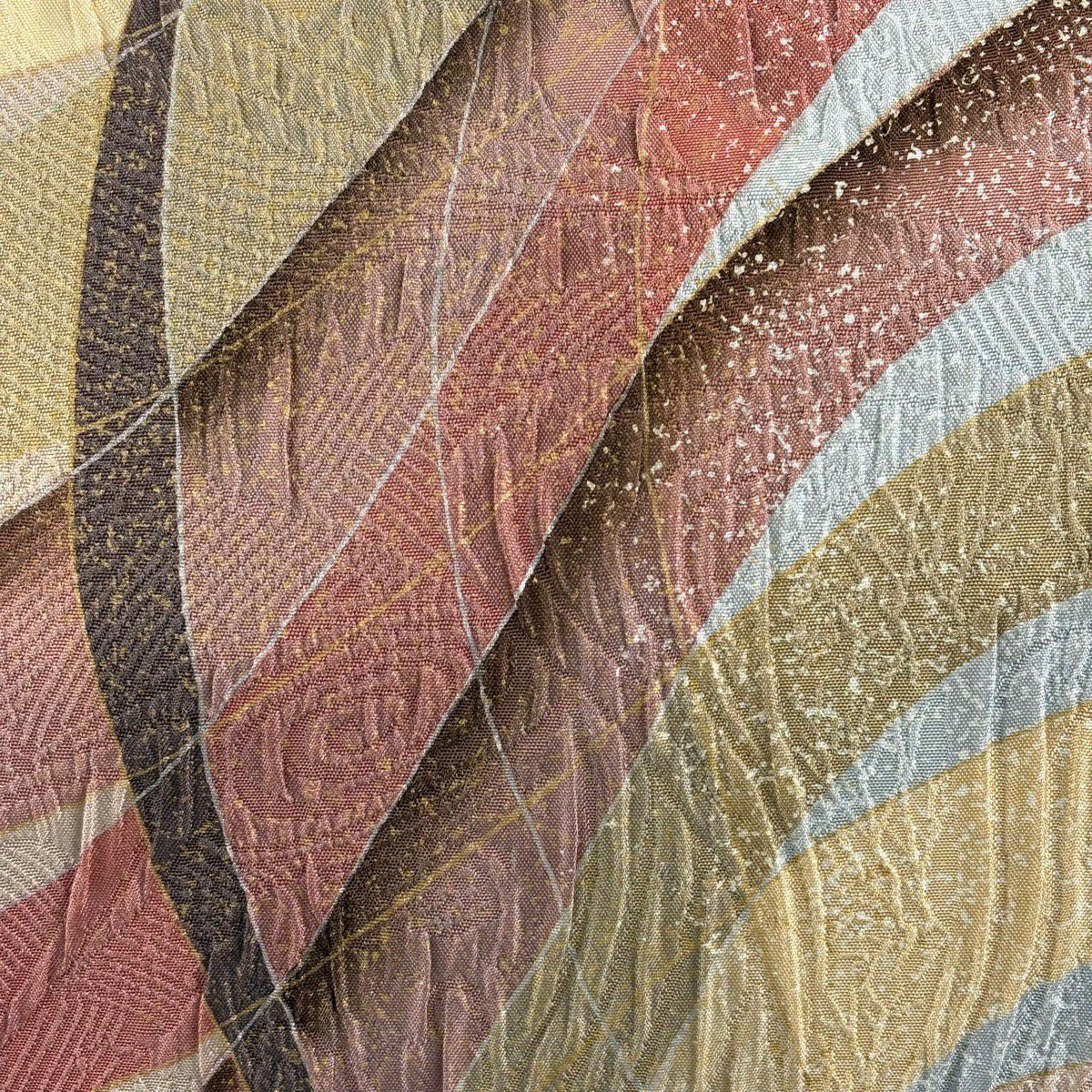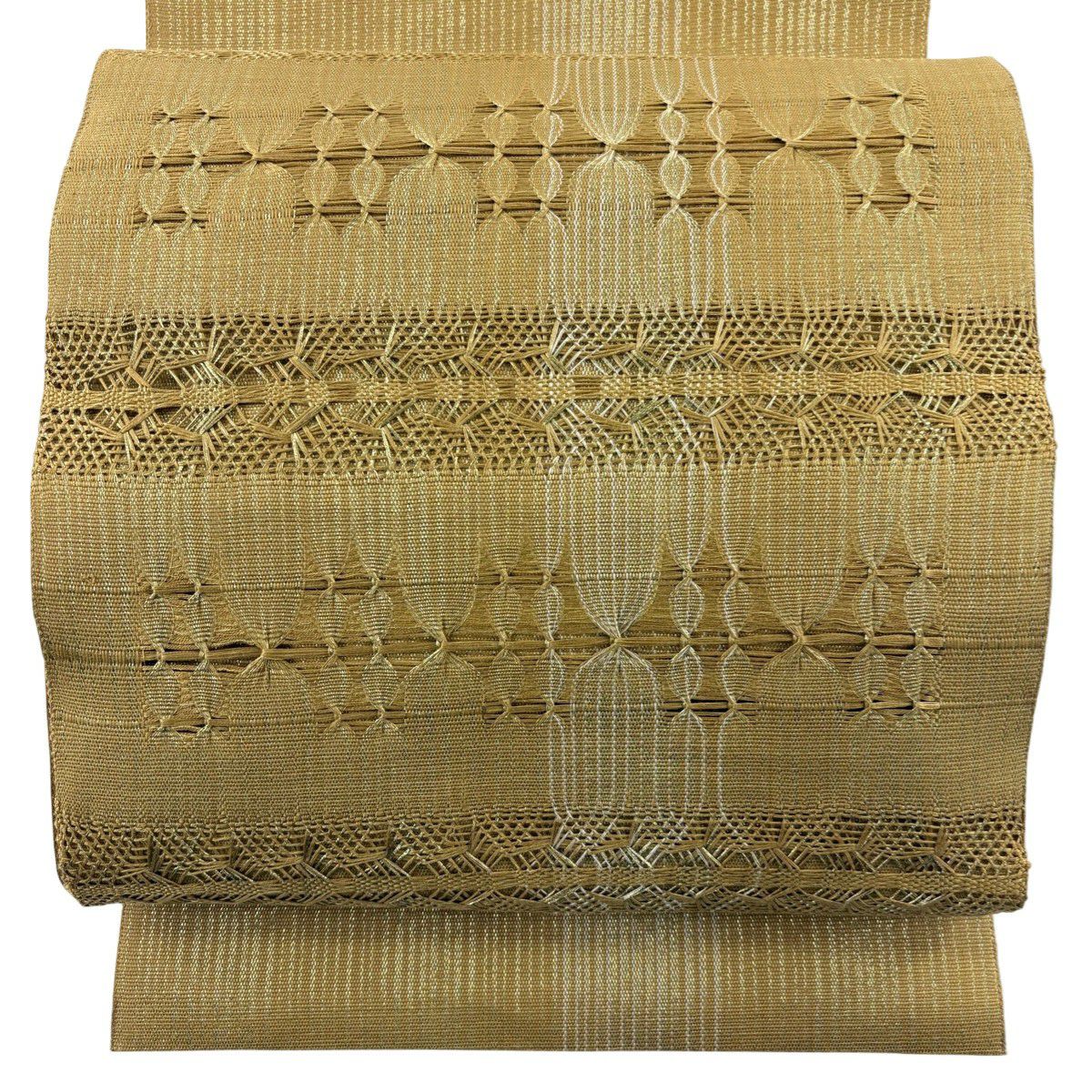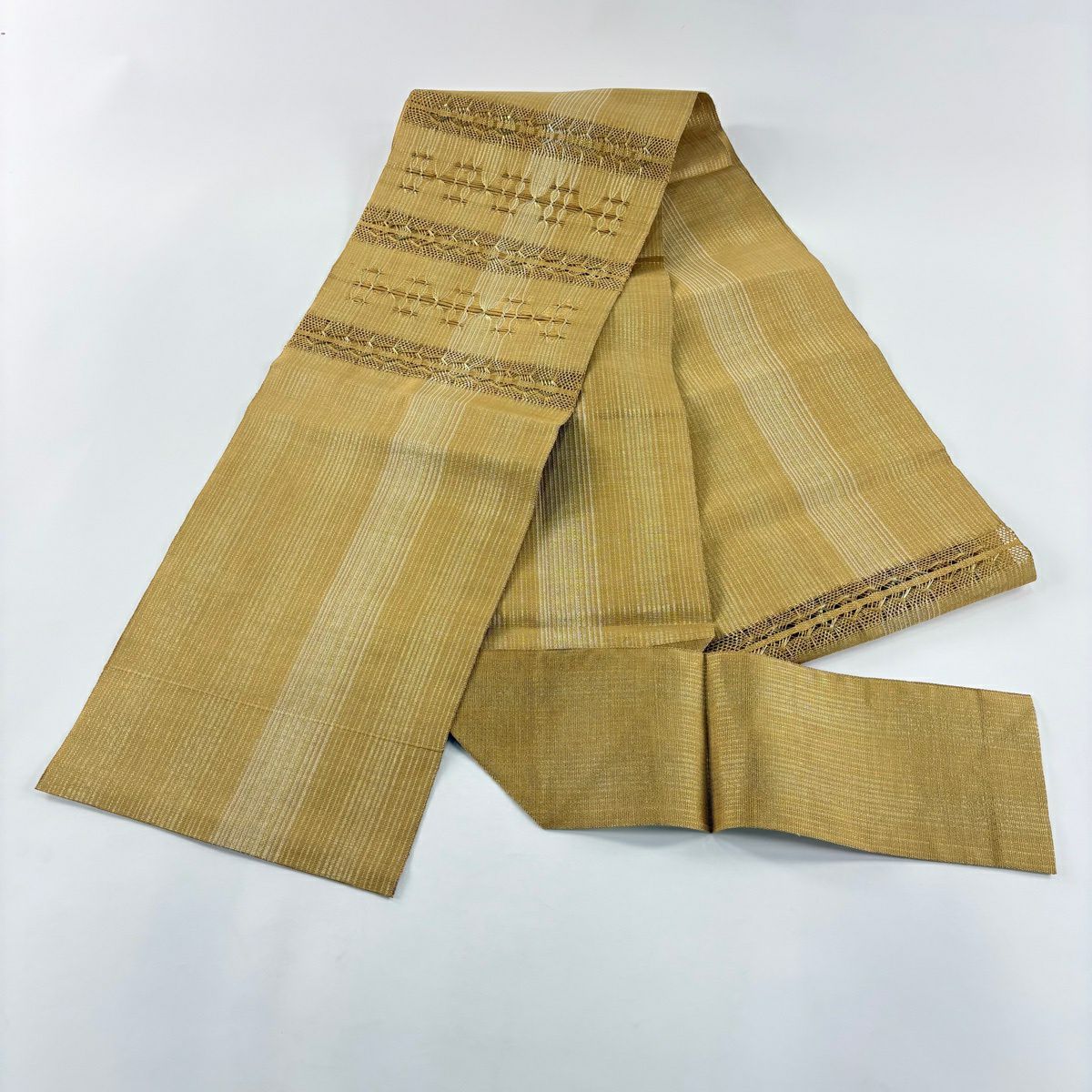 【美品】 袋帯 秀品 落款あり 鵬翔 よろけ縞 金銀彩 ベージュ 全通 正絹