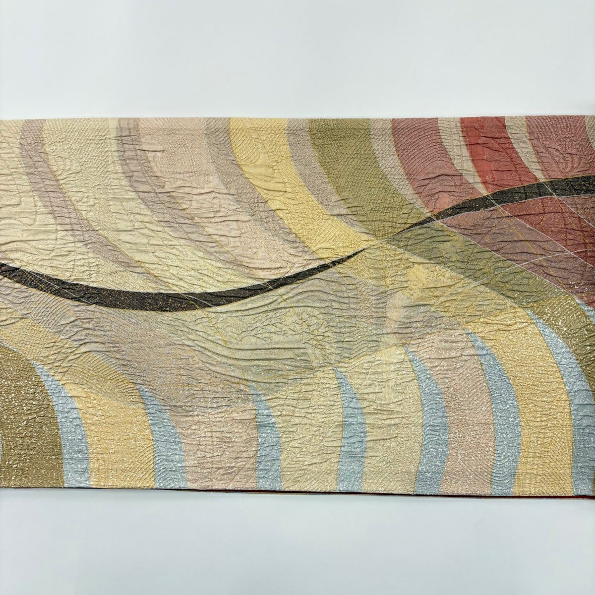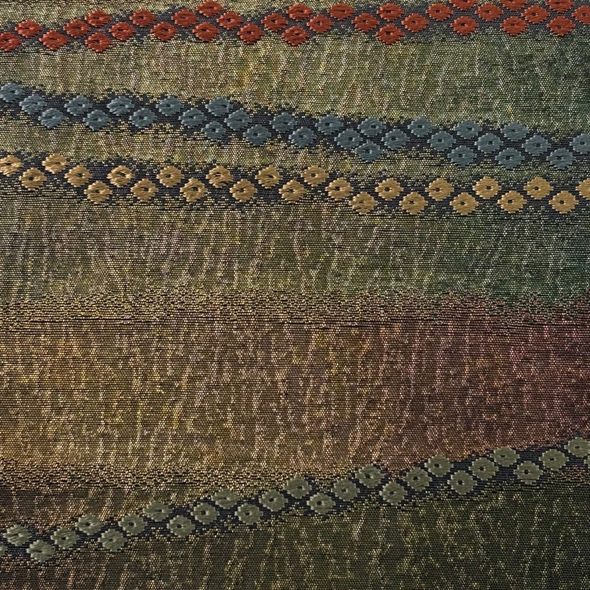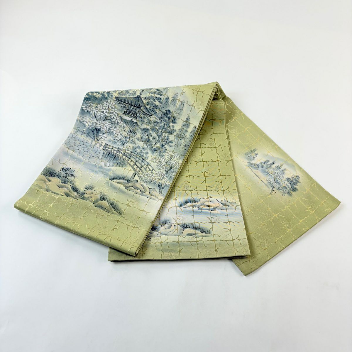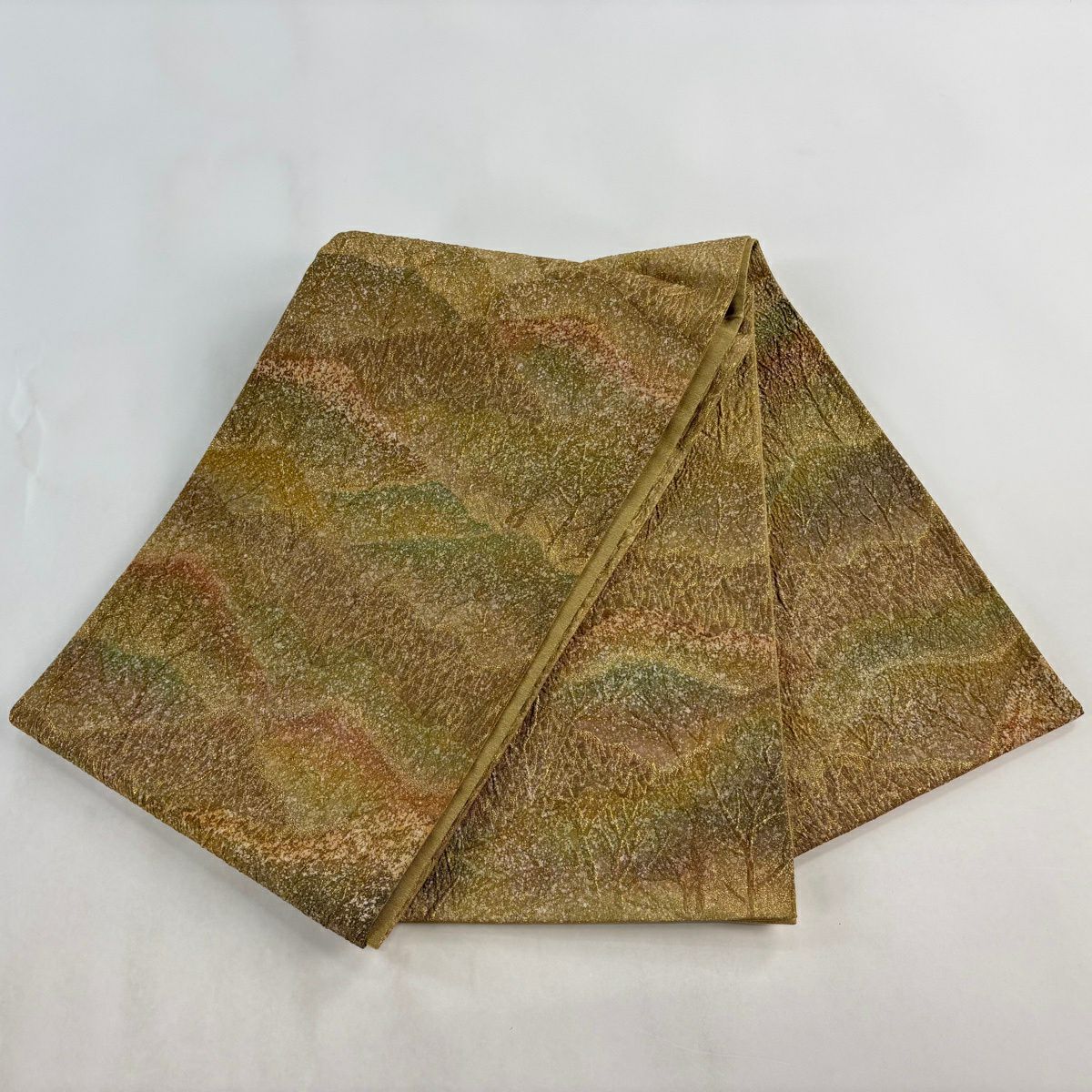 【美品】 袋帯 秀品 落款あり 鵬翔 よろけ縞 金銀彩 ベージュ 全通 正絹