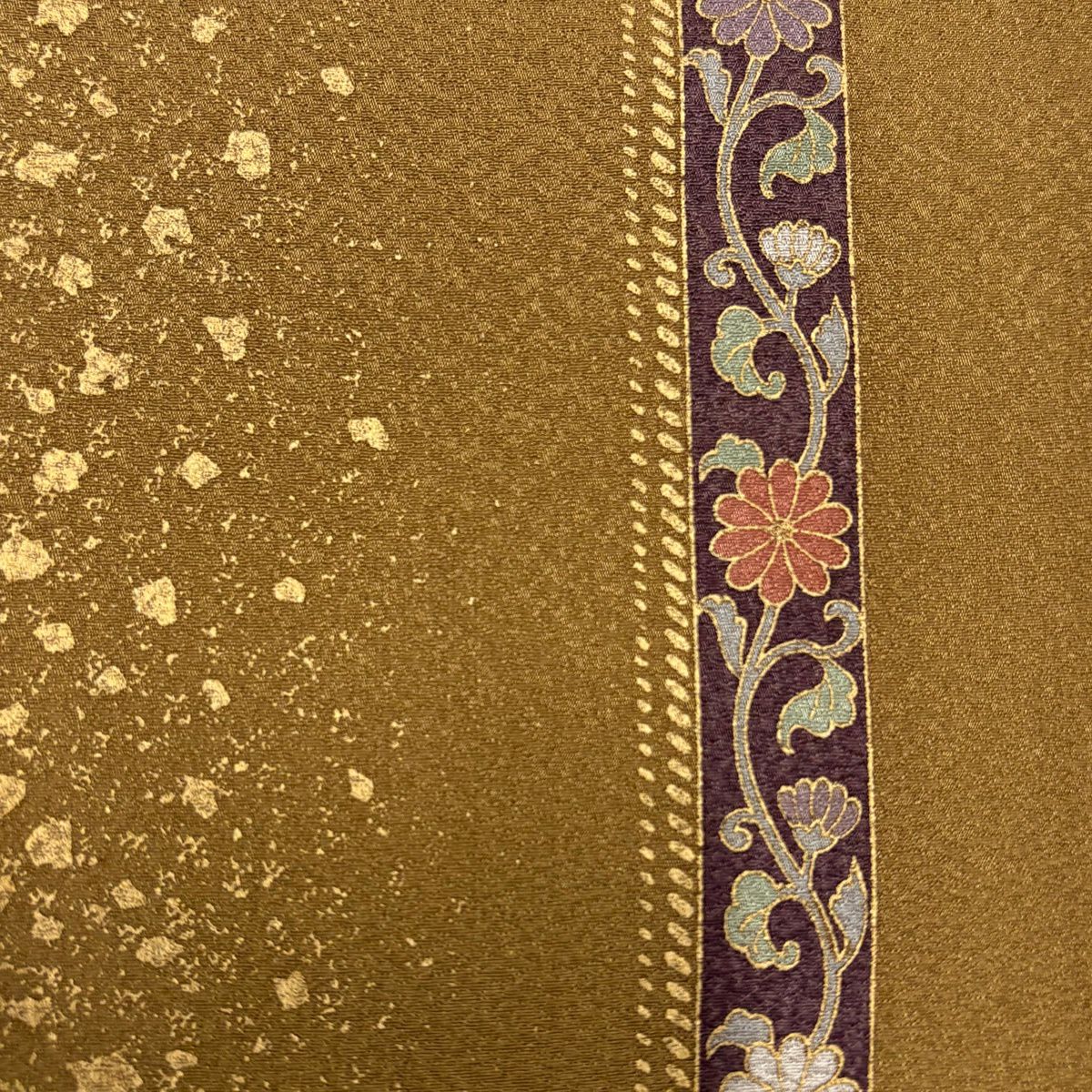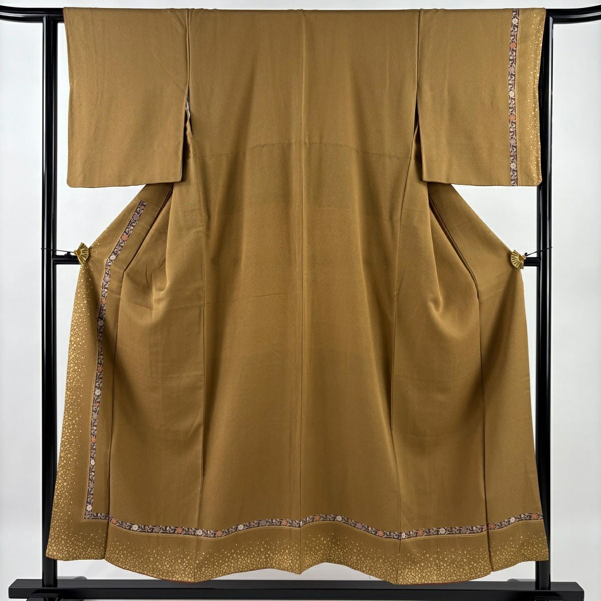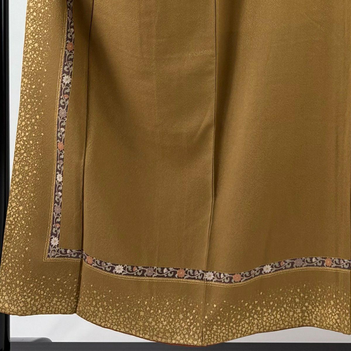 付下げ 身丈153.5cm 裄丈63cm S 袷 花唐草 金彩 黄土色 正絹 秀品