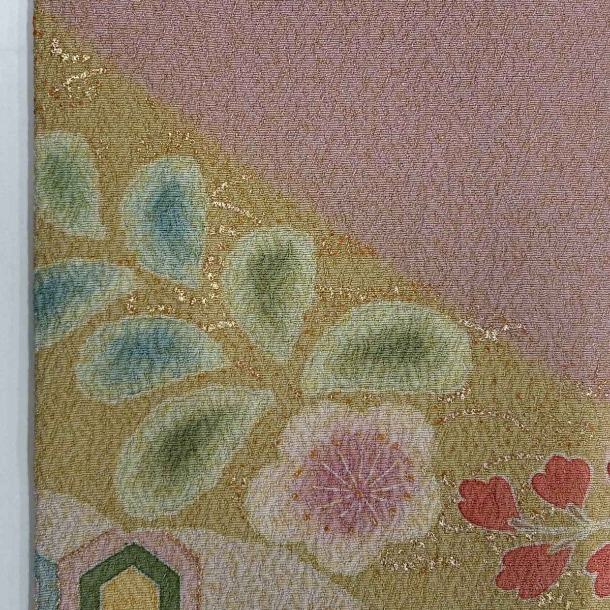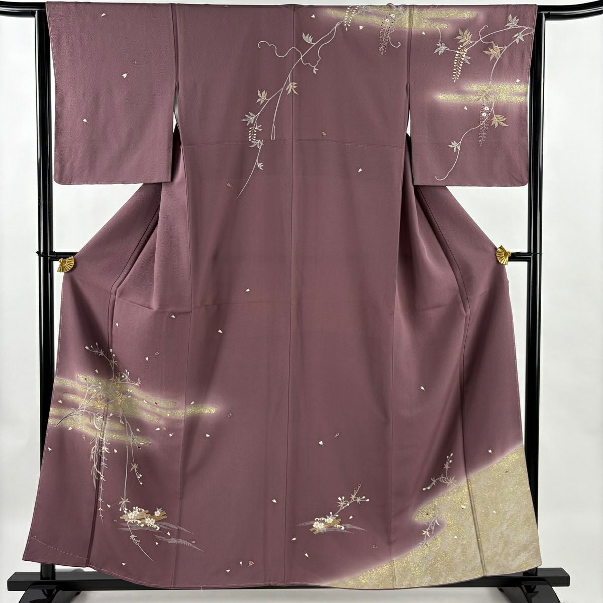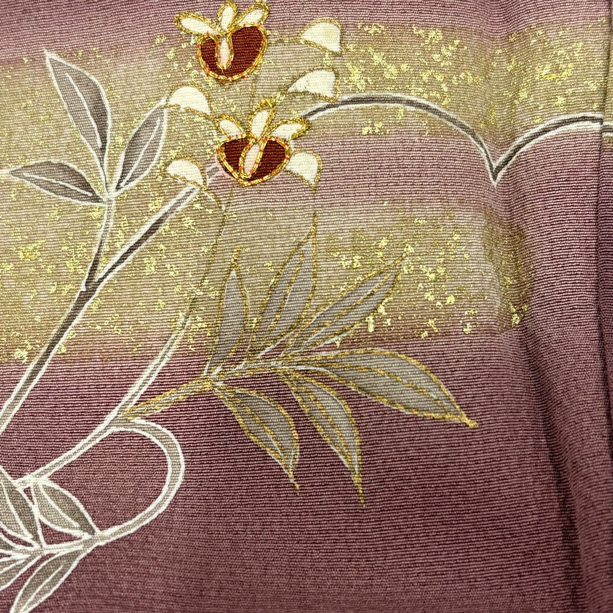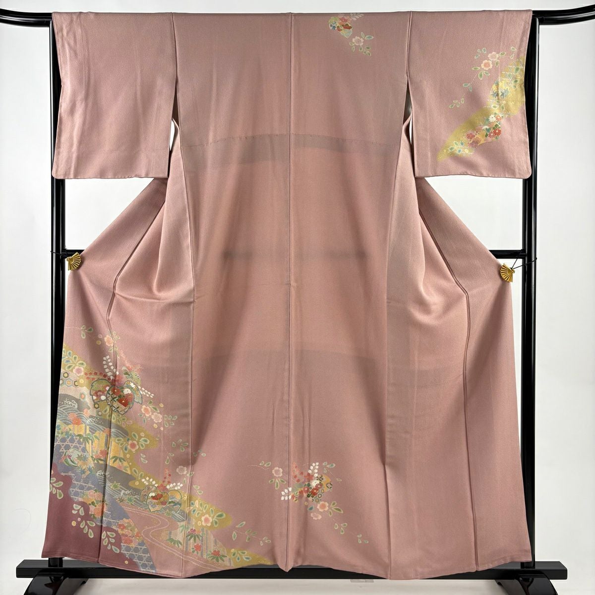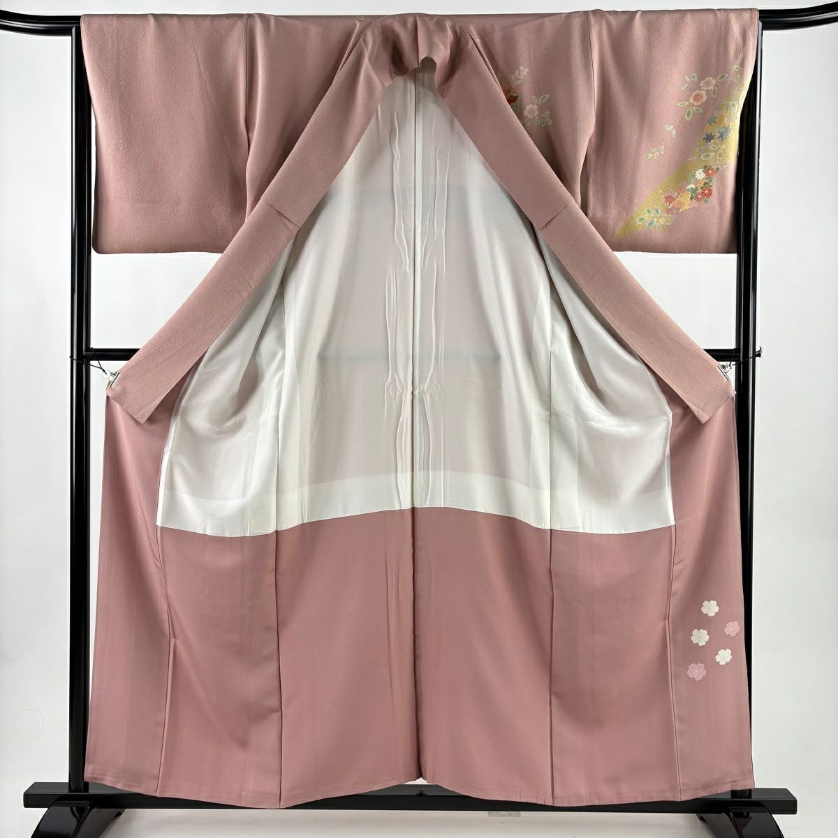 付下げ 身丈158cm 裄丈65cm M 袷 桐 草花 金彩 ピンク 正絹 秀品