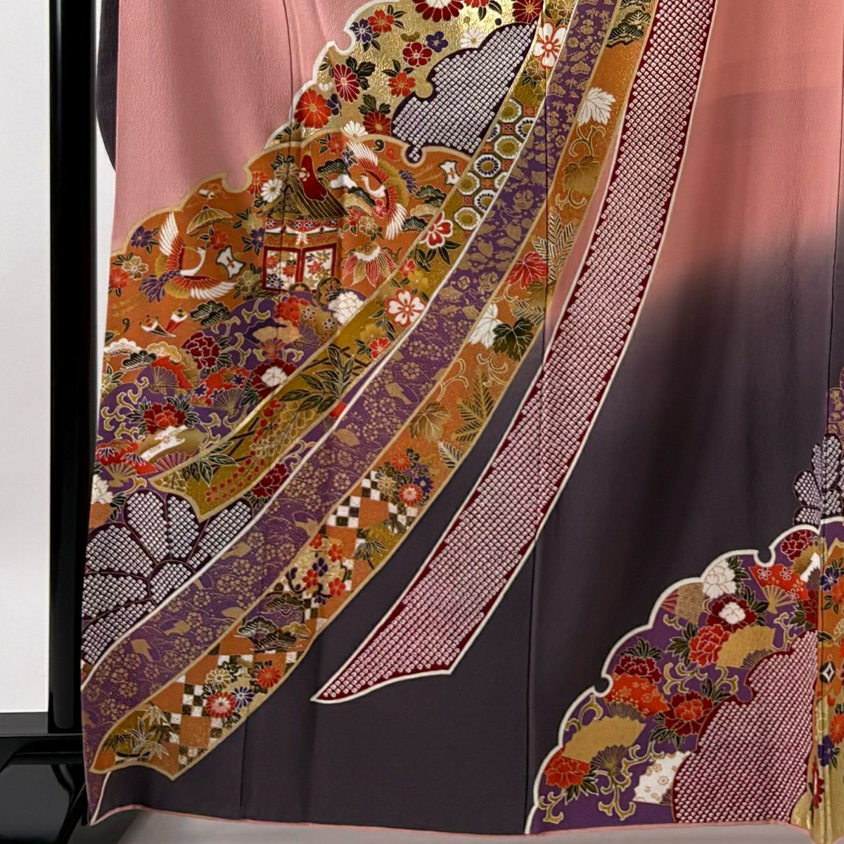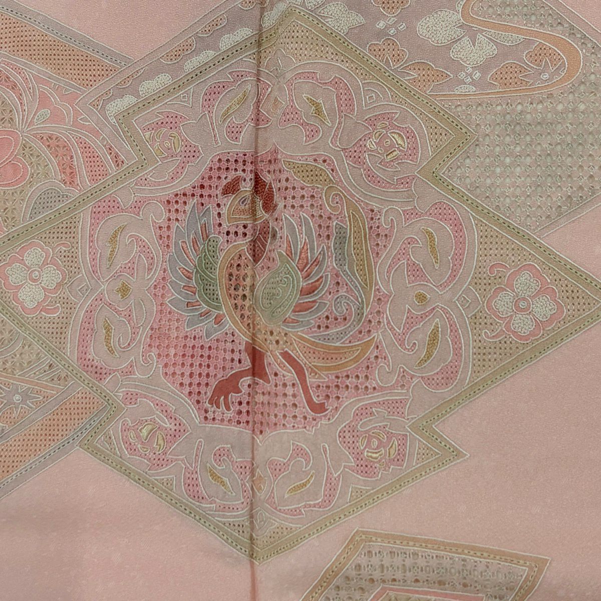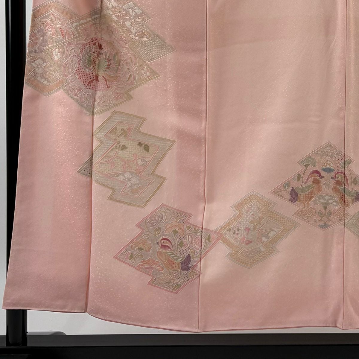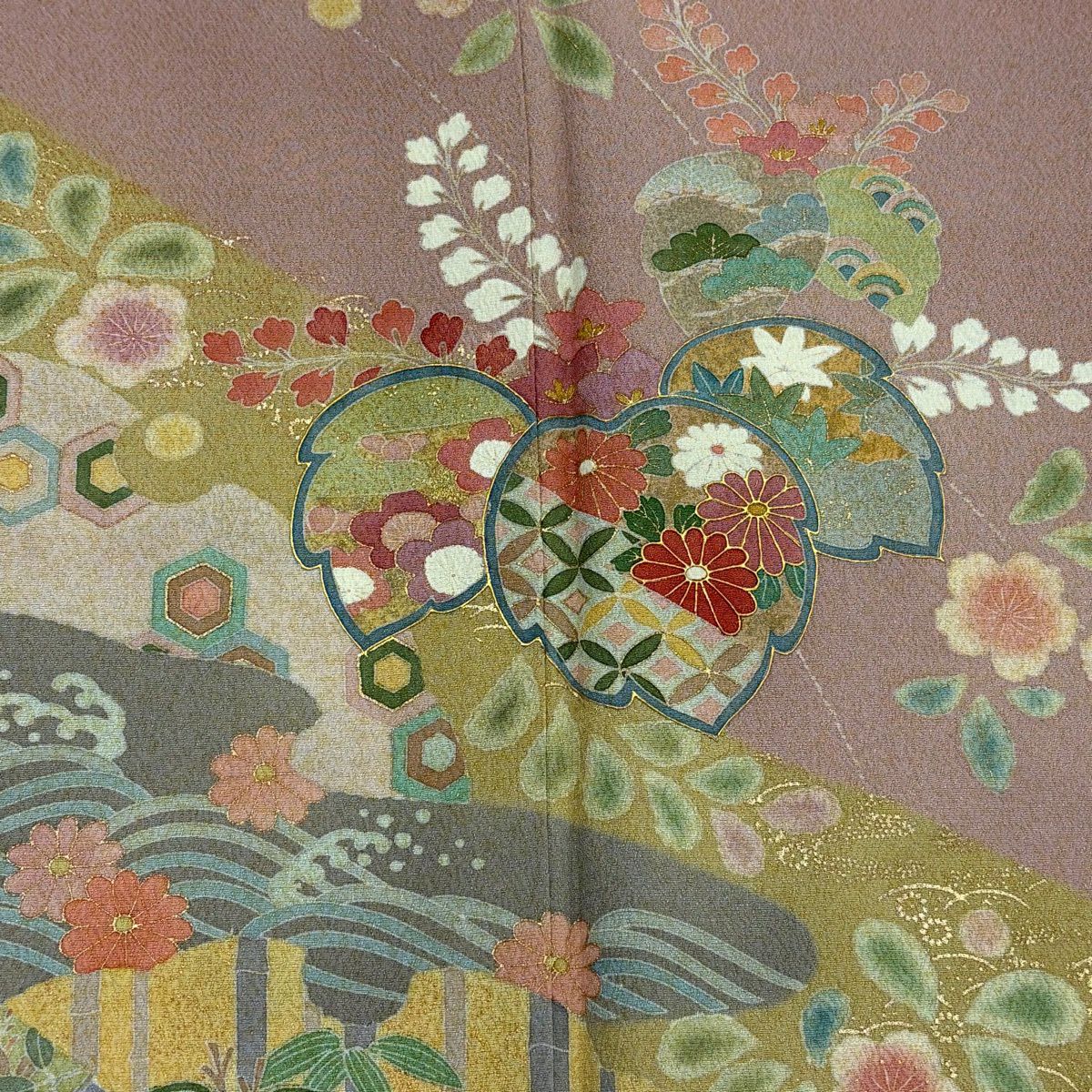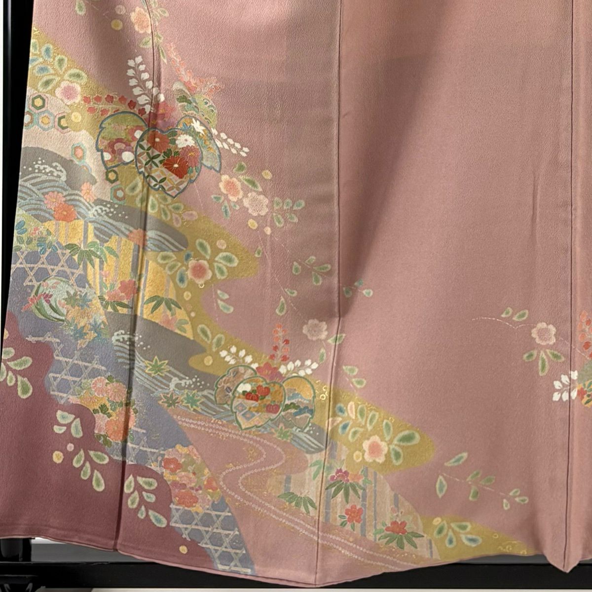 付下げ 身丈158cm 裄丈65cm M 袷 桐 草花 金彩 ピンク 正絹 秀品