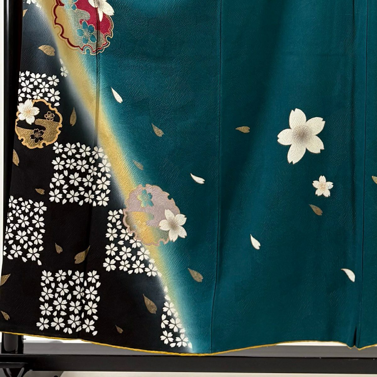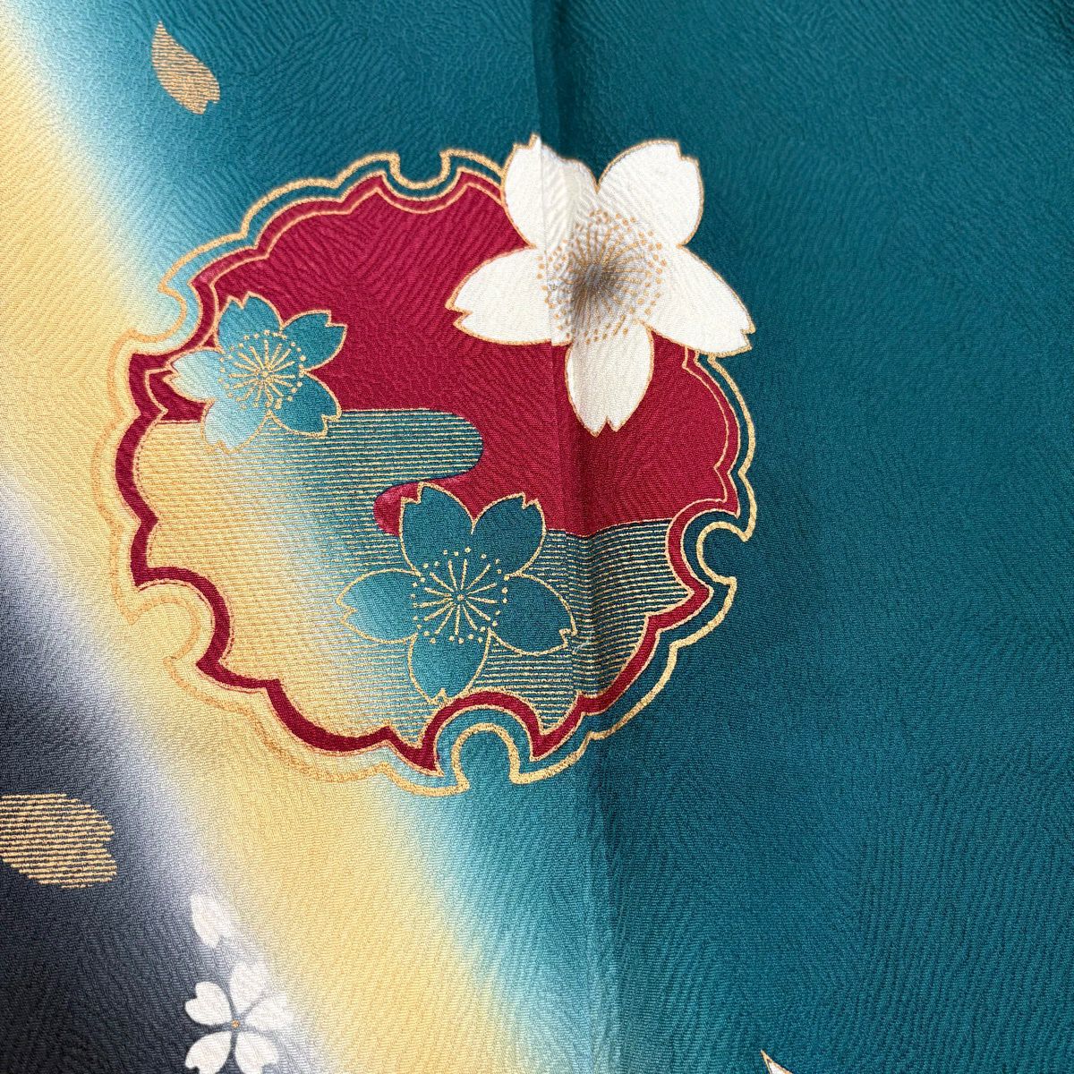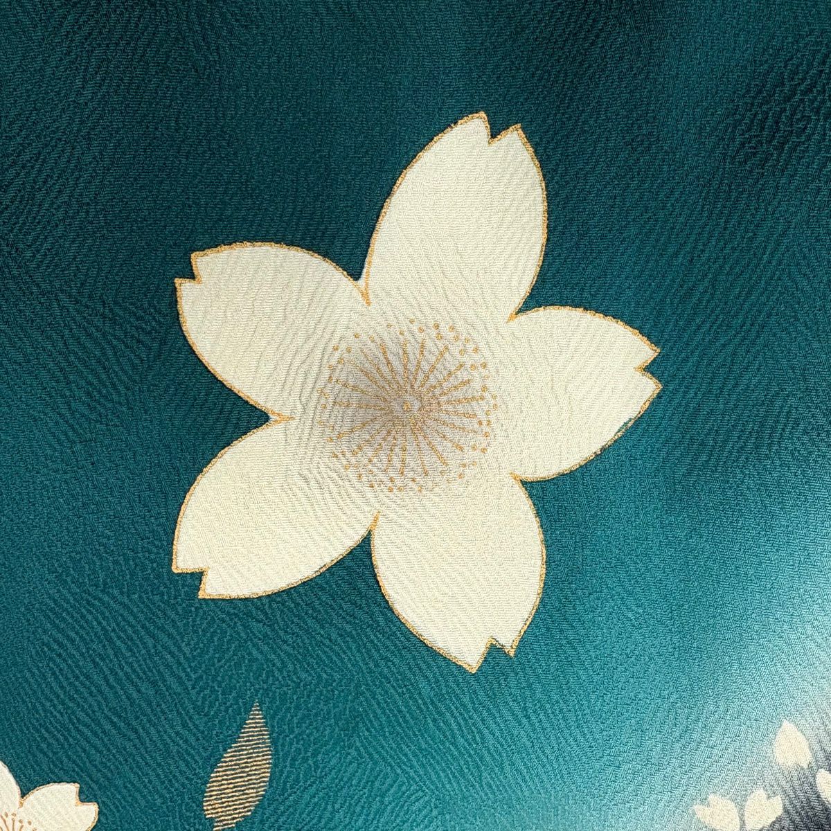 付下げ 身丈155cm 裄丈65cm M 袷 雪輪 桜 金彩 ぼかし 緑 正絹 秀品