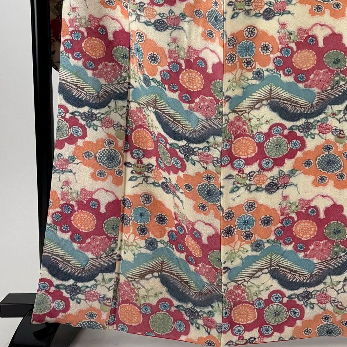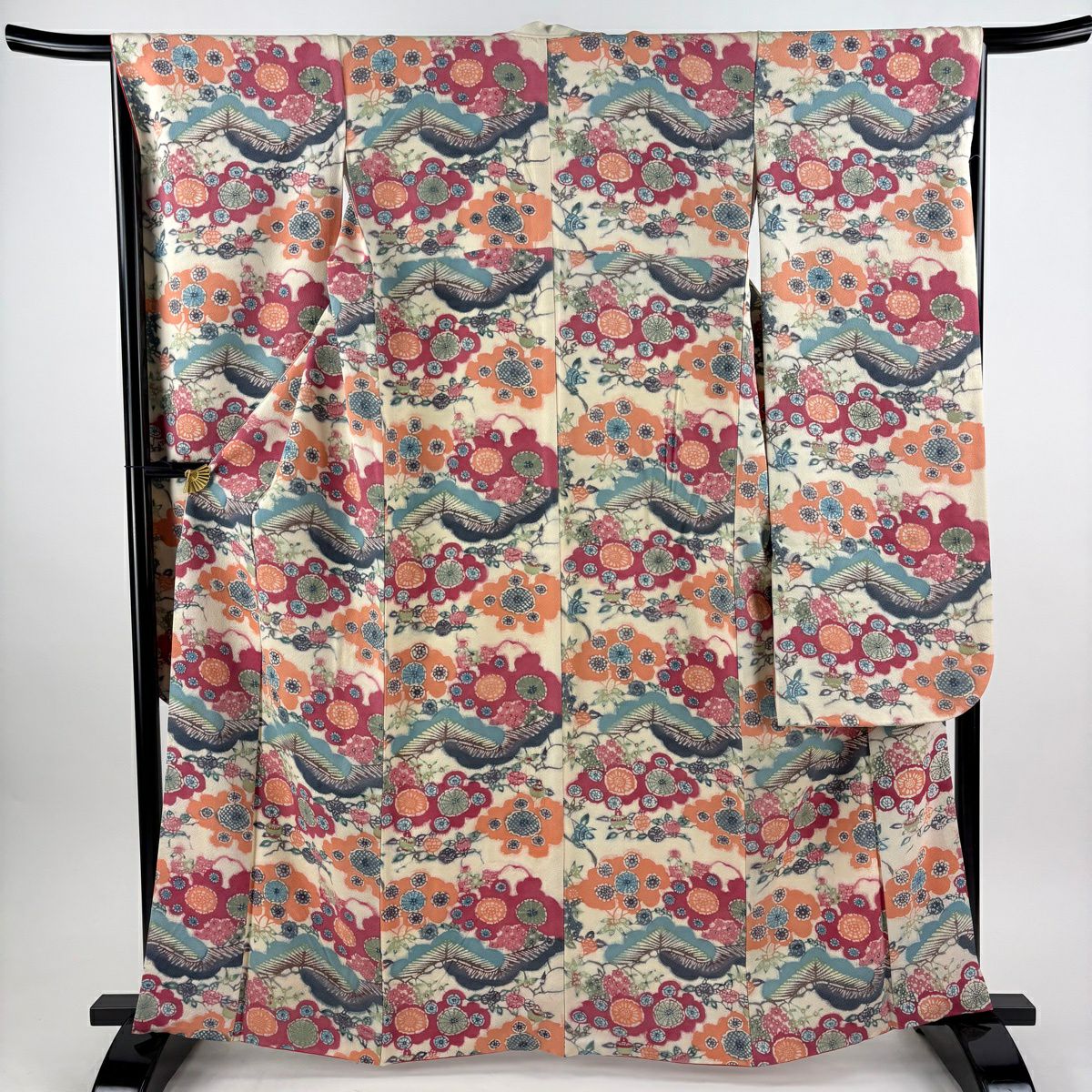 振袖 身丈164.5cm 裄丈67cm M 袷 松 雲文 ベージュ 正絹 秀品