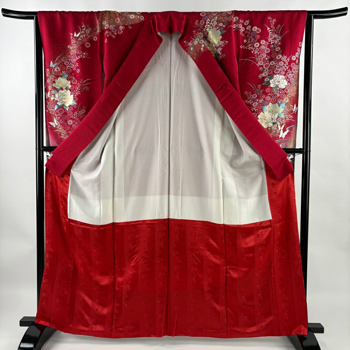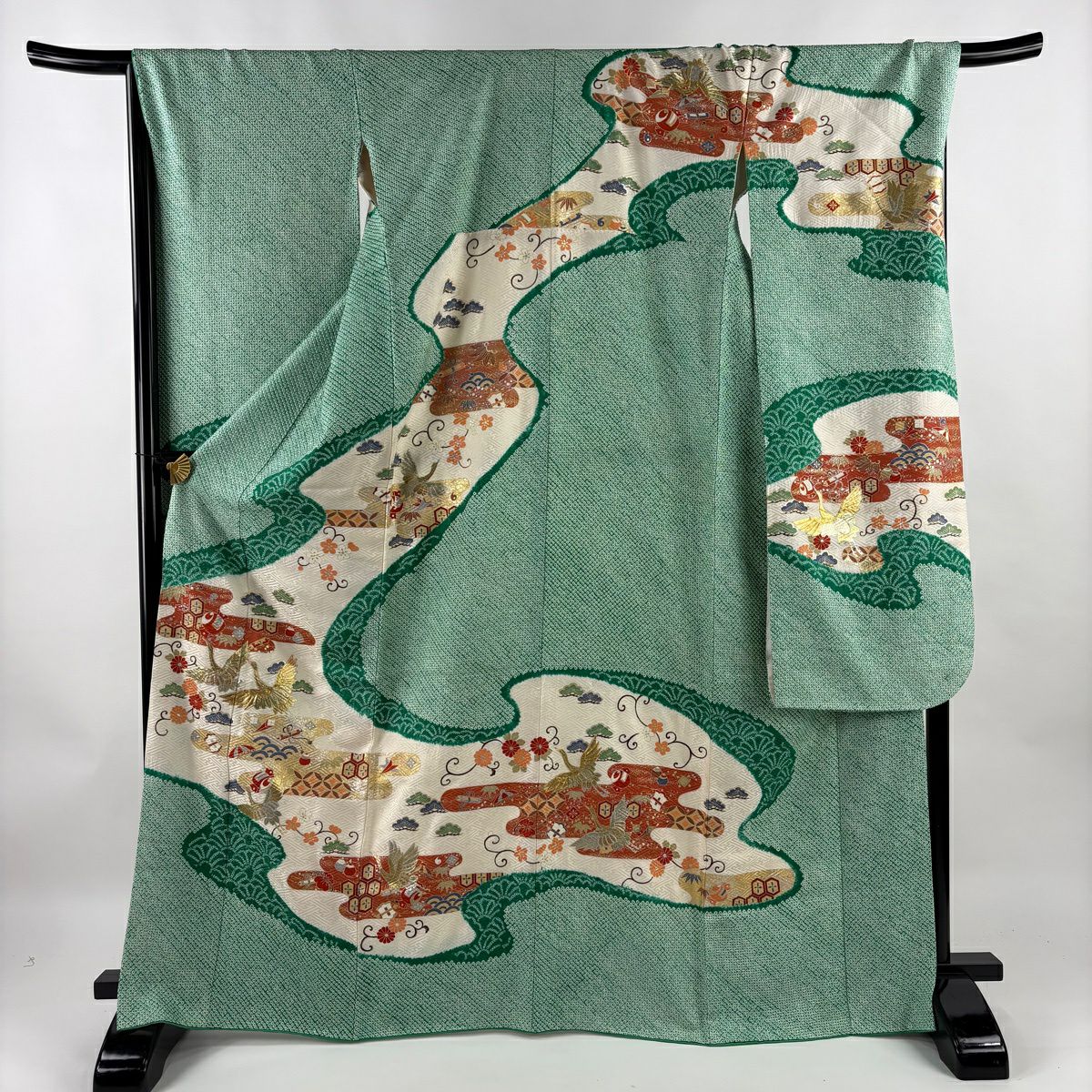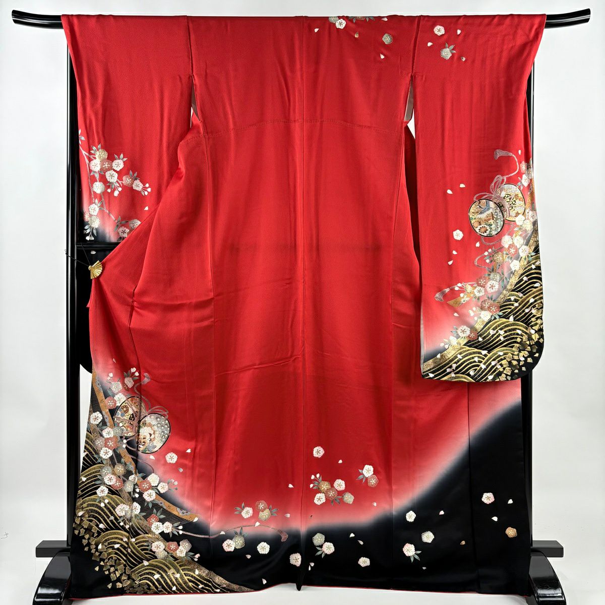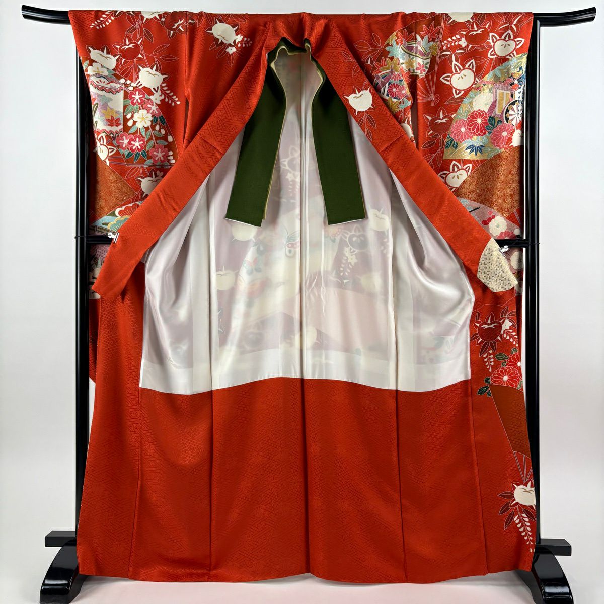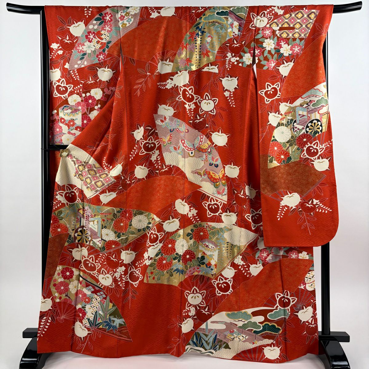 振袖 身丈160cm 裄丈65cm M 袷 松竹梅 鶴 金糸 金彩 朱色 正絹 秀品