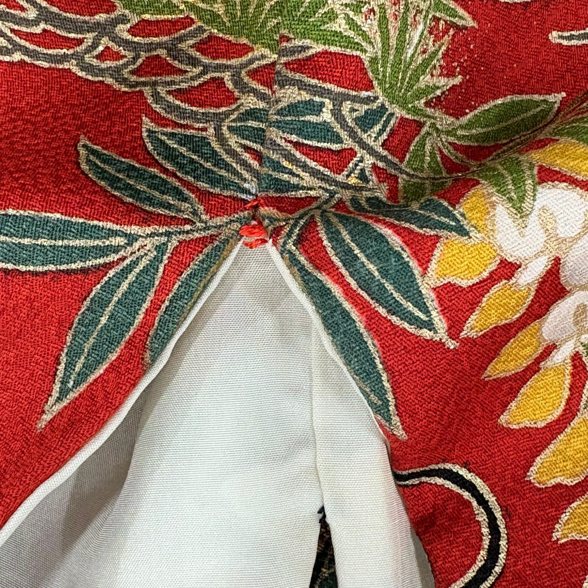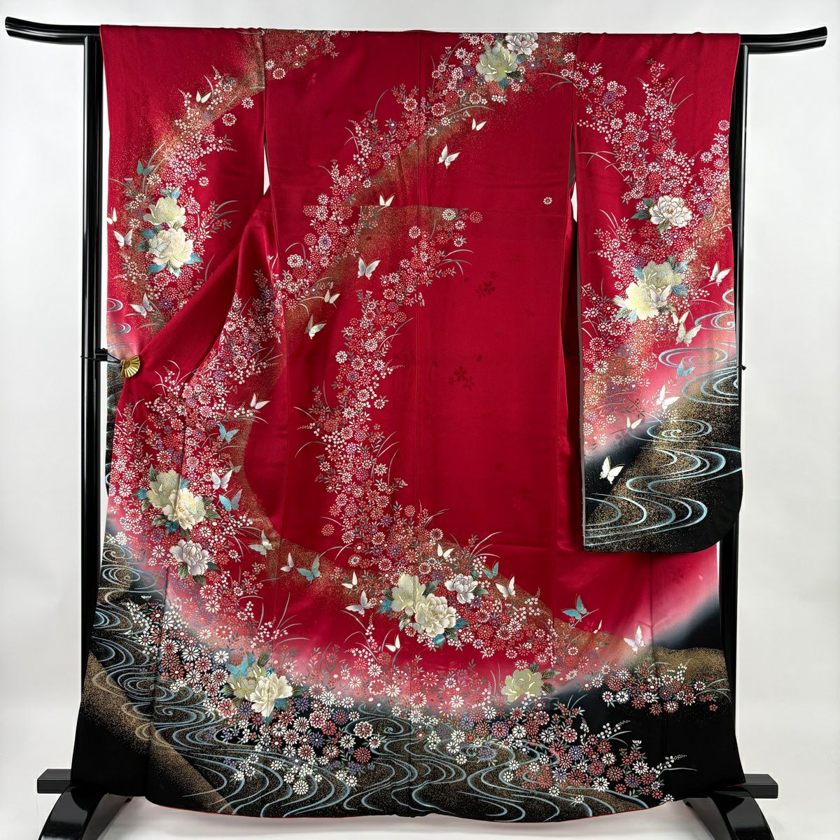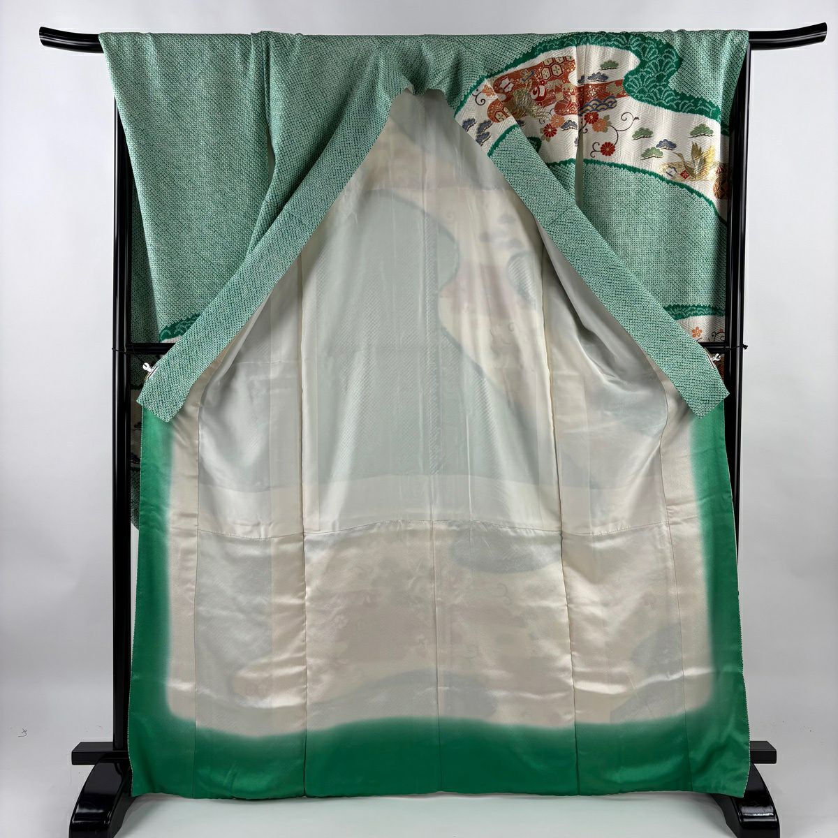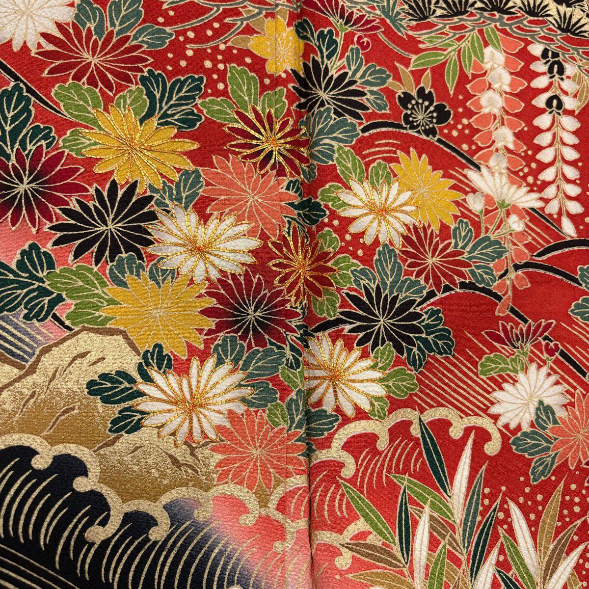 振袖 身丈160cm 裄丈65cm M 袷 松竹梅 鶴 金糸 金彩 朱色 正絹 秀品