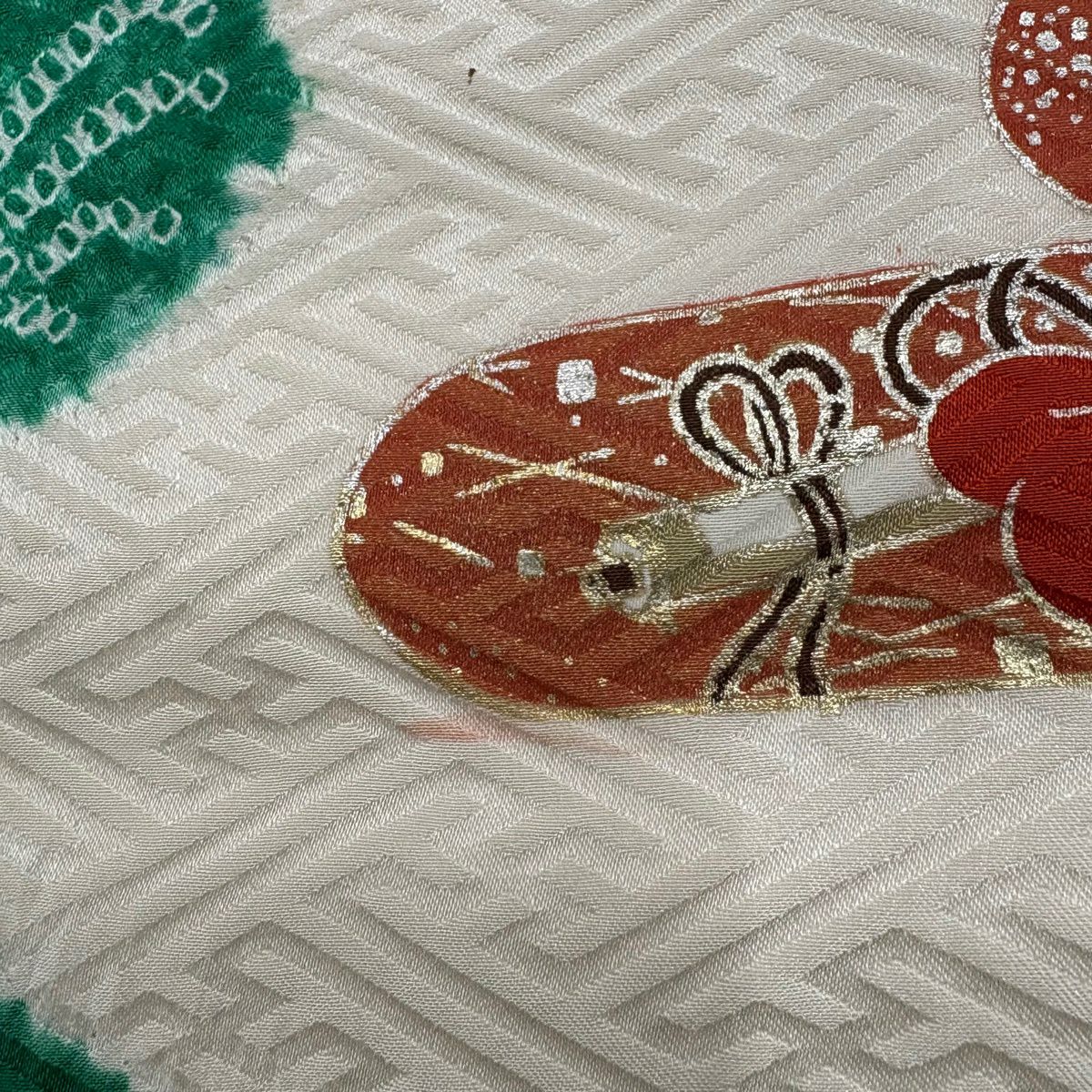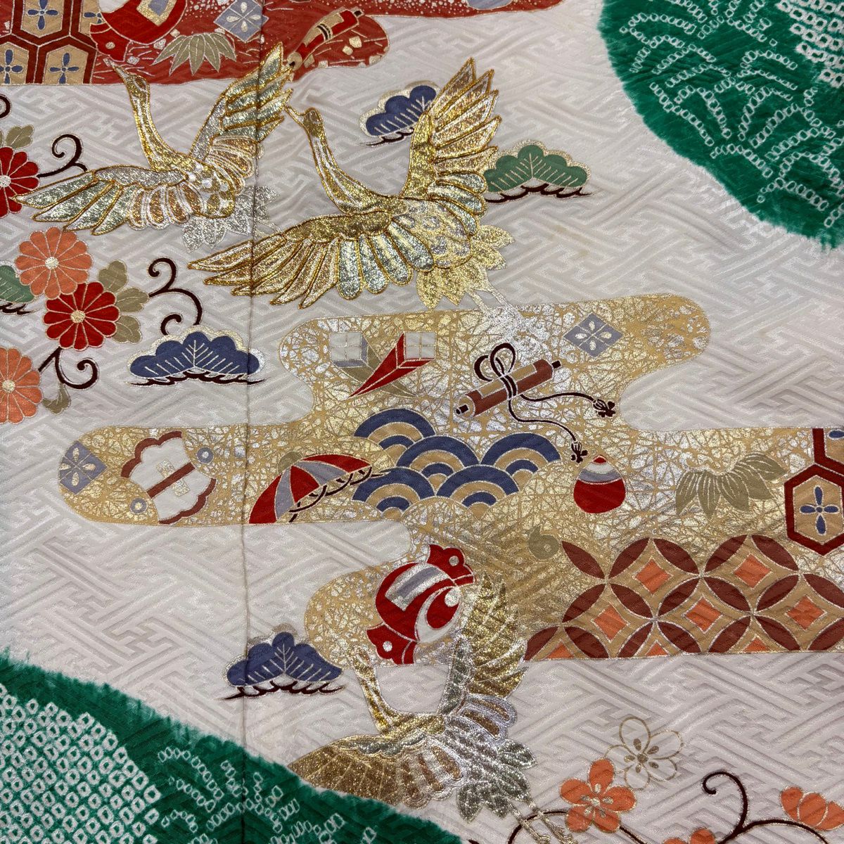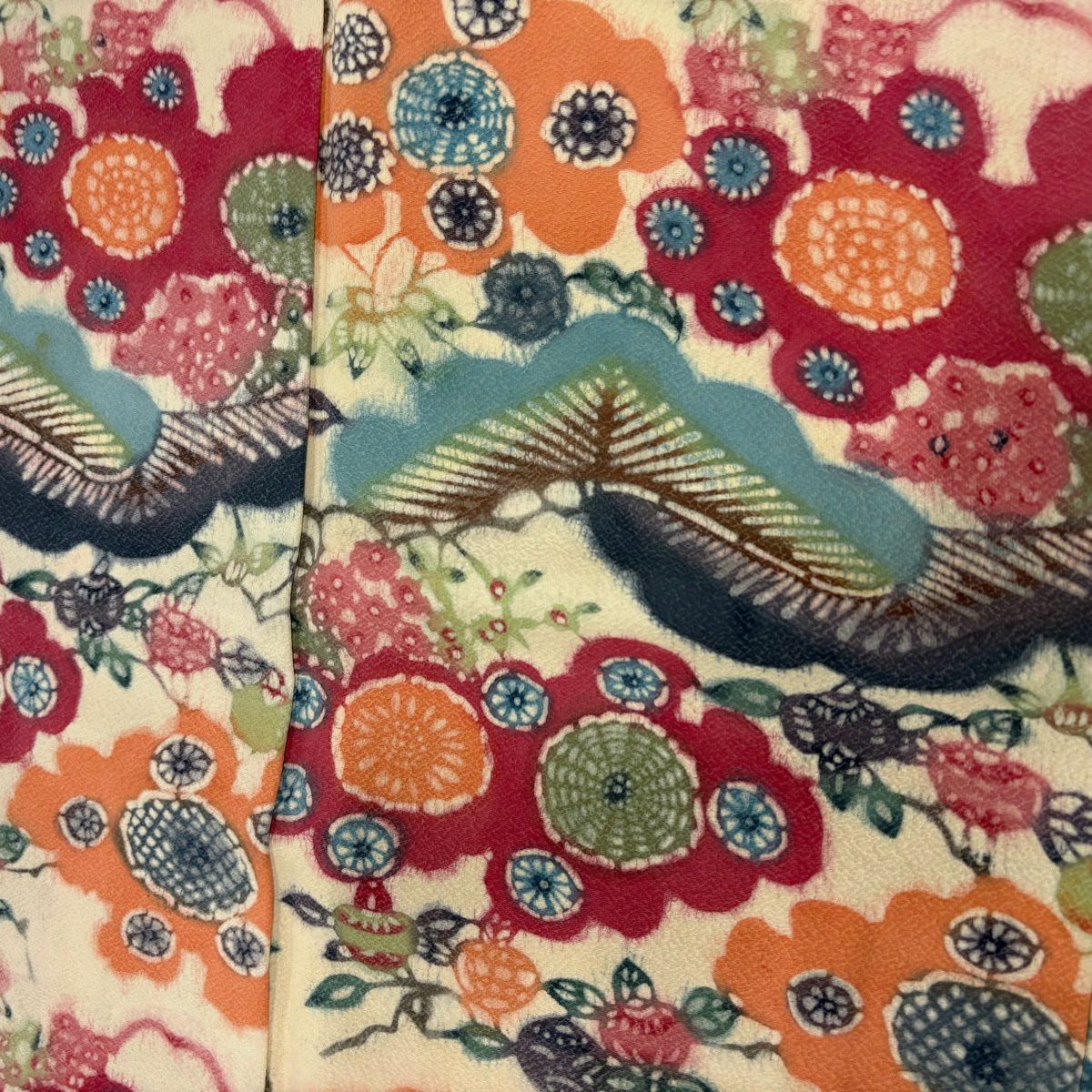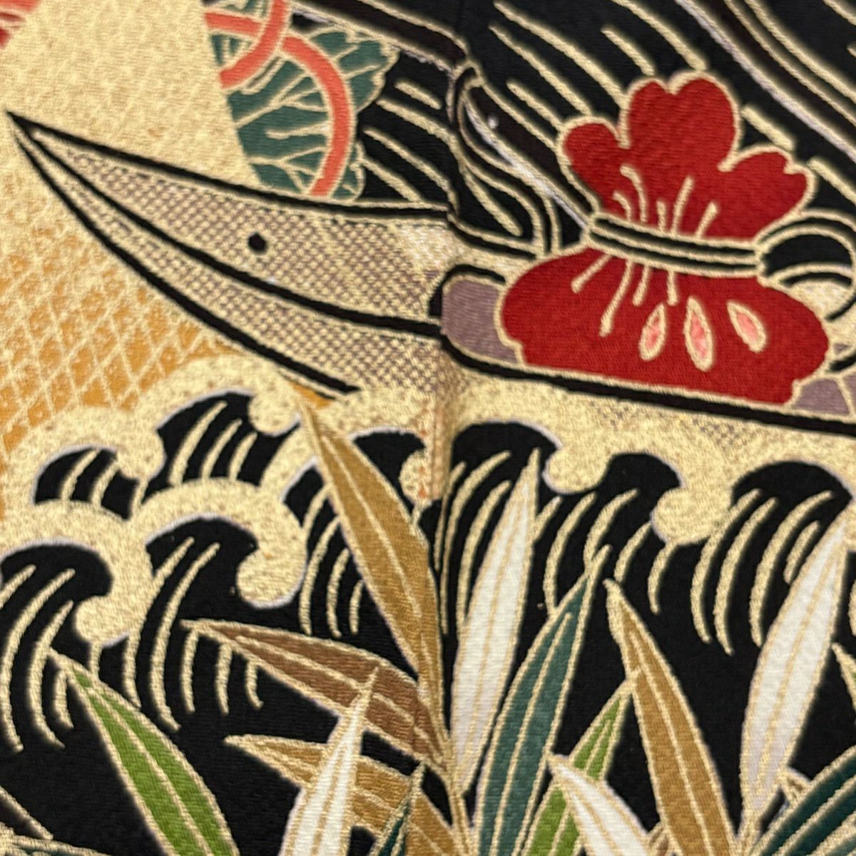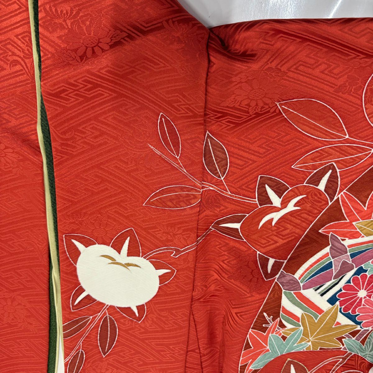 振袖 身丈160cm 裄丈65cm M 袷 松竹梅 鶴 金糸 金彩 朱色 正絹 秀品