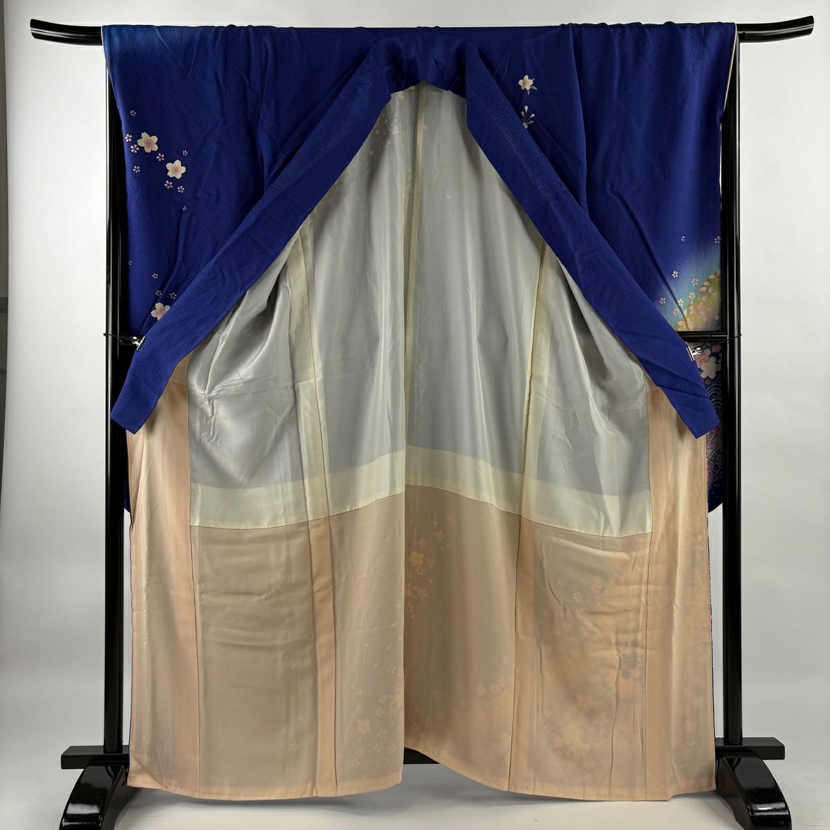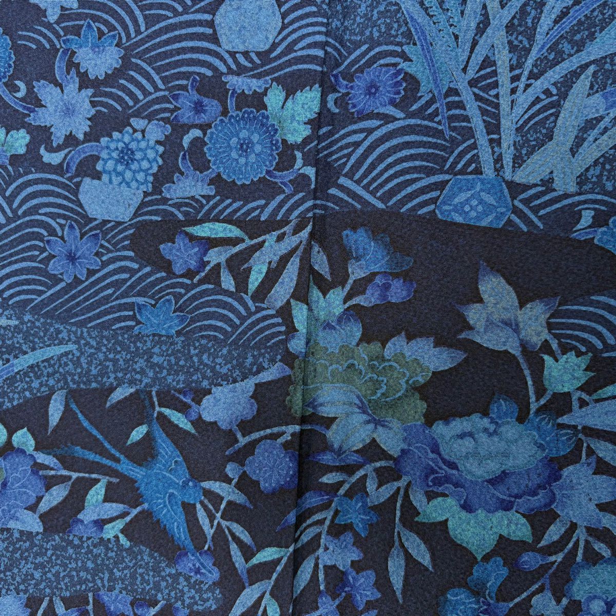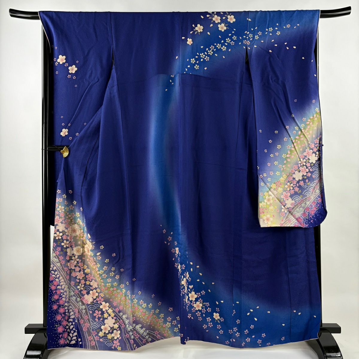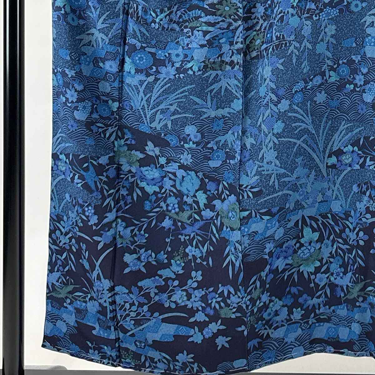 【美品】 訪問着 身丈154cm 裄丈62cm S 袷 花鳥 波 藍色 正絹 秀品