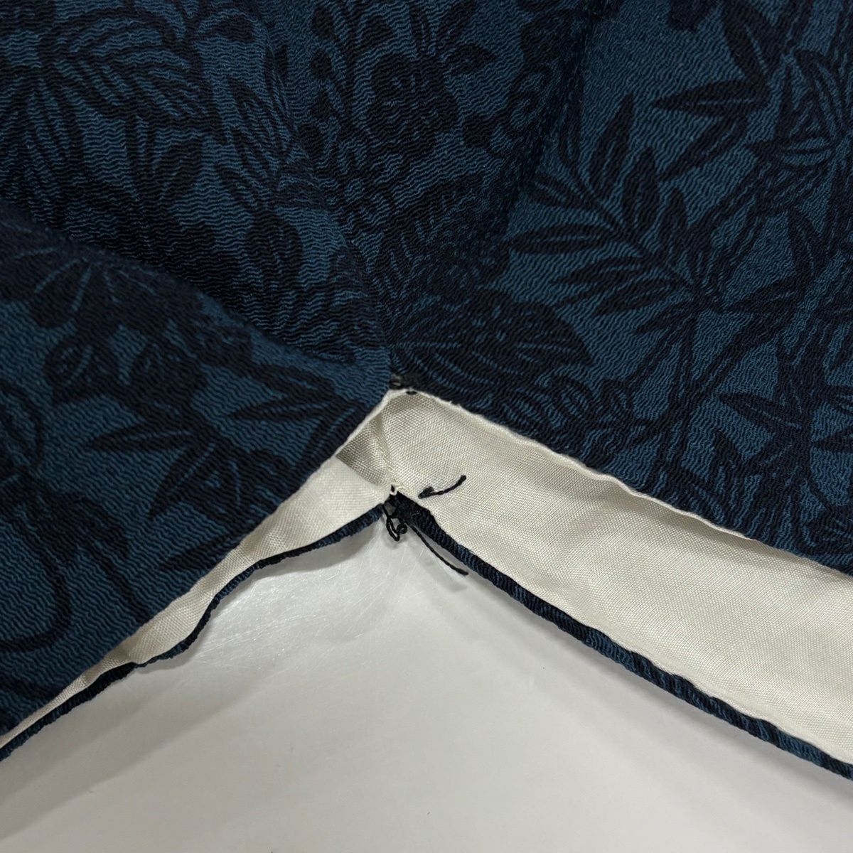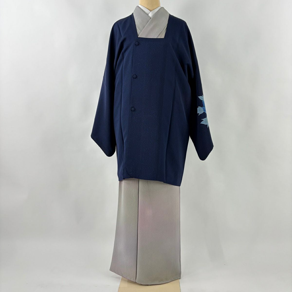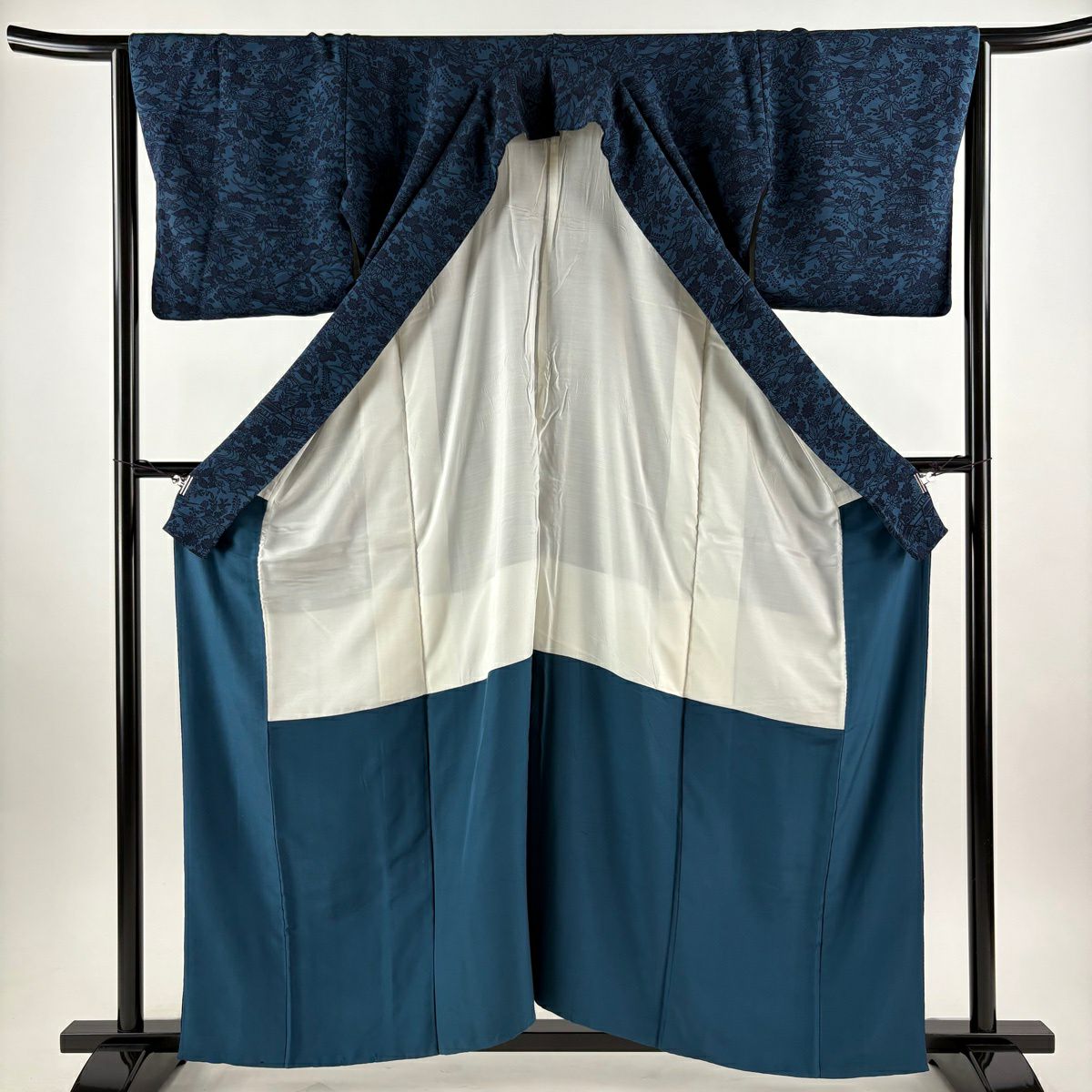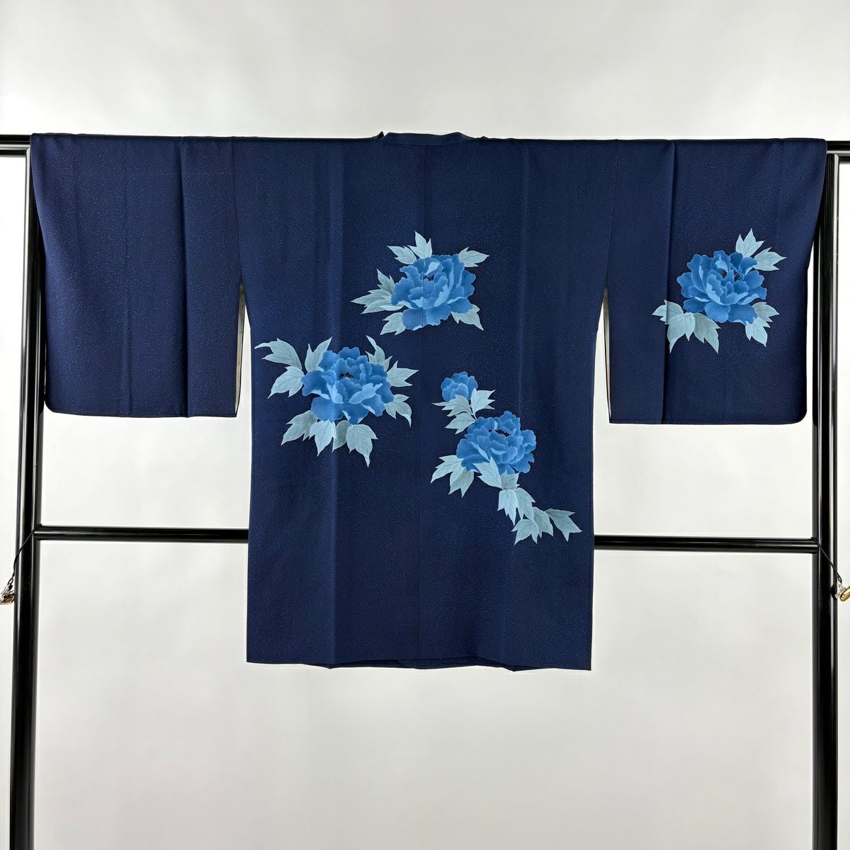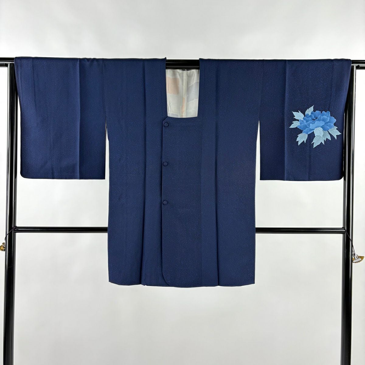 道行 身丈86.5cm 裄丈65.5cm M 和装コート 角衿 草花 濃紺 正絹 秀品