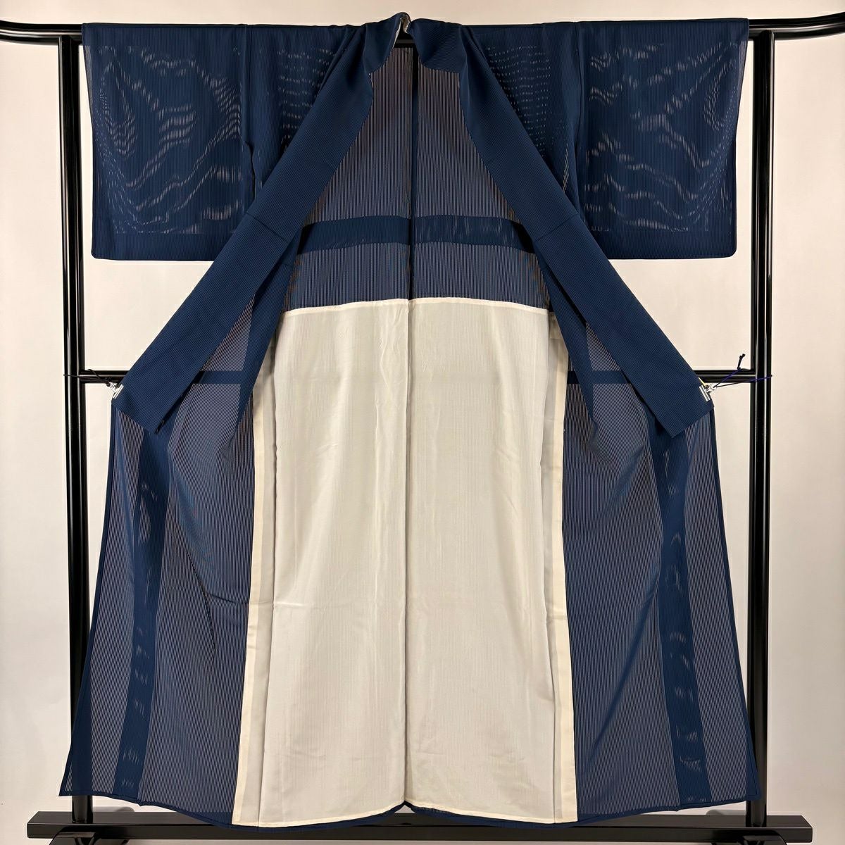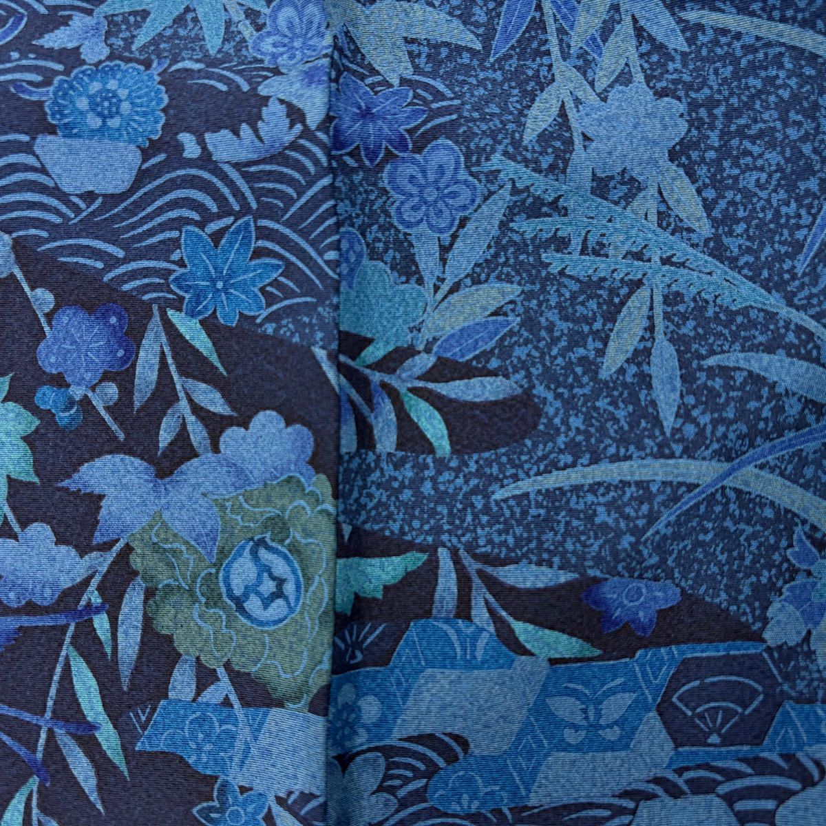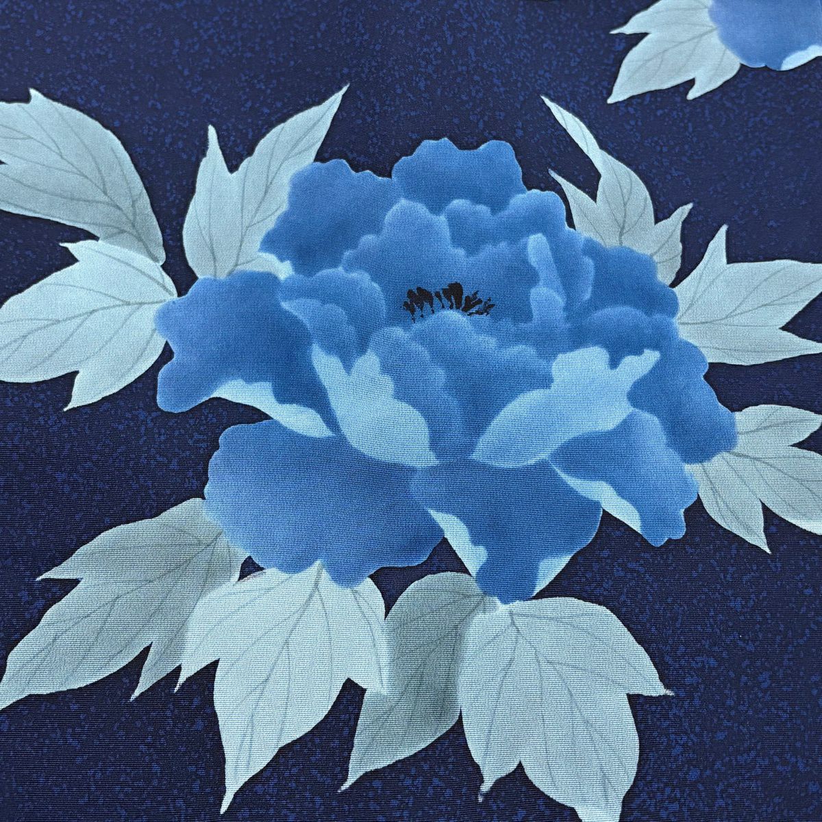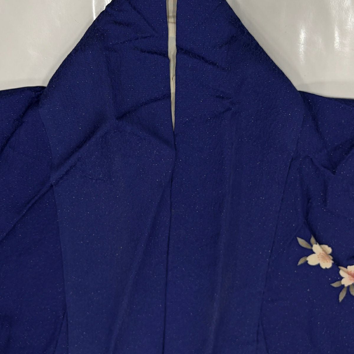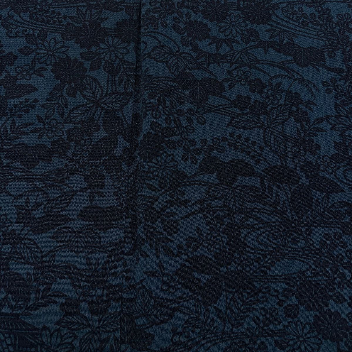 道行 身丈86.5cm 裄丈65.5cm M 和装コート 角衿 草花 濃紺 正絹 秀品